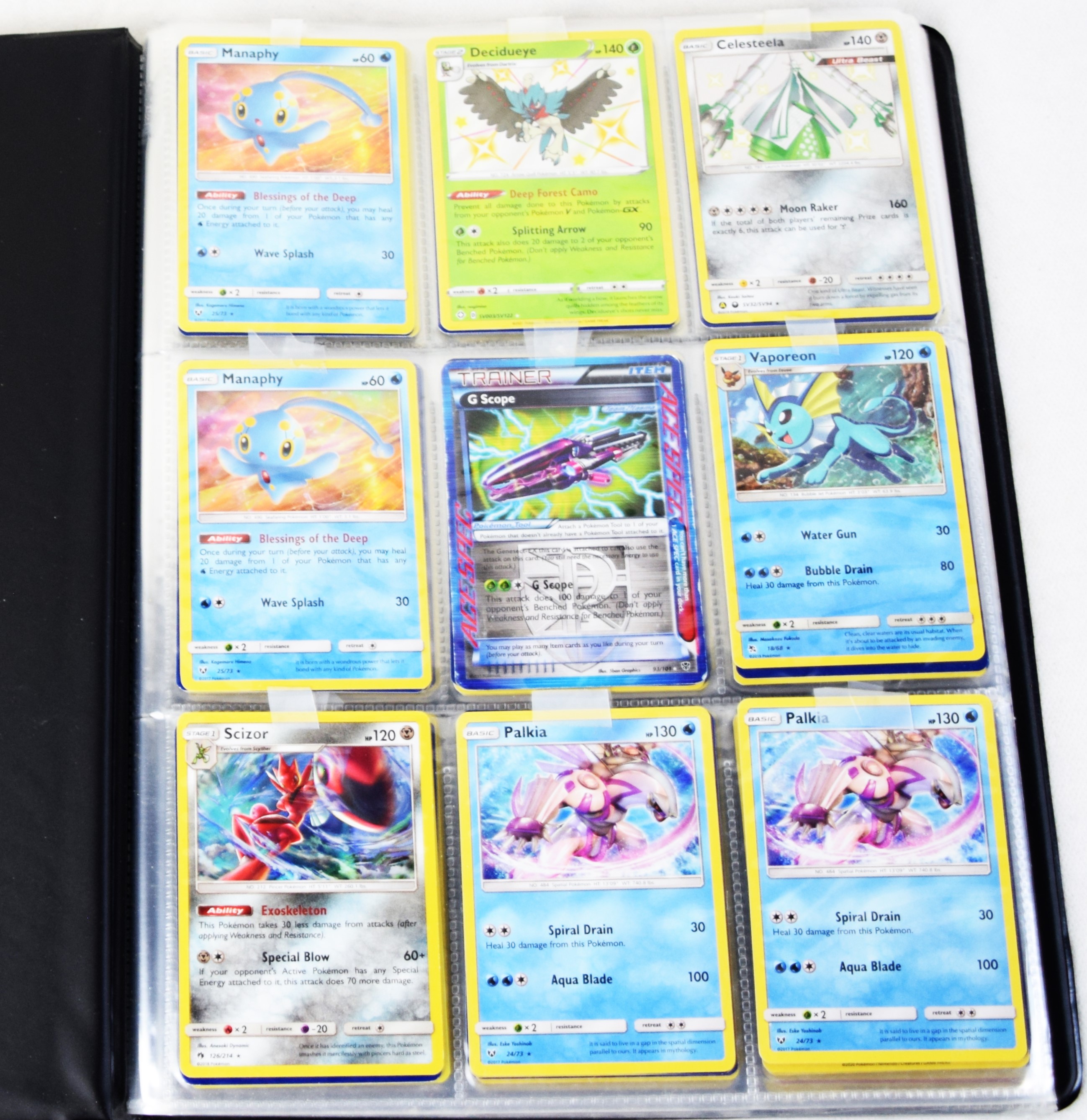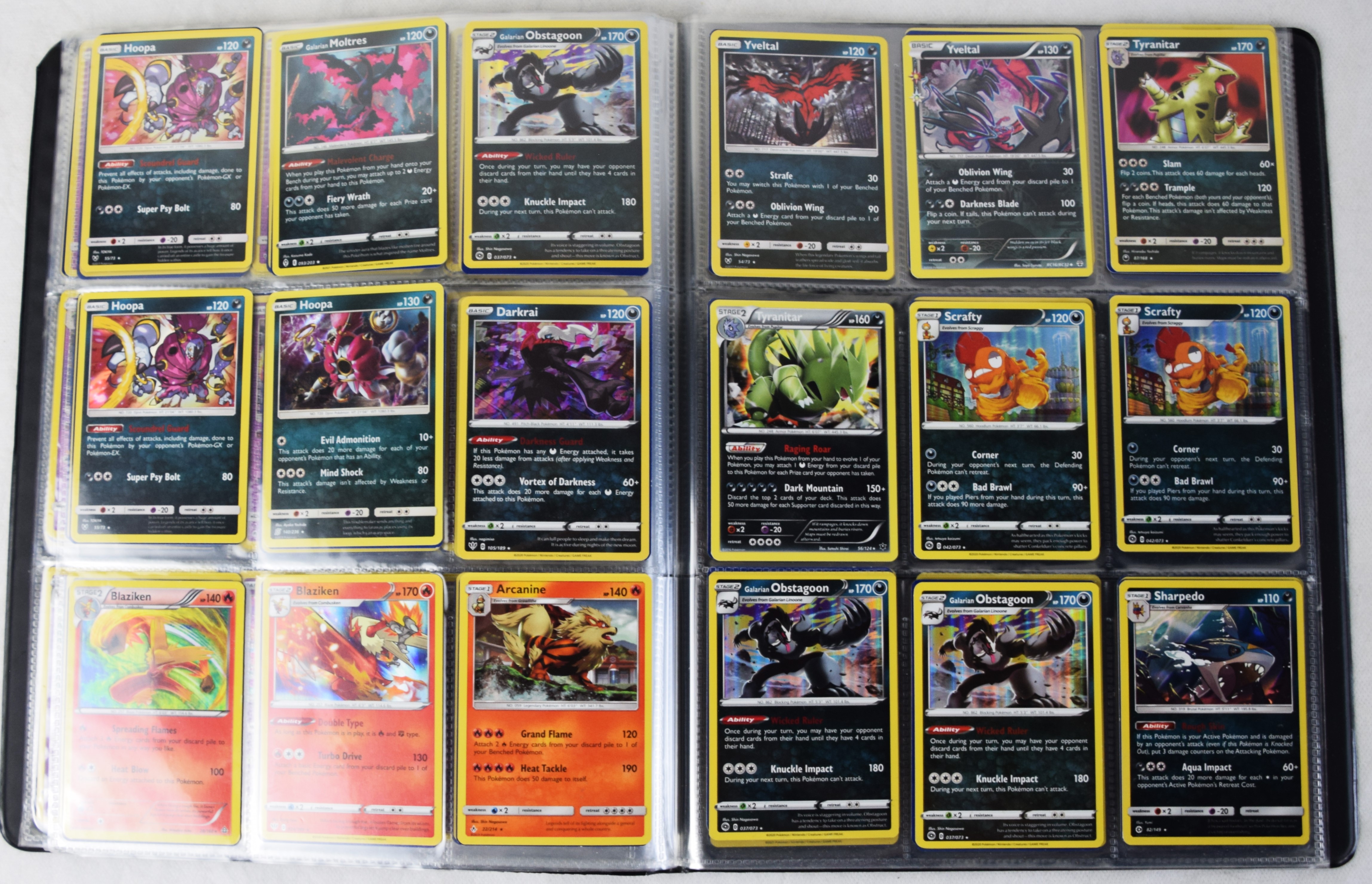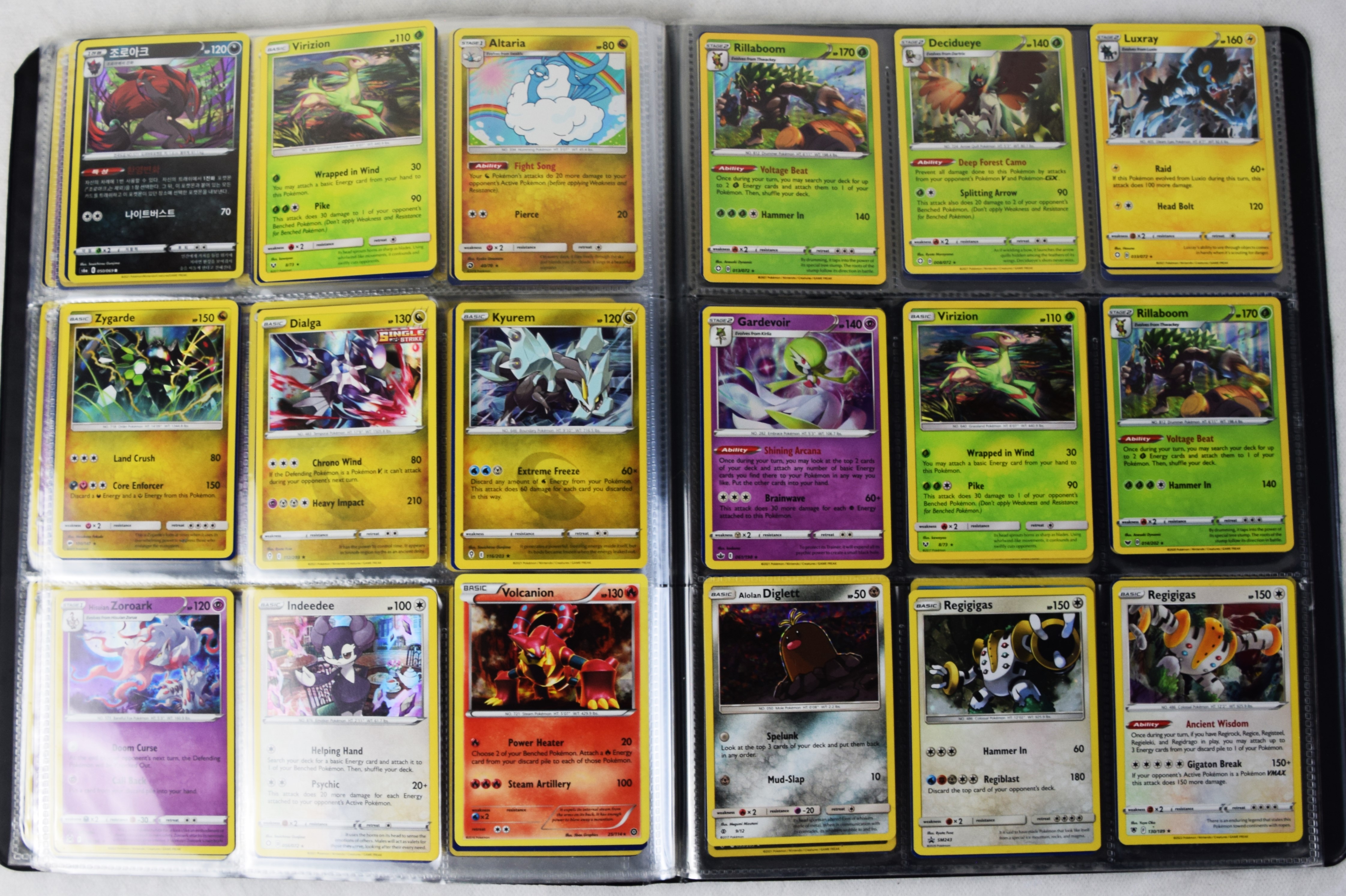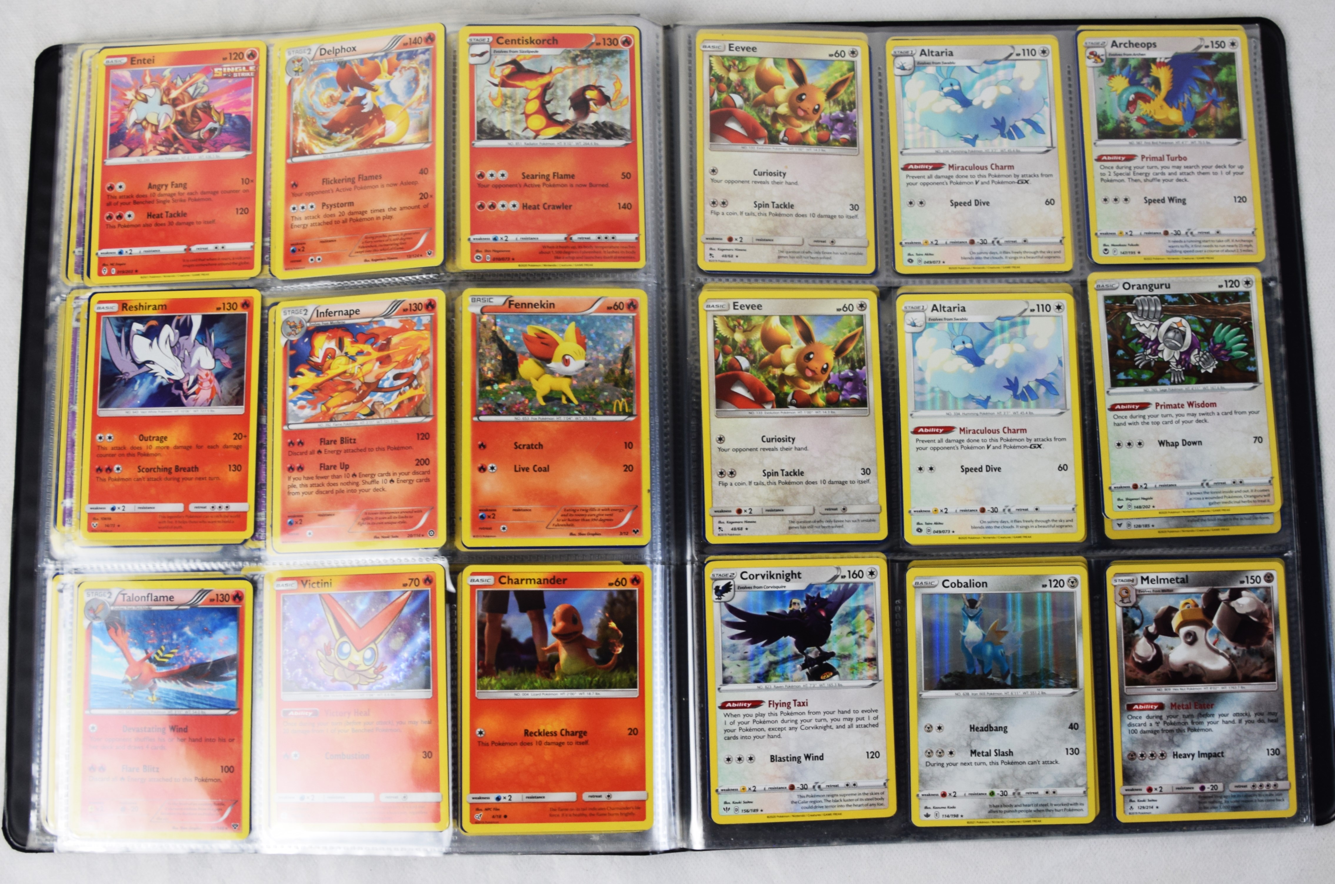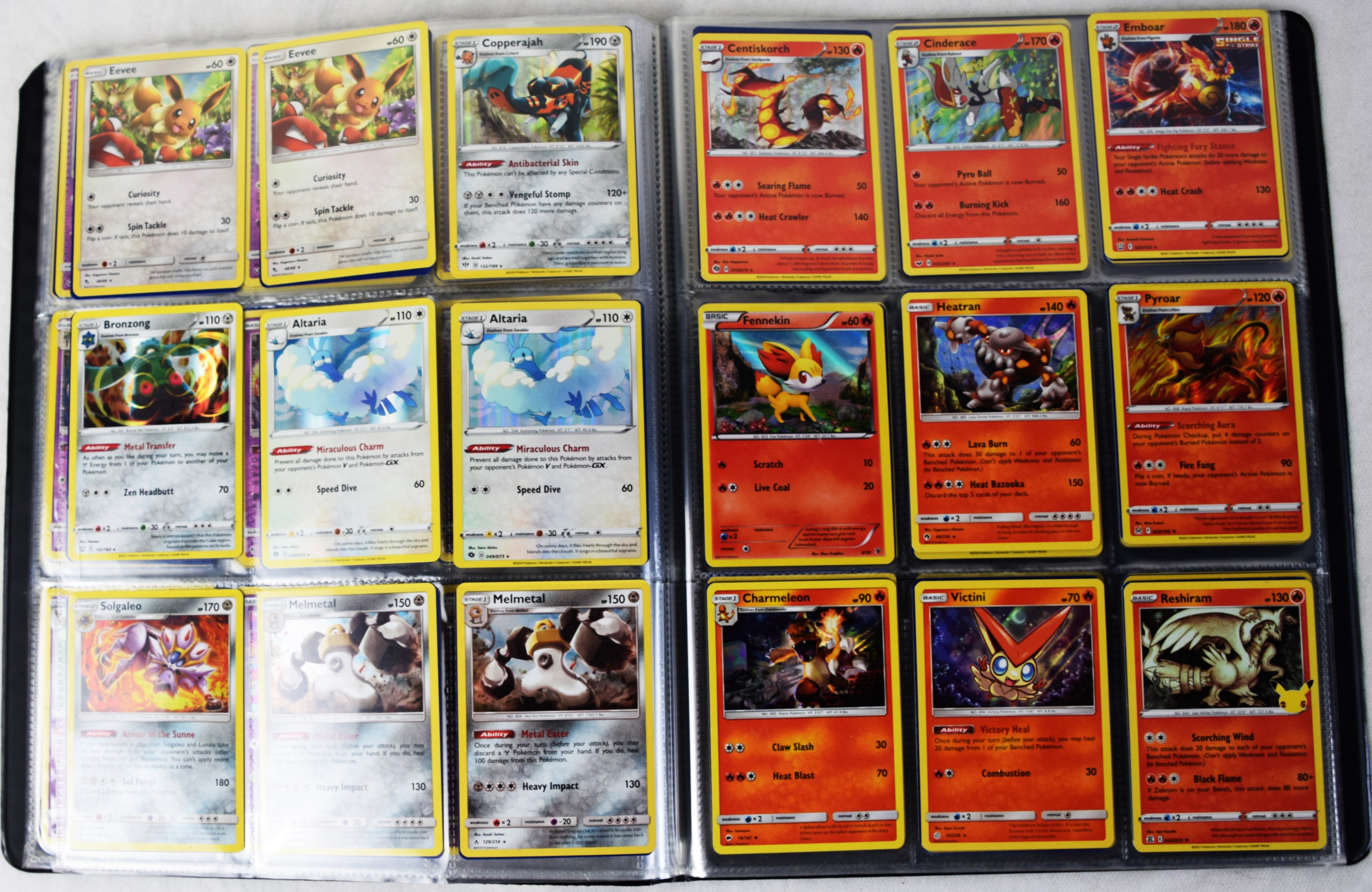 Approximately 60 pages of 9 cards each in three Pokémon binders, 2020-2023 vintage.