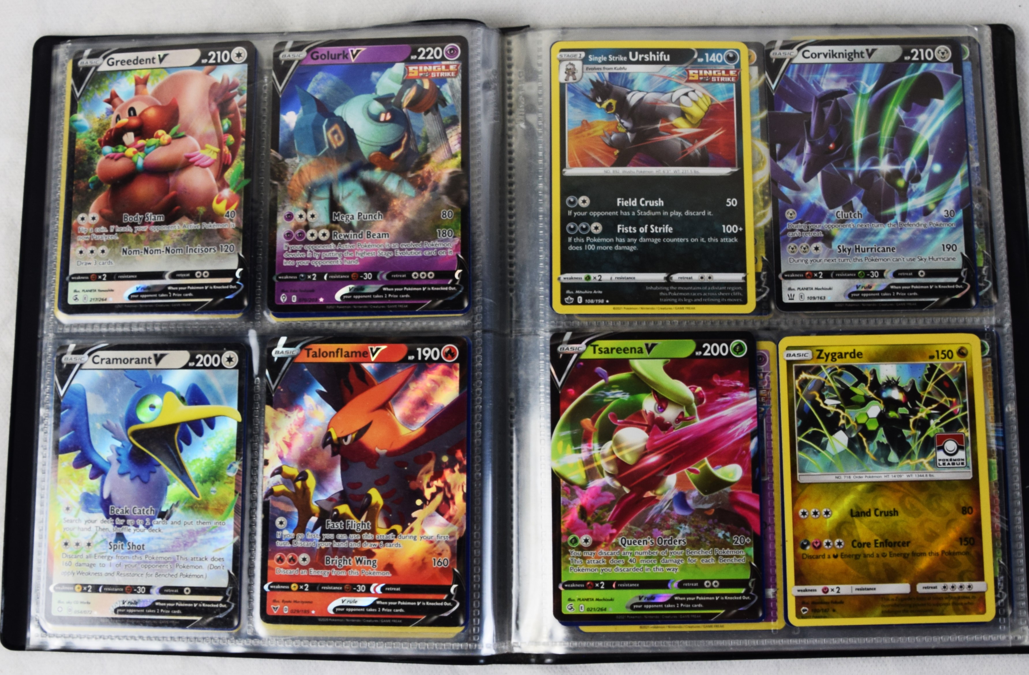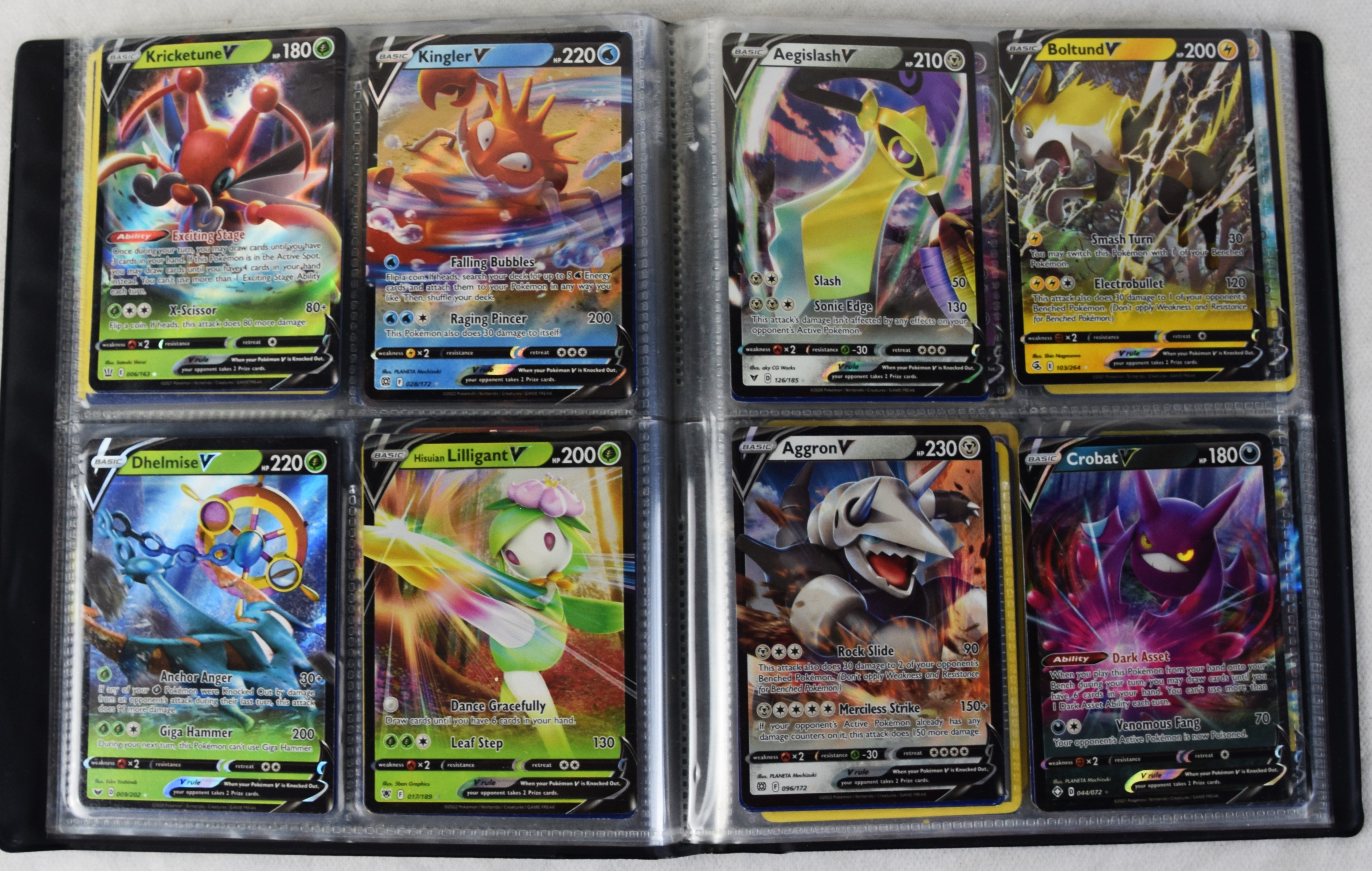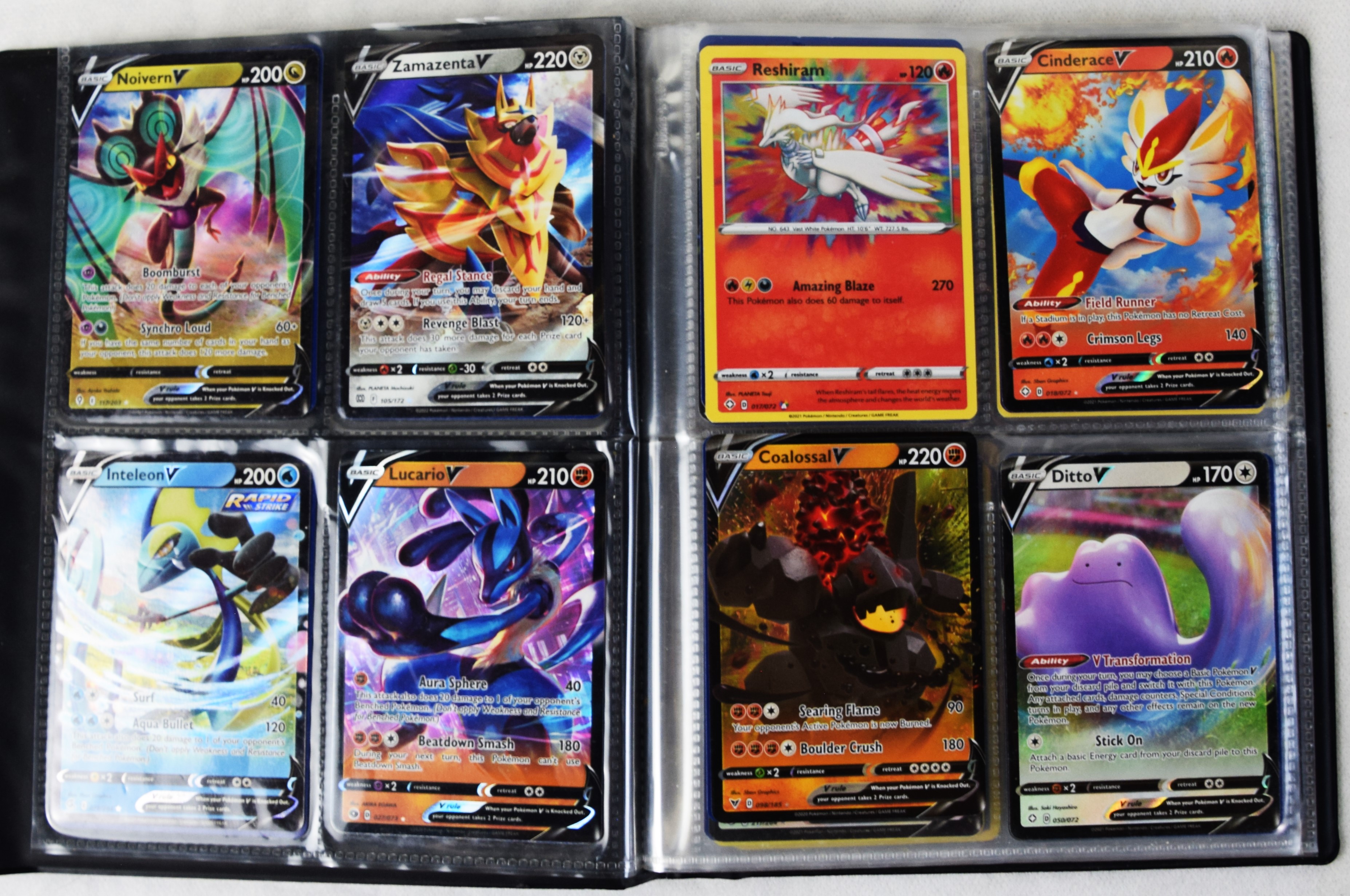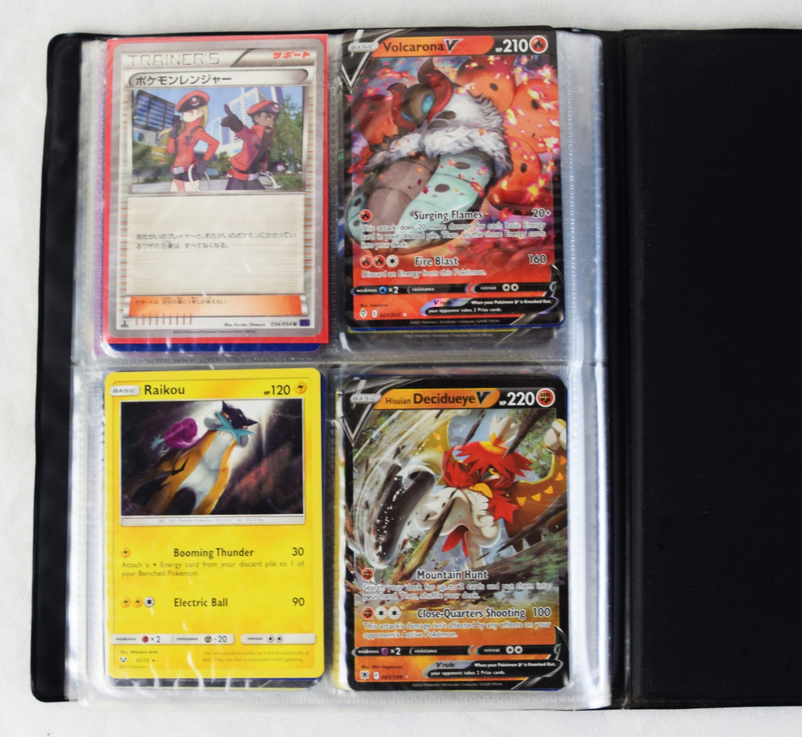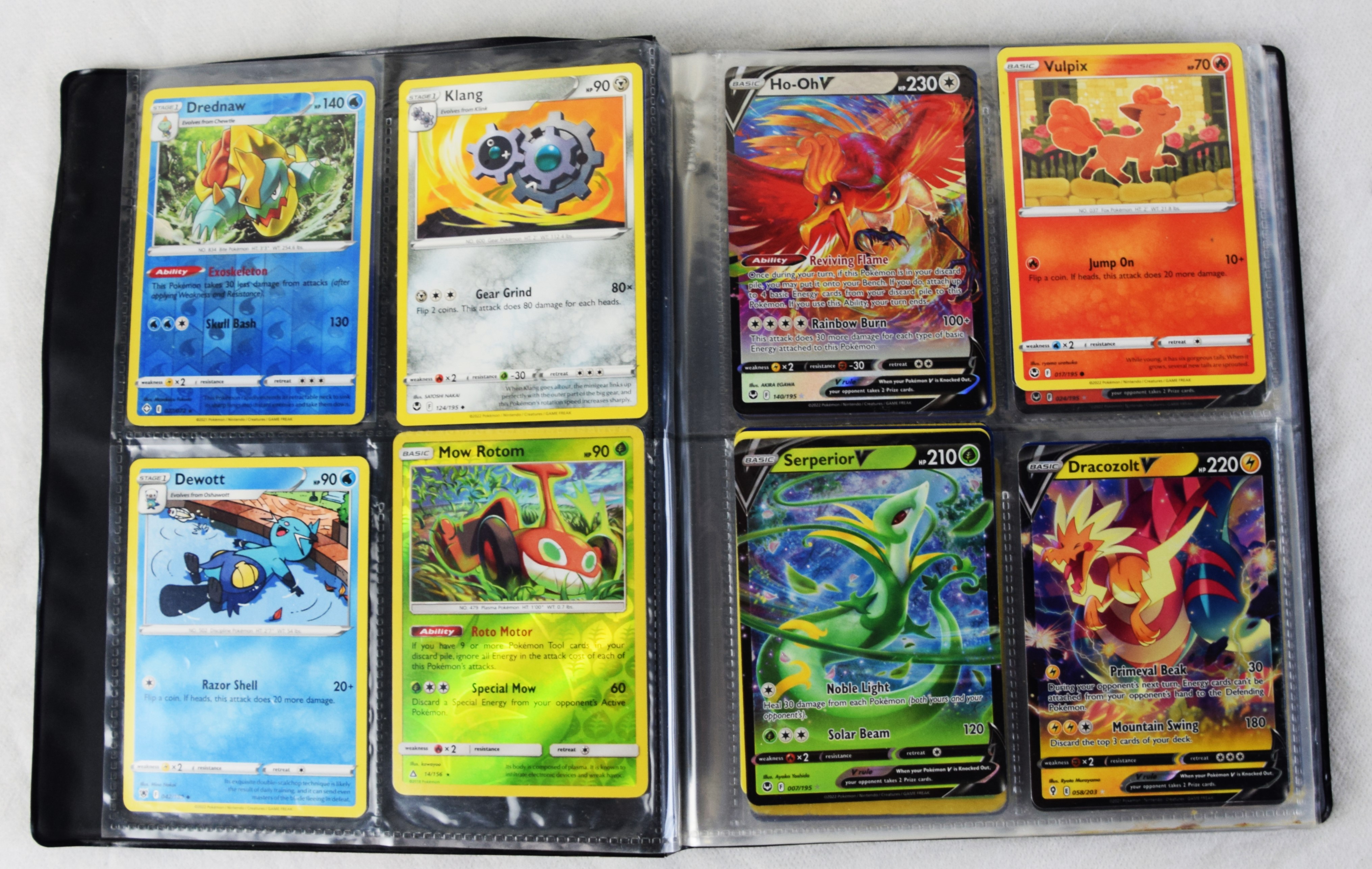 Approximately 60 pages of 4 cards each in three Pokémon binders, 2007-2022 vintage.