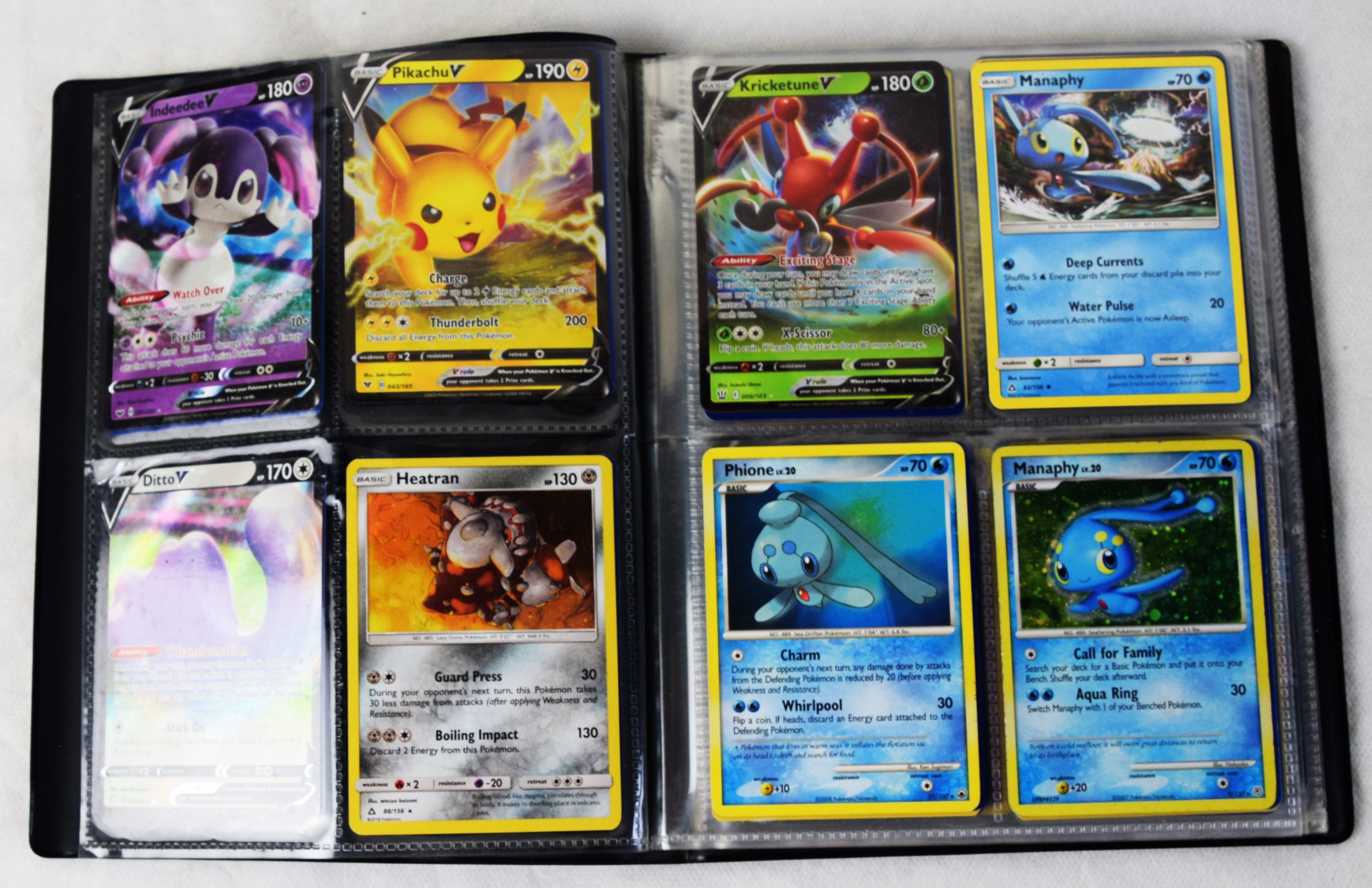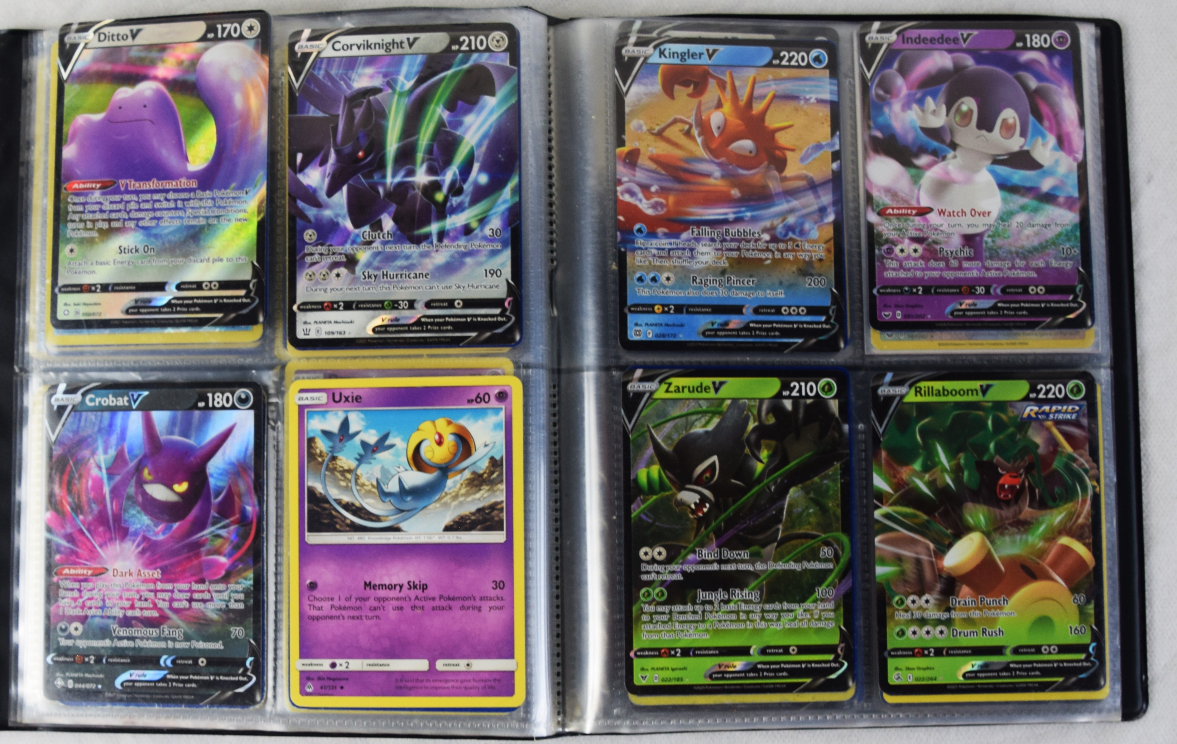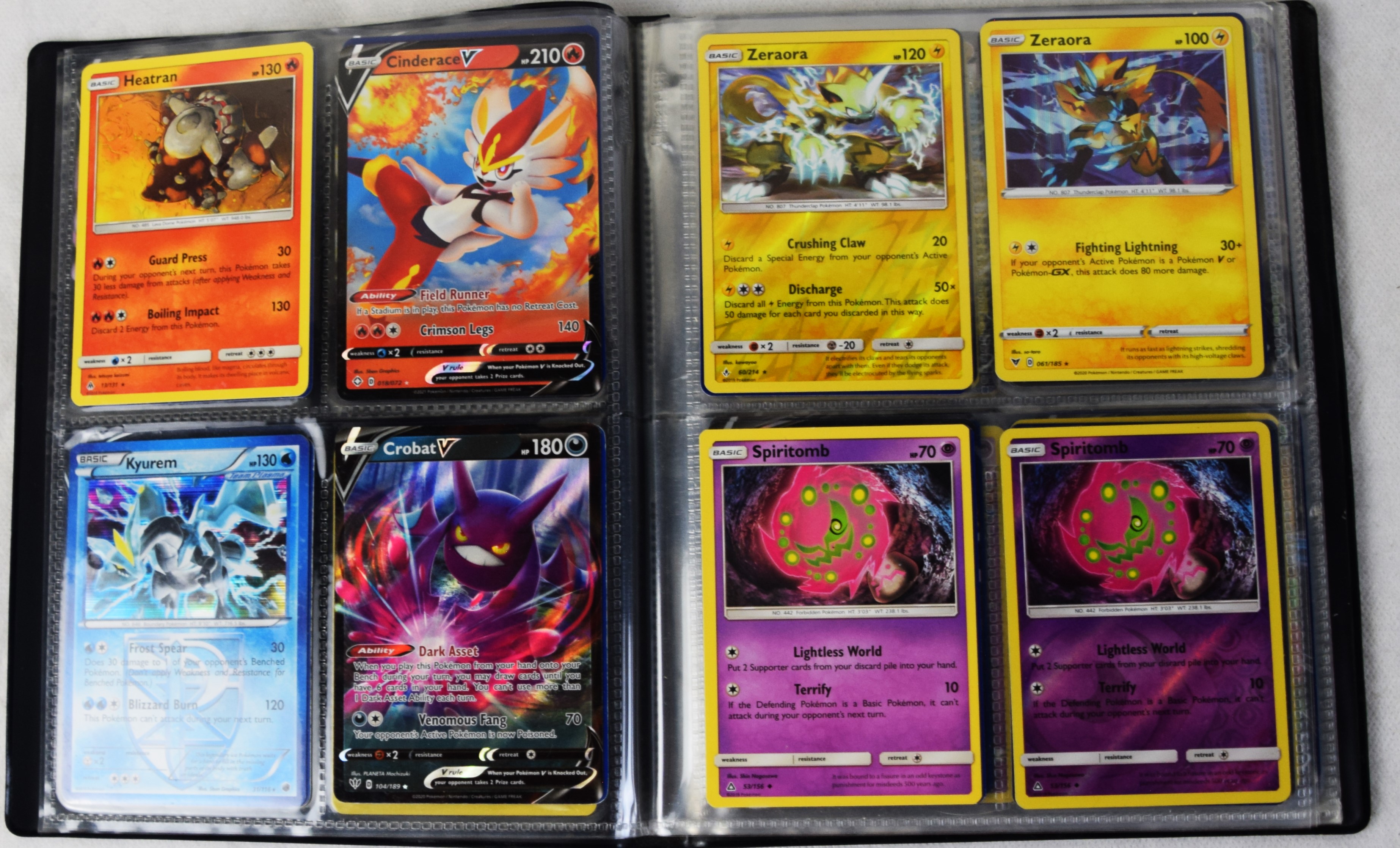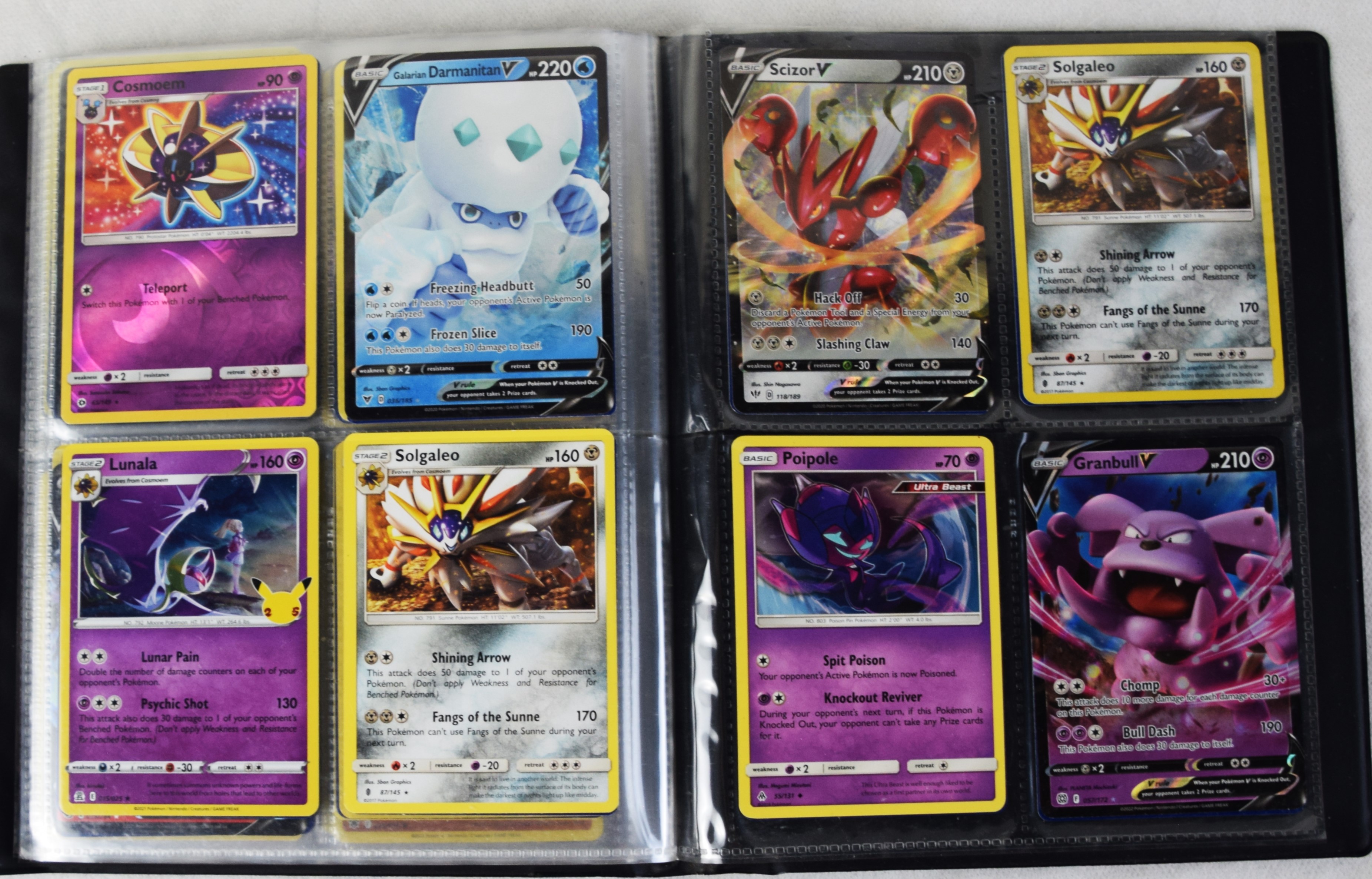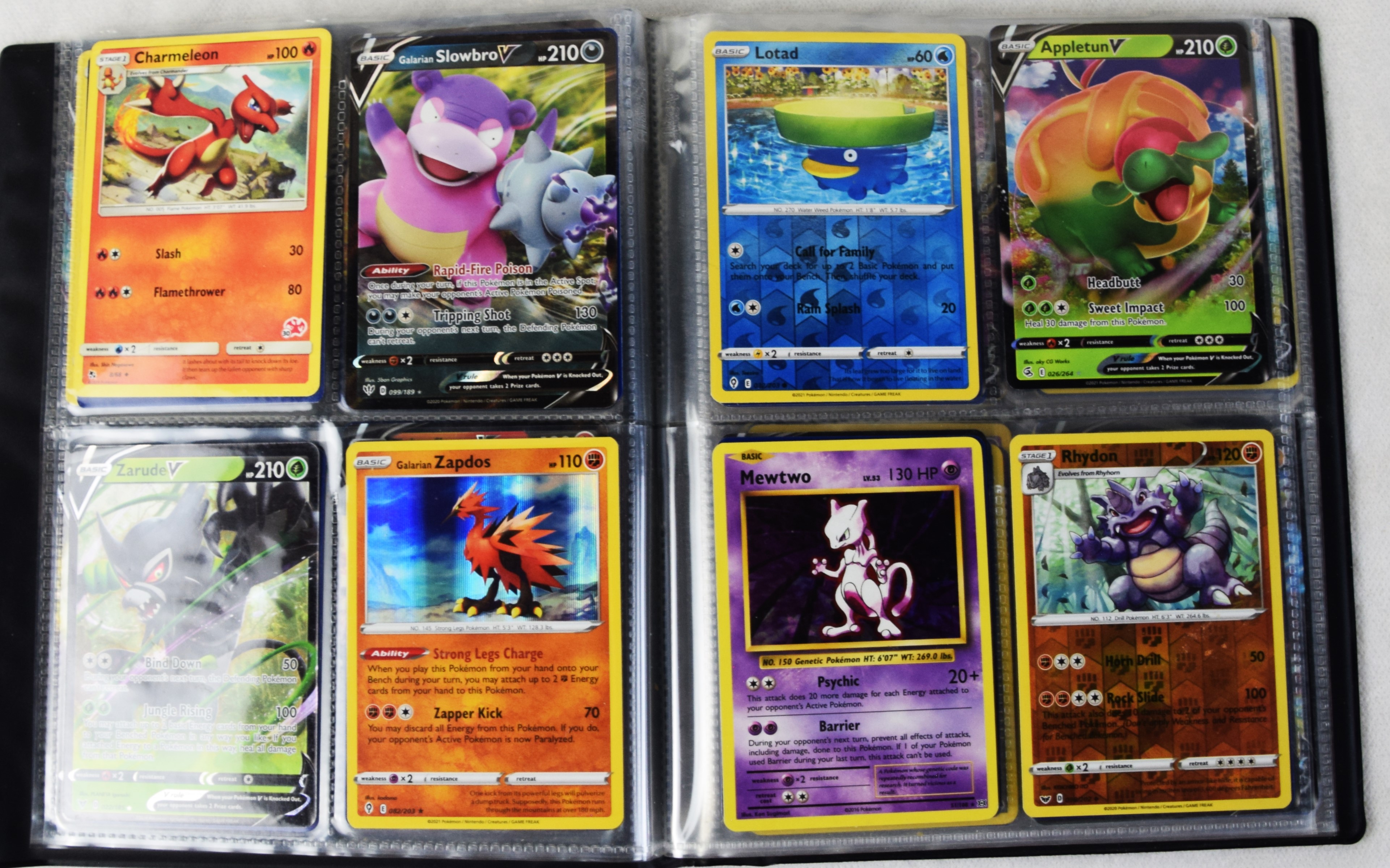 Approximately 60 pages of 4 cards each in three Pokémon binders, 2007-2022 vintage.