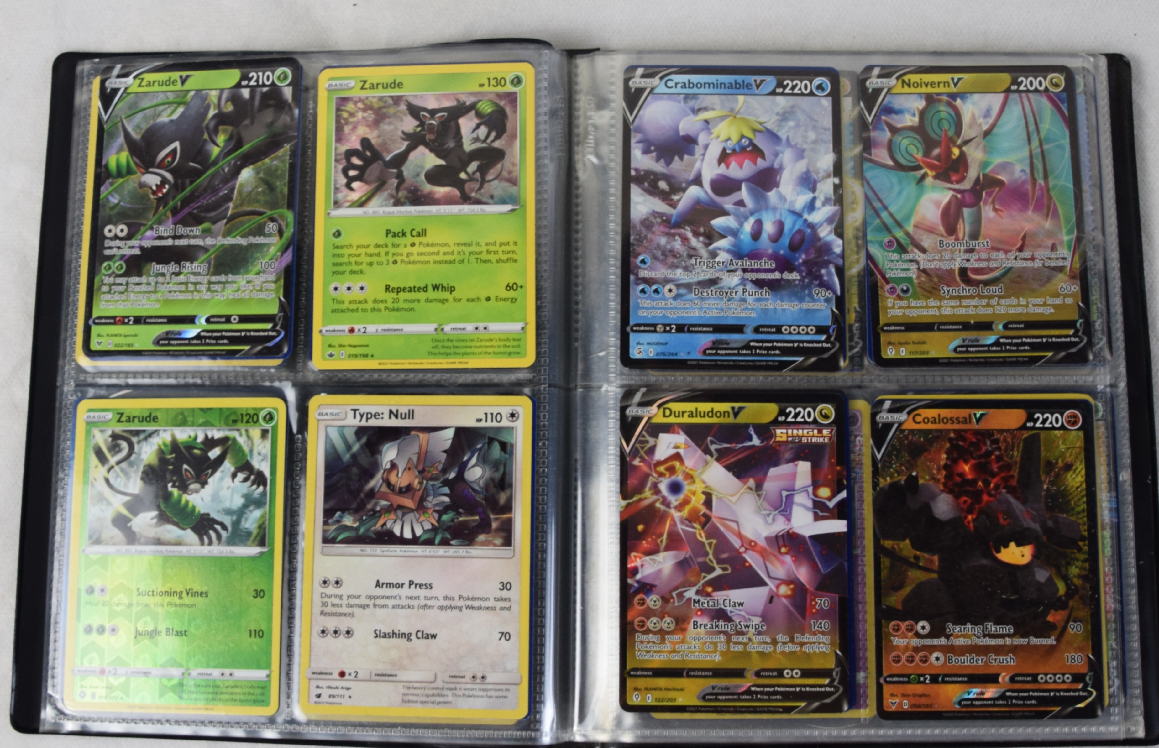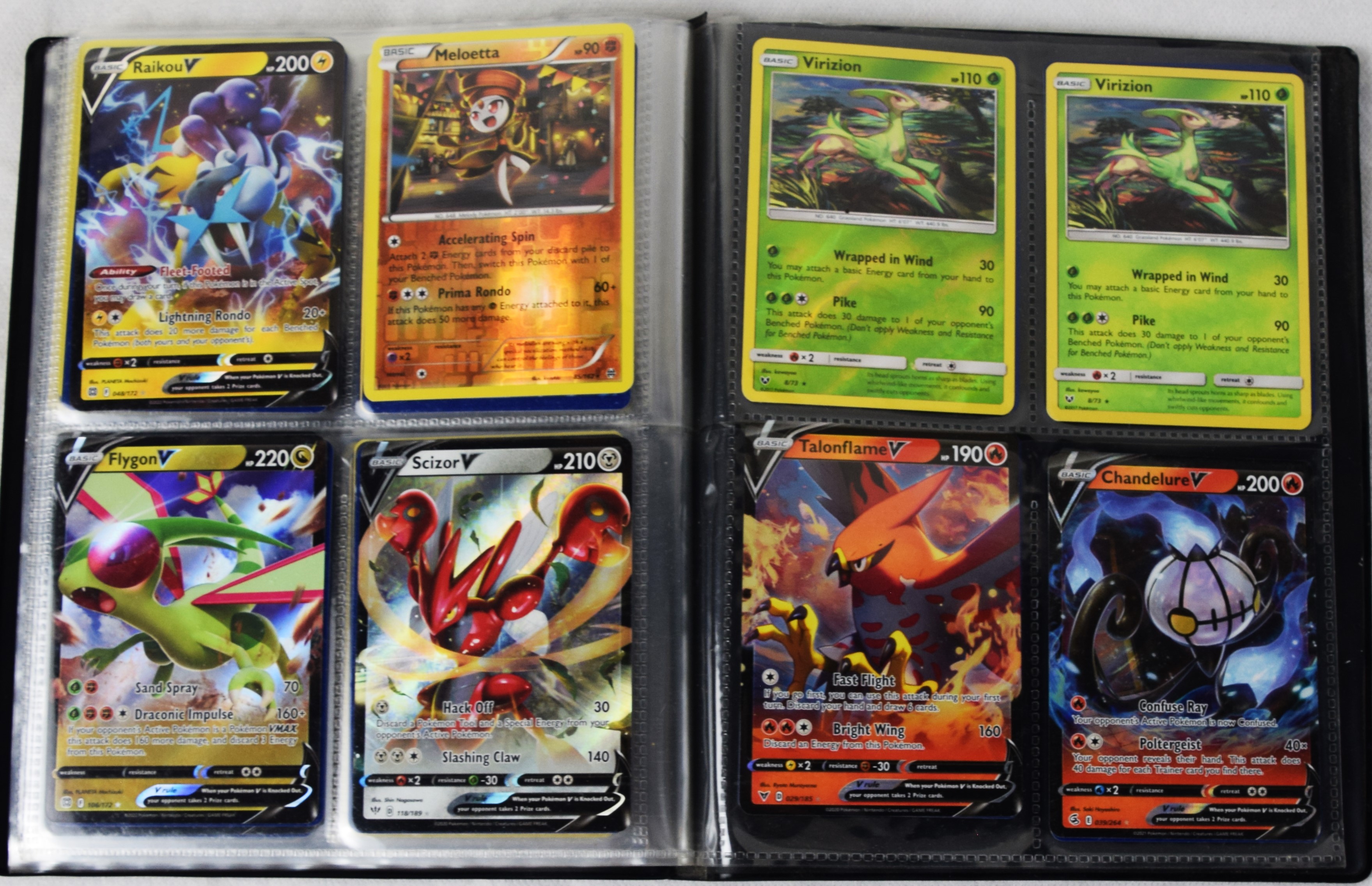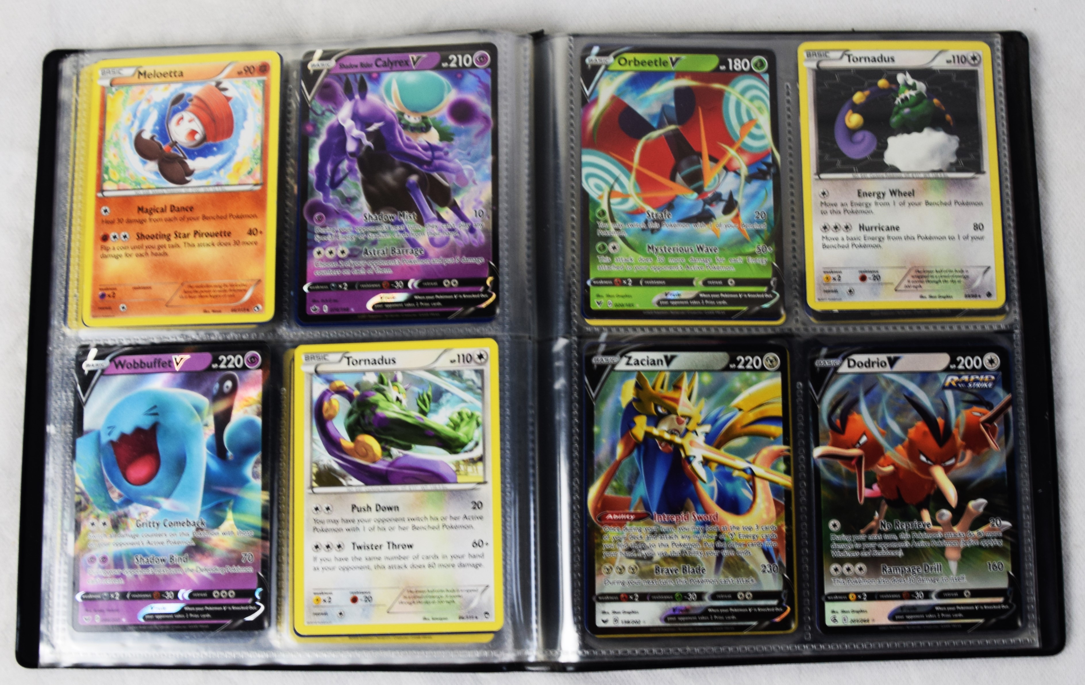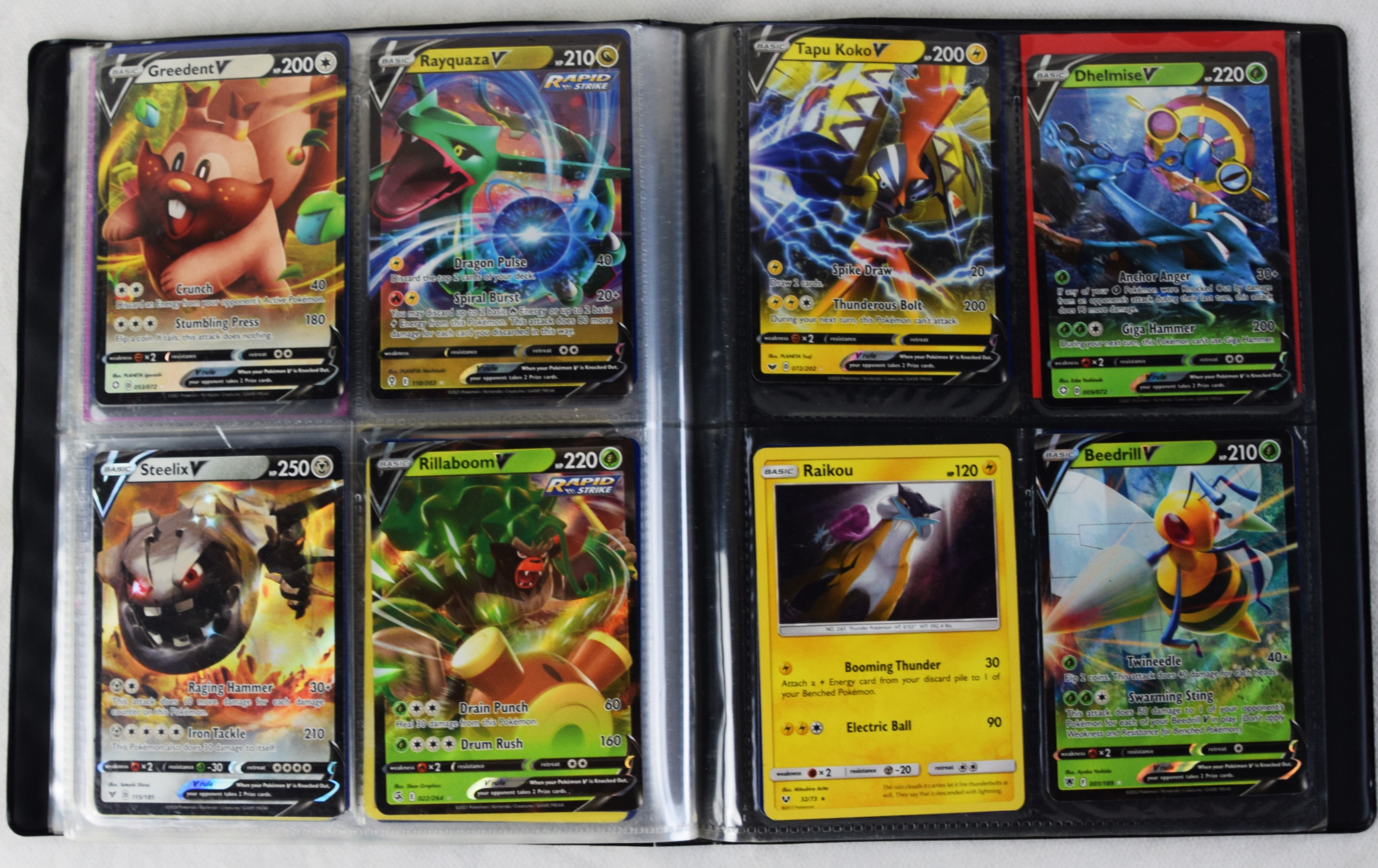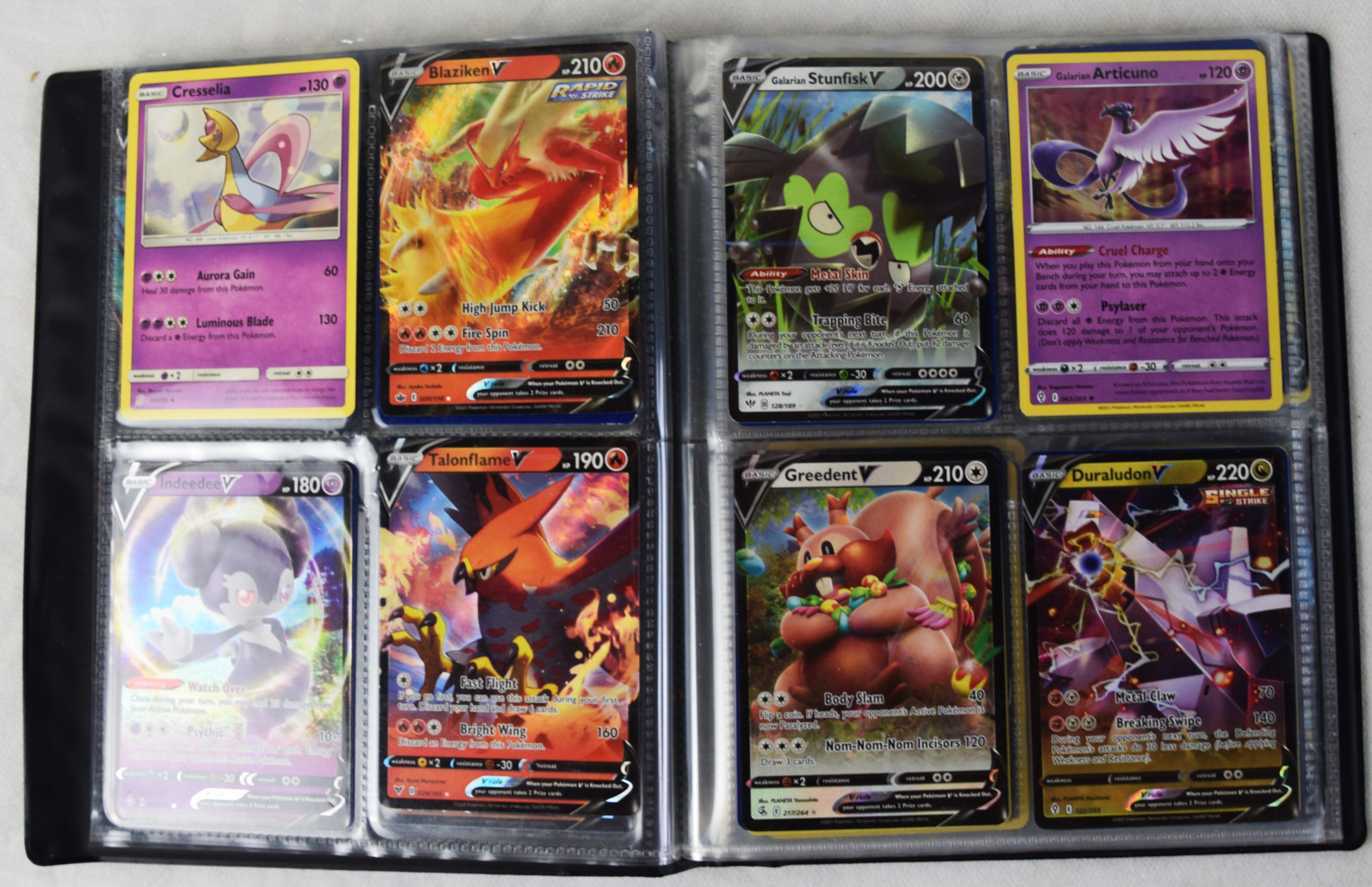Approximately 60 pages of 4 cards each in three Pokémon binders, 2007-2022 vintage.
