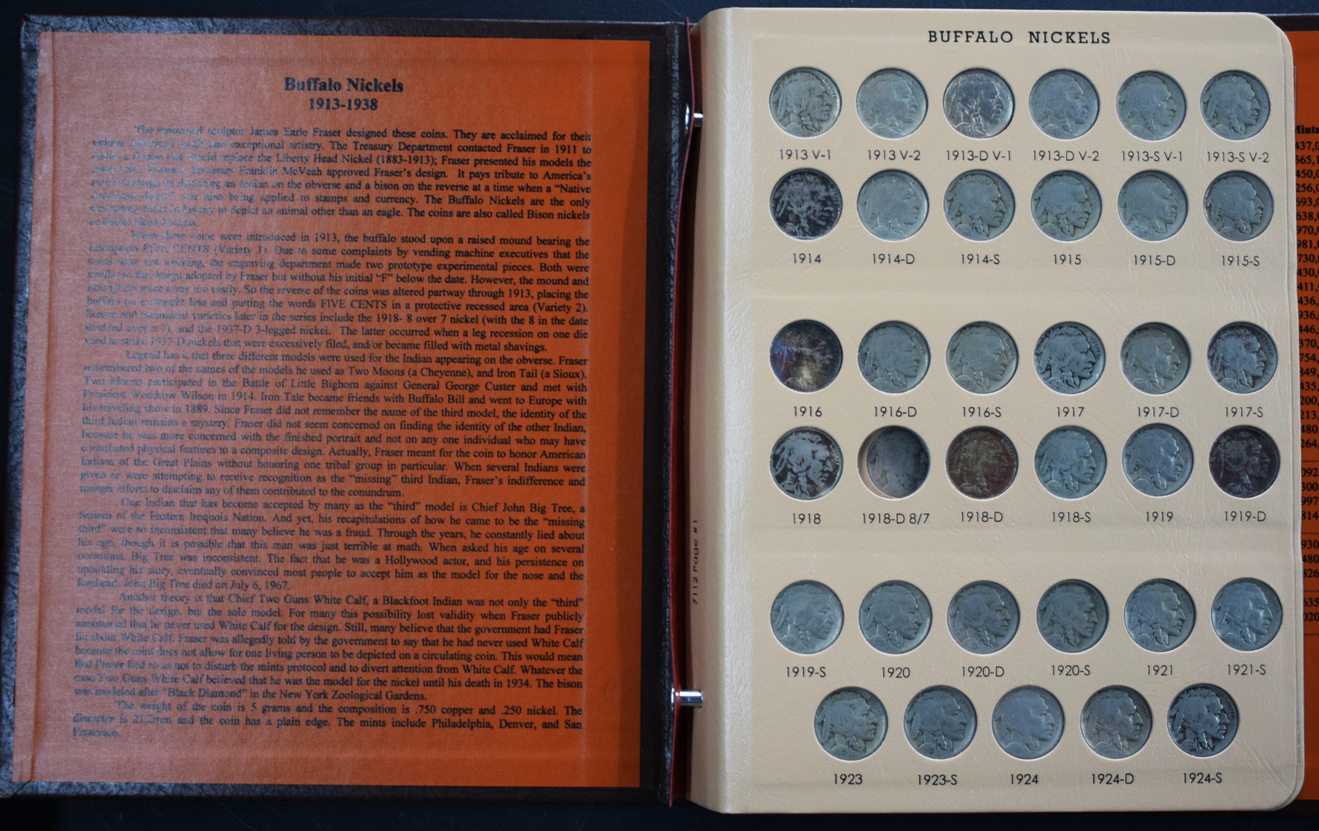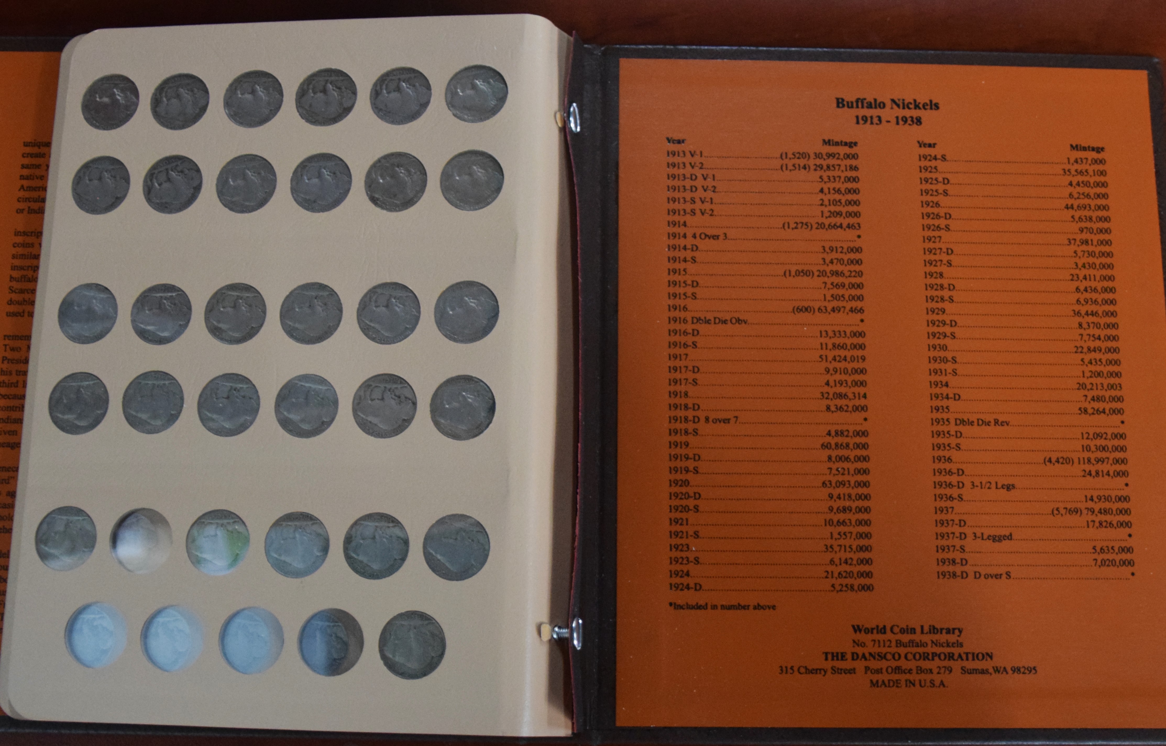 Almost complete Buffalo Nickel 1913-1938 collection in a World Coin Library