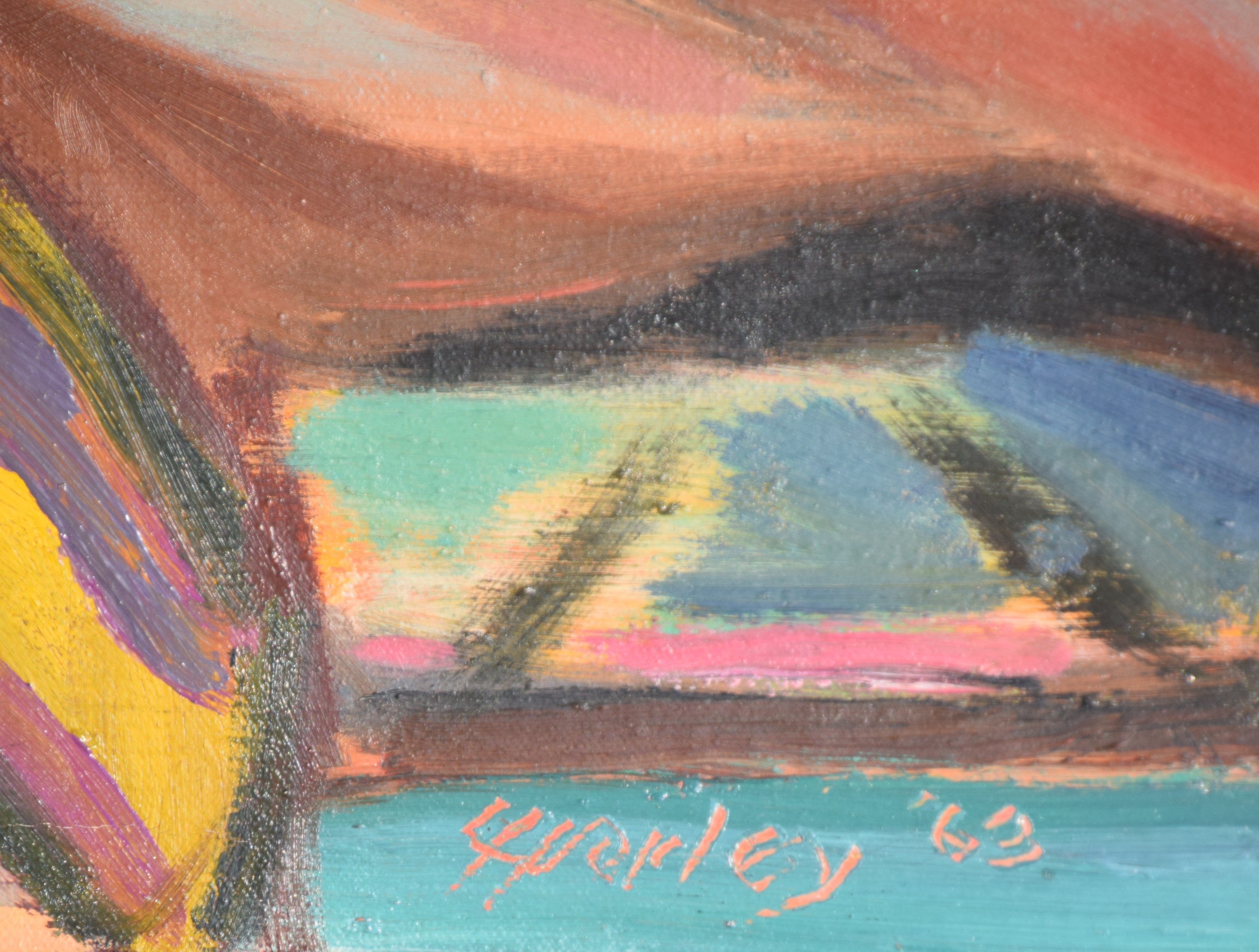 Wilson Hurley signed and dated 1963 portrait of a lady, perhaps American Indian. Wilson Hurley (1924 – 2008) worked in New Mexico and Oklahoma and is known for Landscapes and western genre. Dimensions: 17″ x 16″ Image size