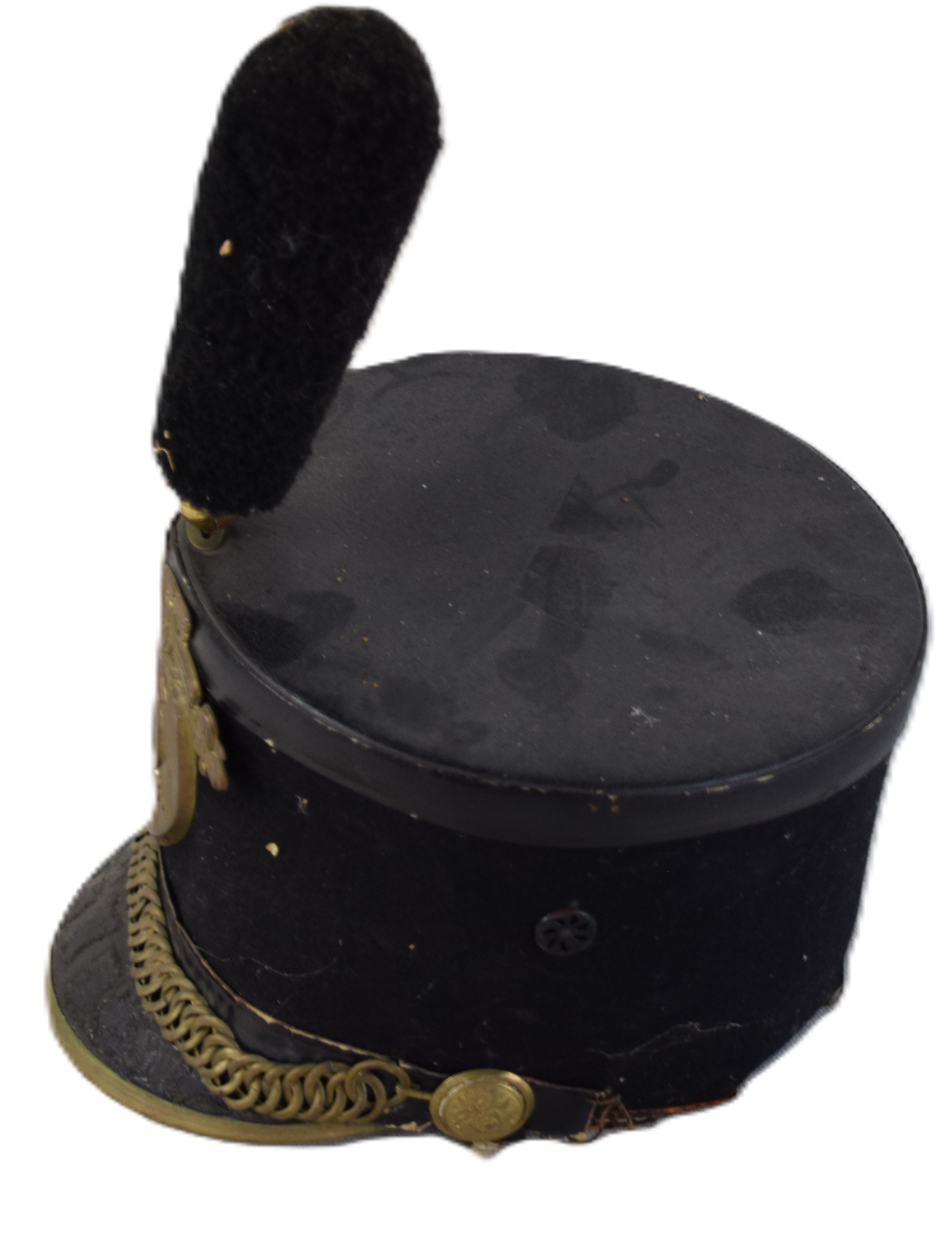 West Point Cadet bucket dress headgear circa 1950s with West Point brass Insignia. Dimensions: 13″ H