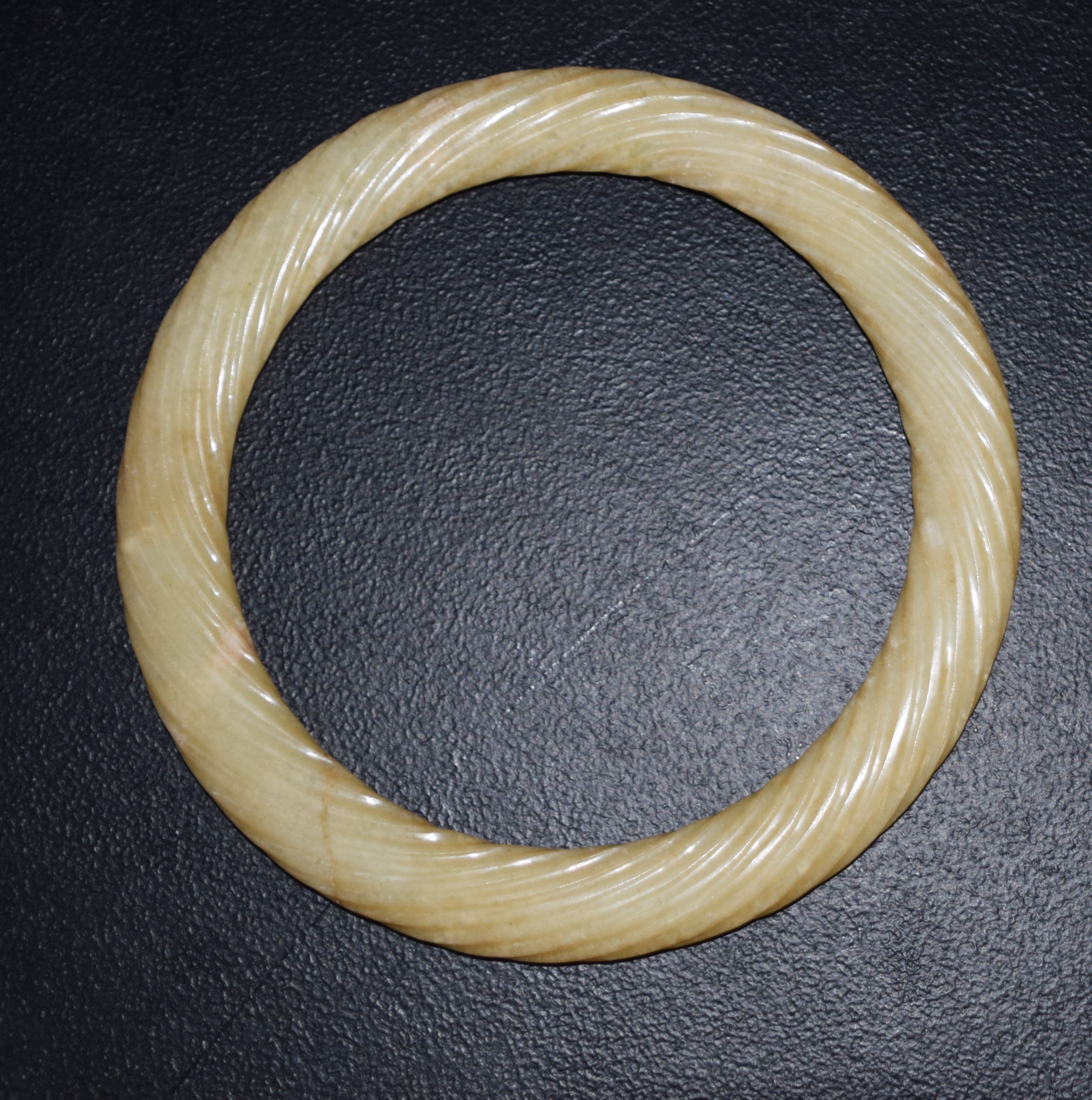 Rope or bamboo carved jade large ring/bracelet. Dimensions: 6 3/4″ Diameter