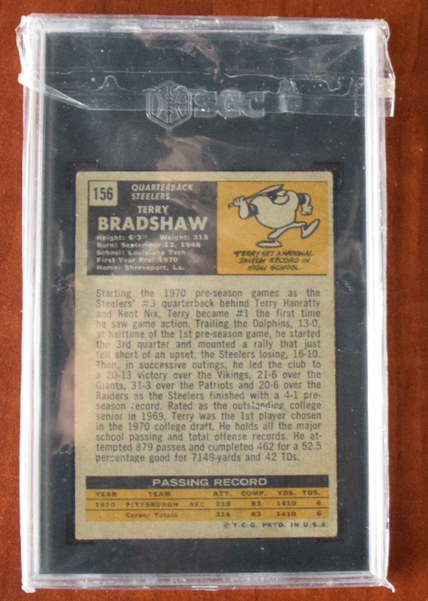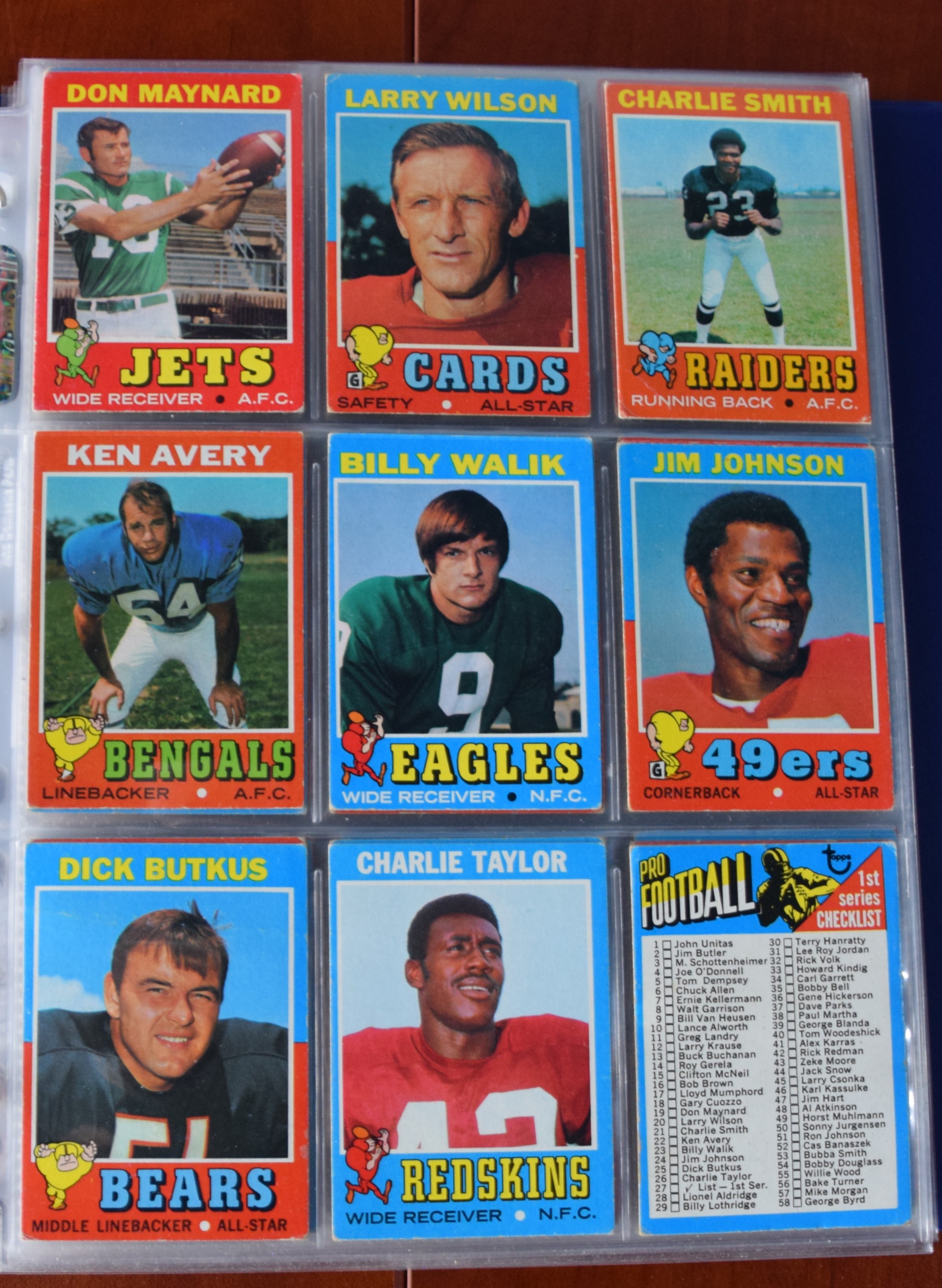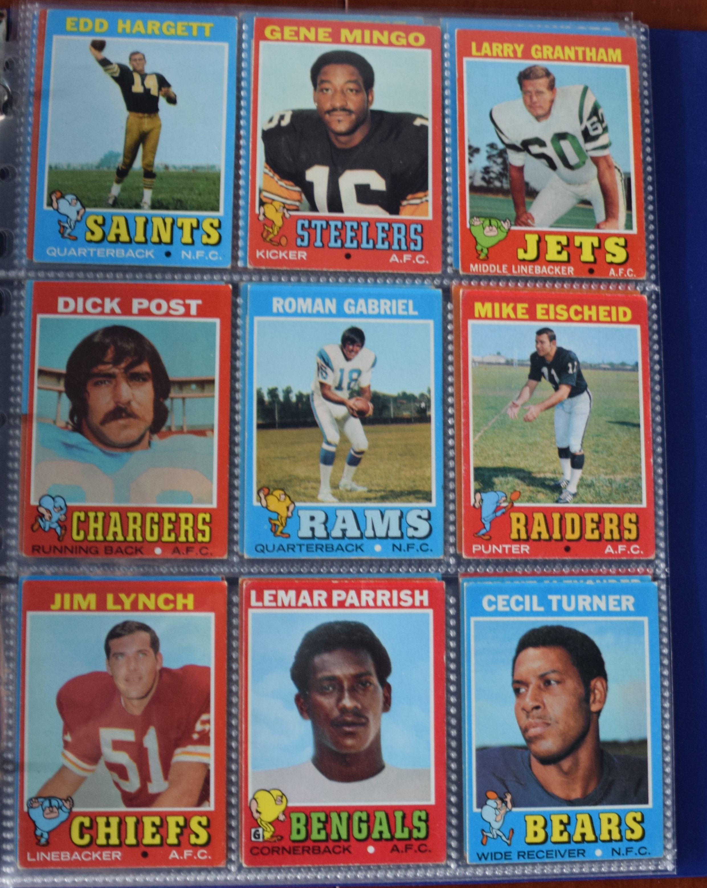 Complete 1971 football set to include many all time greats and a graded (4.0) Terry Bradshaw. 263 cards total