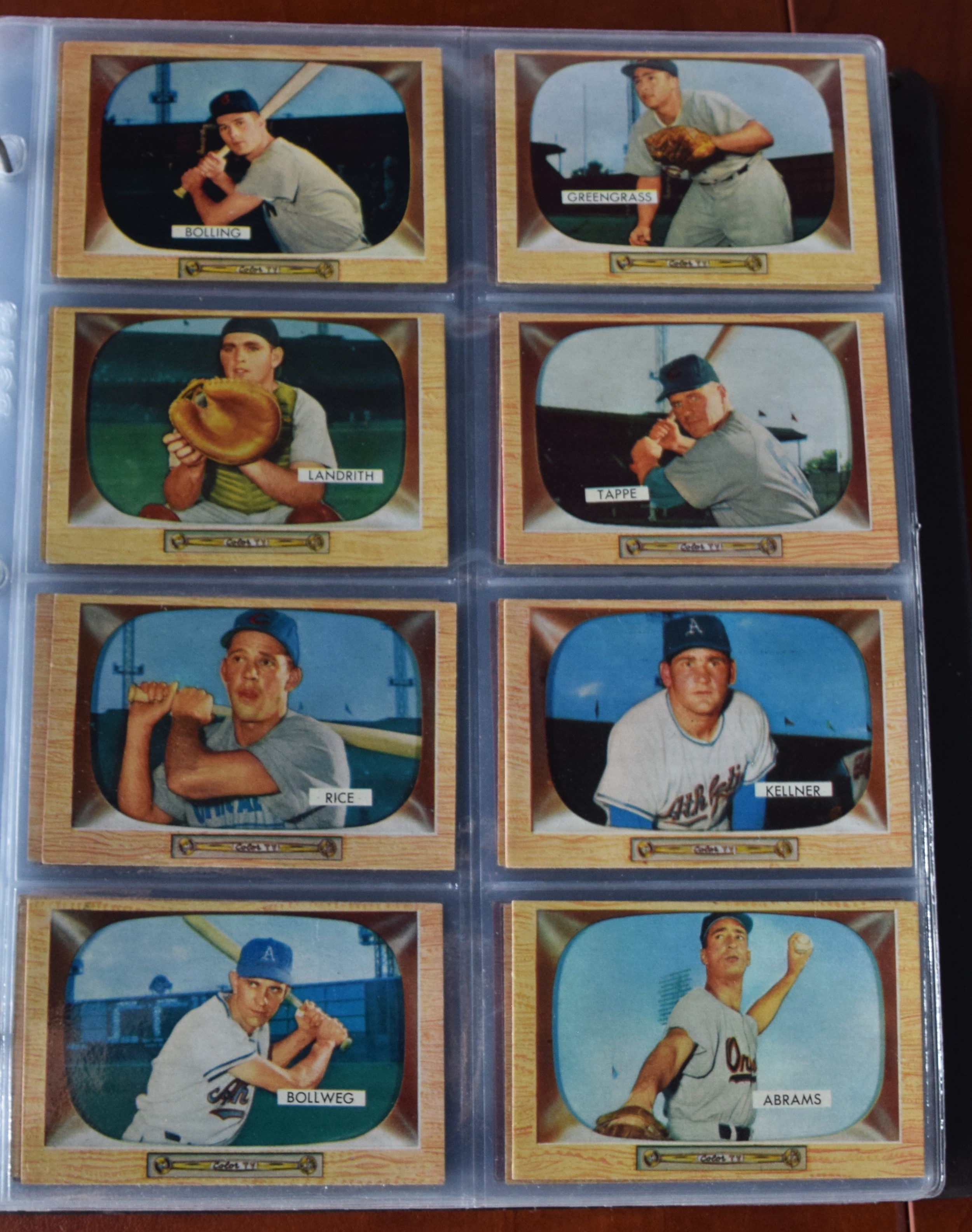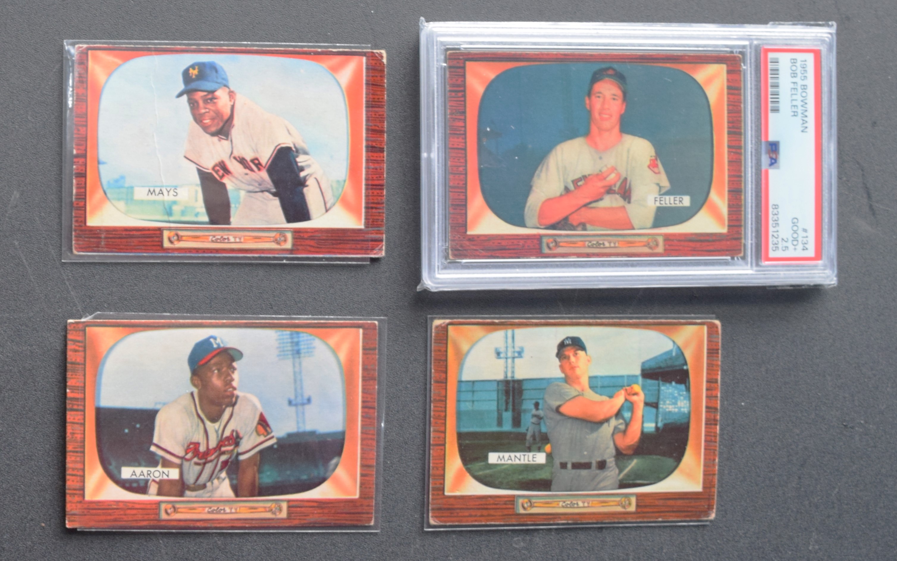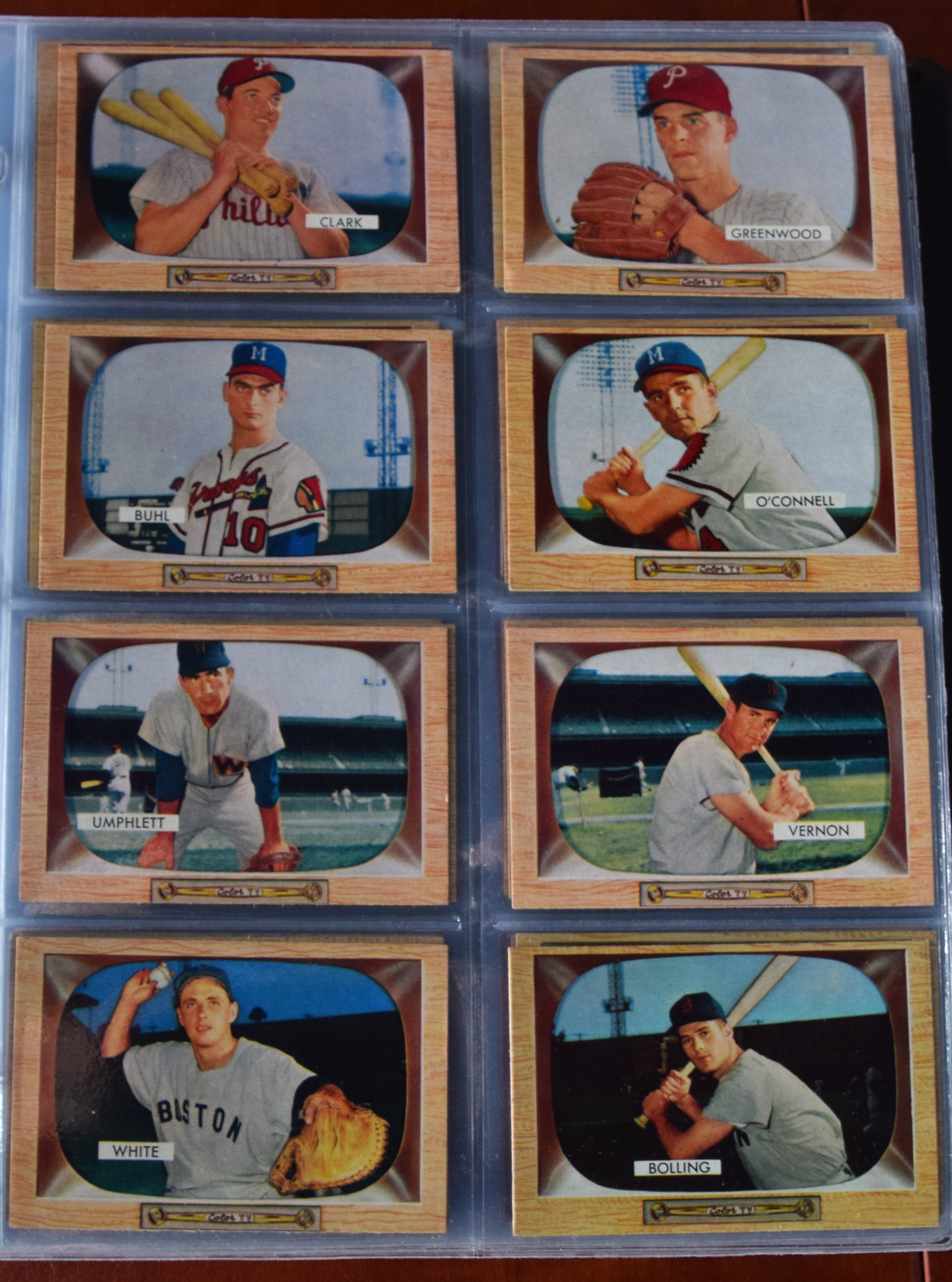 Complete Bowman set of 1955 Baseball Card Set (320 cards) published by B.G.H.L.I. (Bowman Gum Haelan Laboratories Inc.) Card #134 is a Bob Feller graded card of 2.5