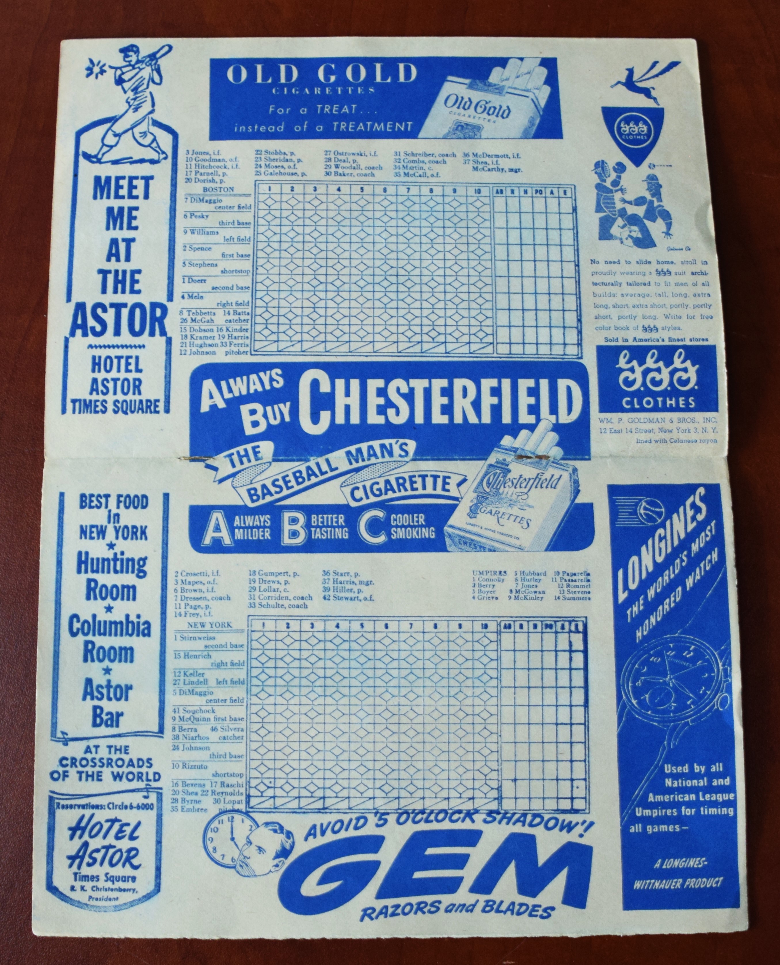 25th Anniversary Yankee Stadium Scorecard of the Yankees versus the Red Sox.
