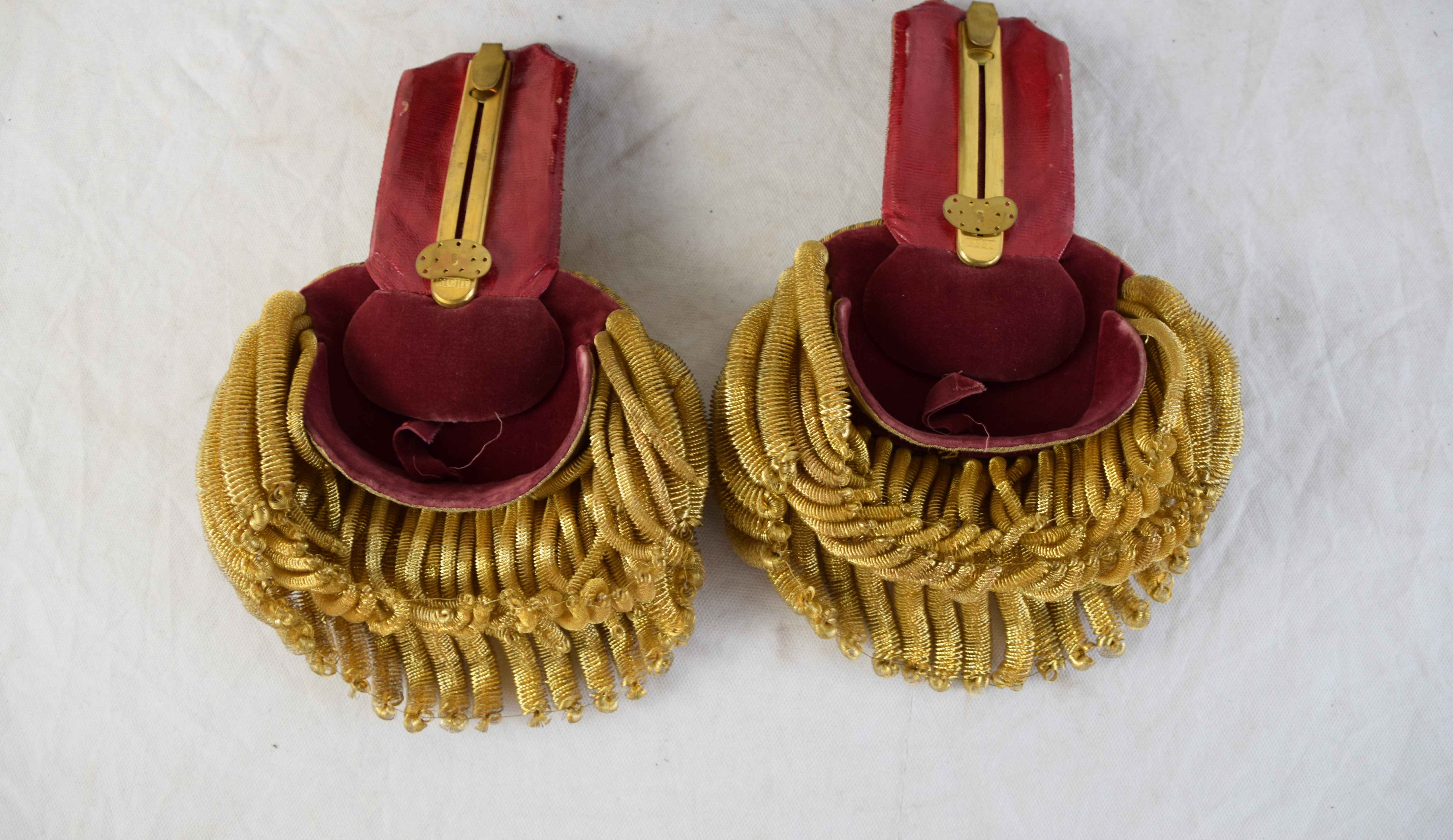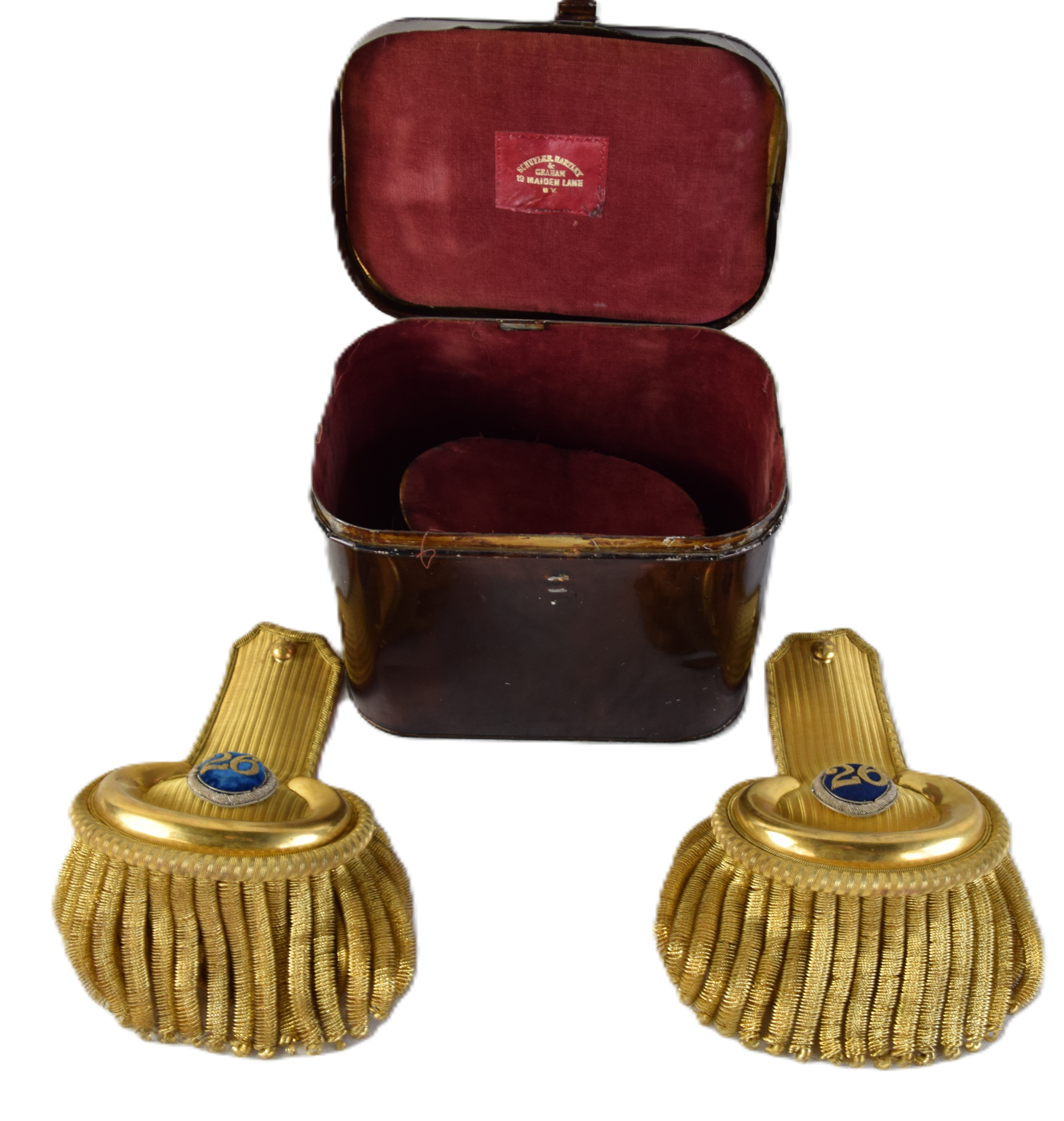 Officer dress epaulets from the 26th Infantry Regiment (Either NY or Penn) with original metal case made by Schuyer, Hartly & Graham of 19 Maiden Lane, NY.