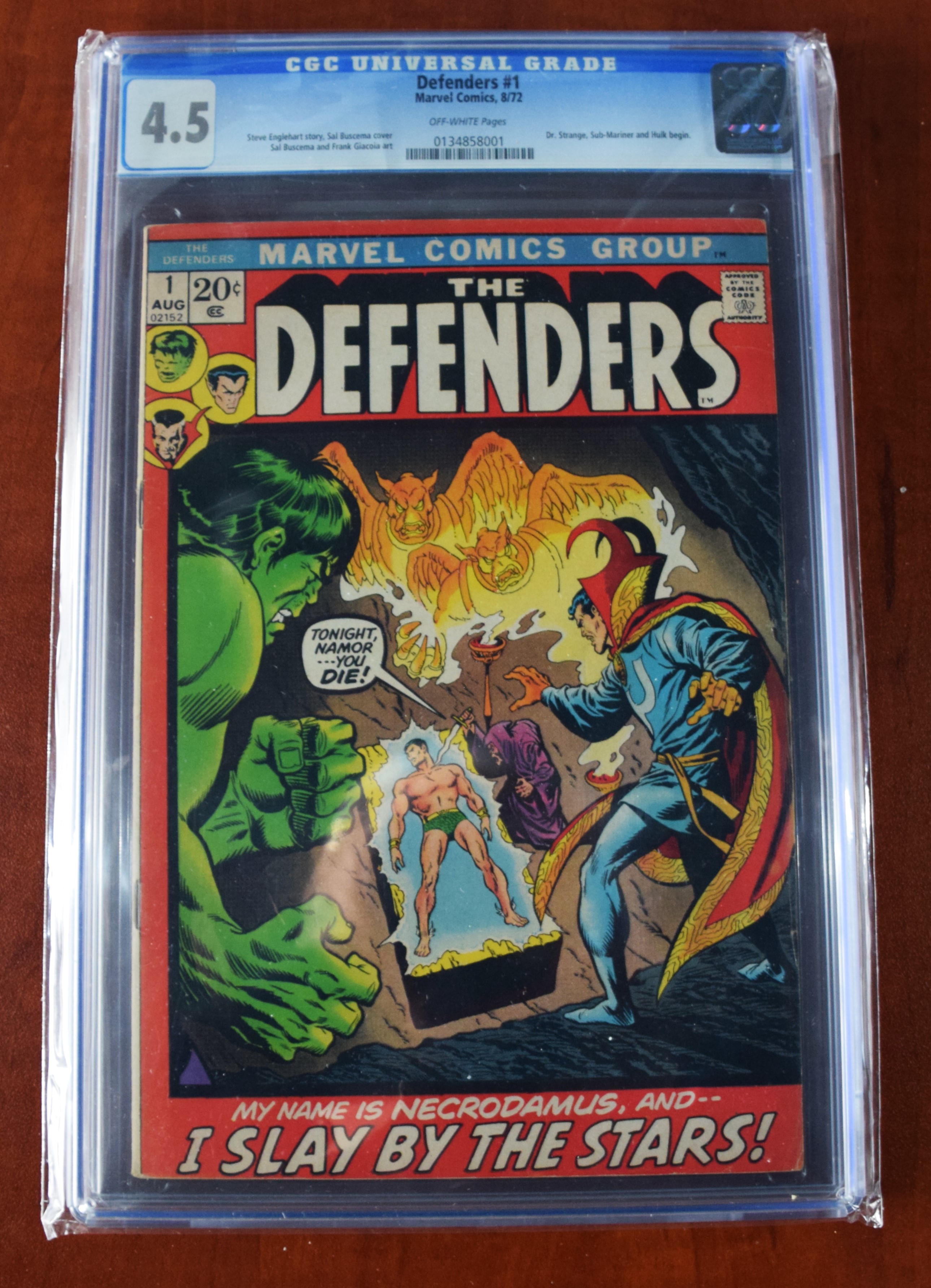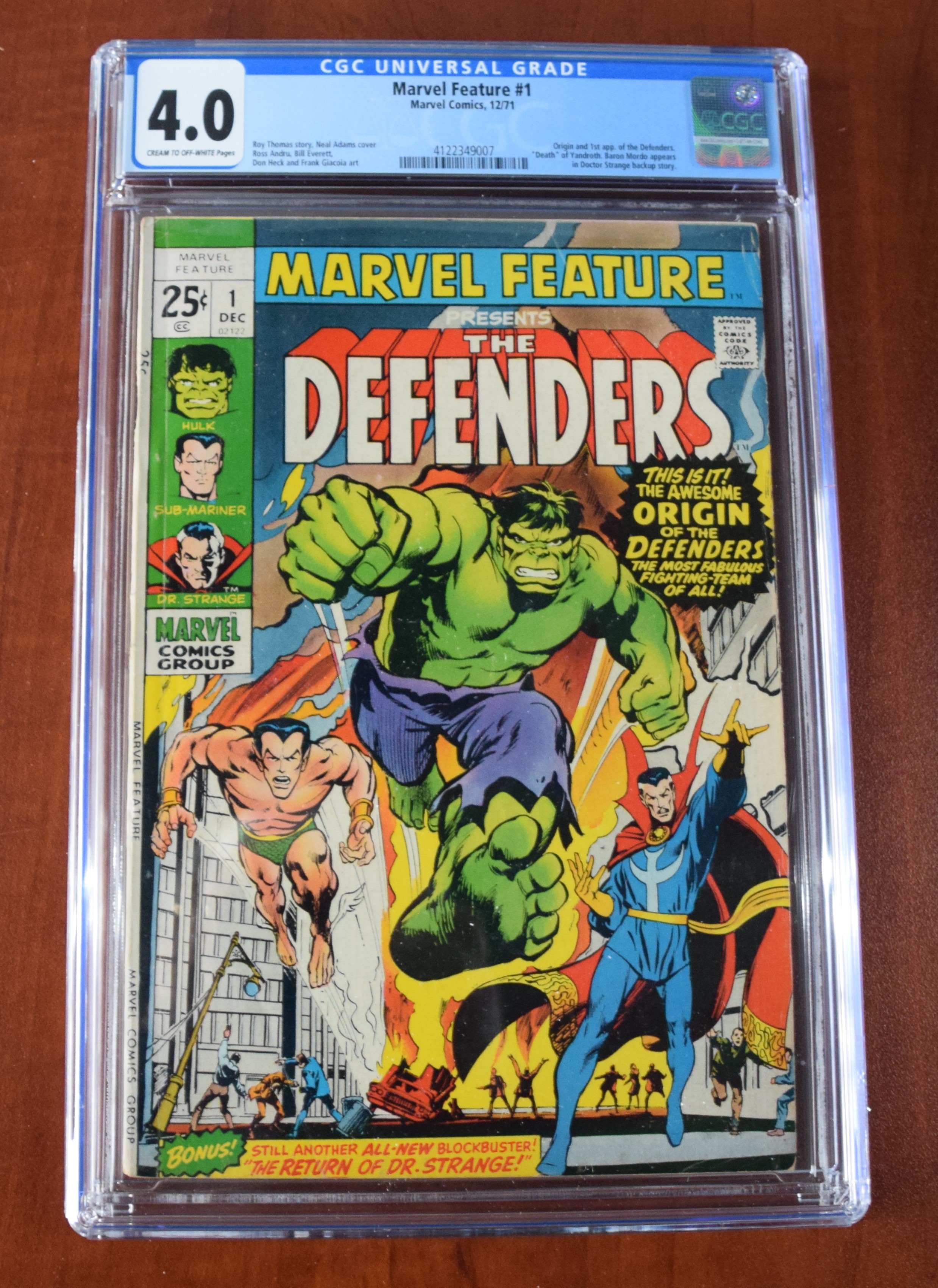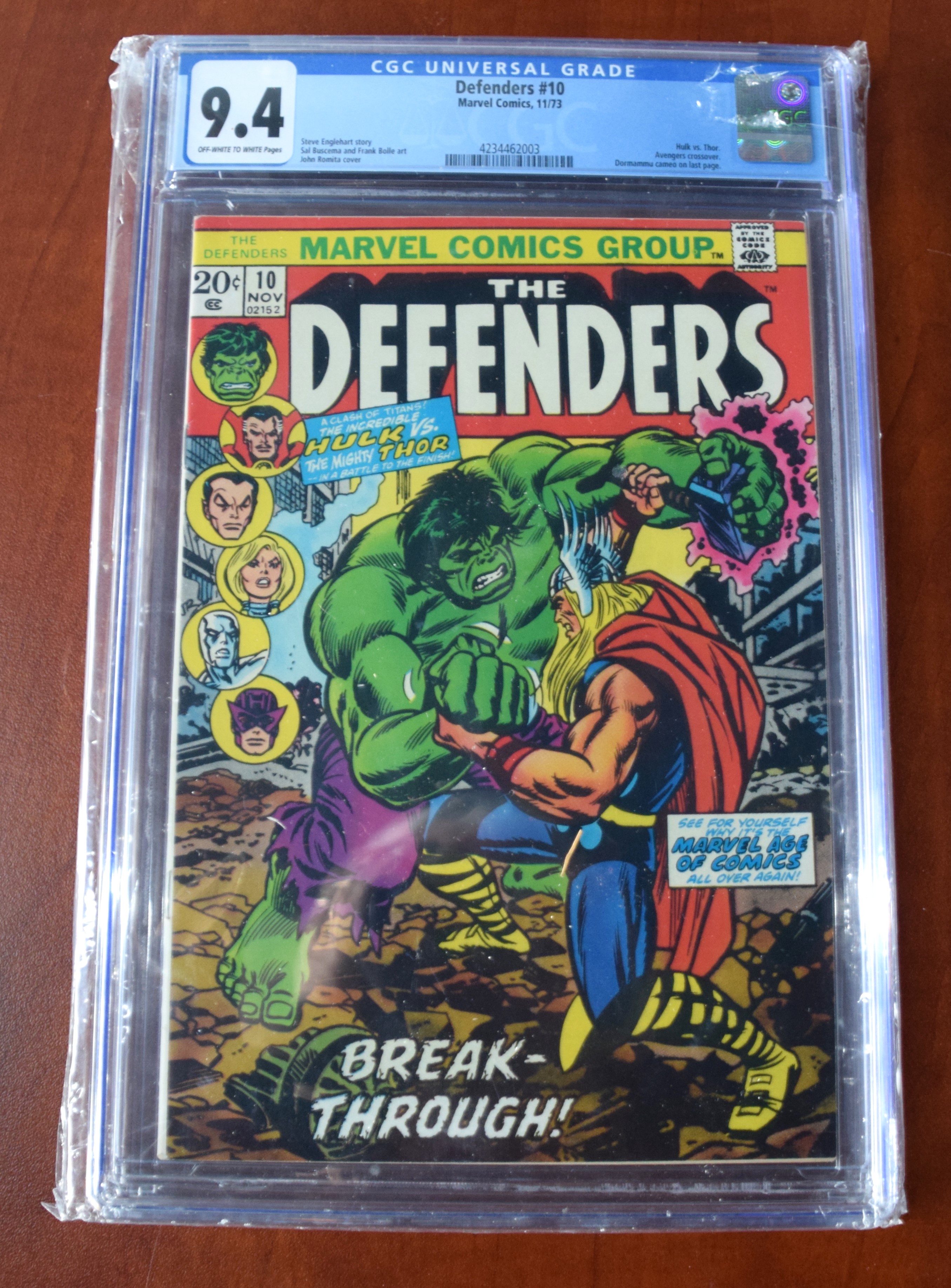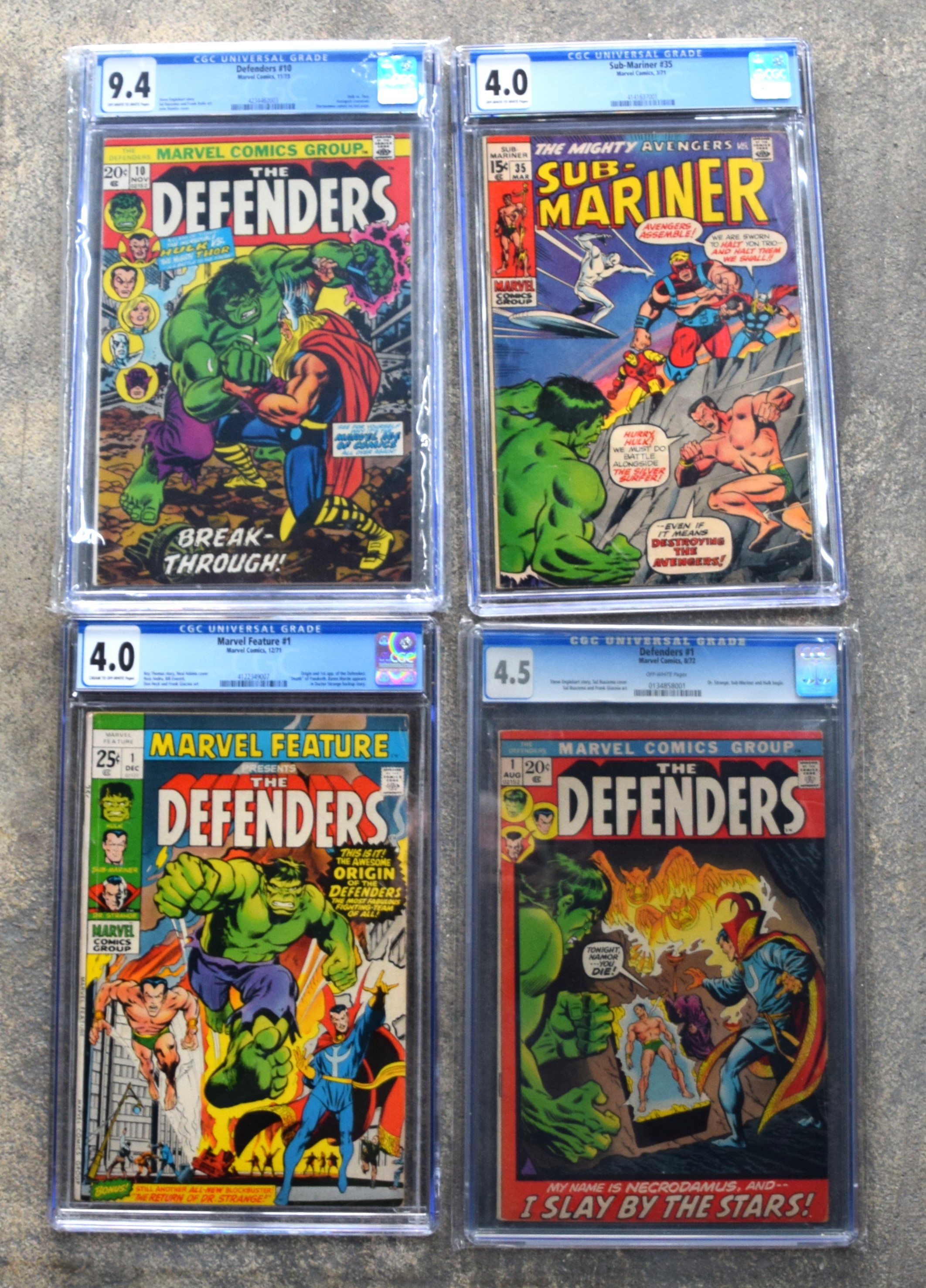 Four graded Marval comics including “the Defenders” issue 12/71 (4.0 Grade), issue 8/72 (4.5 Grade) and 11/73 (9.4 Grade) as well as Sub Mariner issue 3/71 (4.0 Grade)