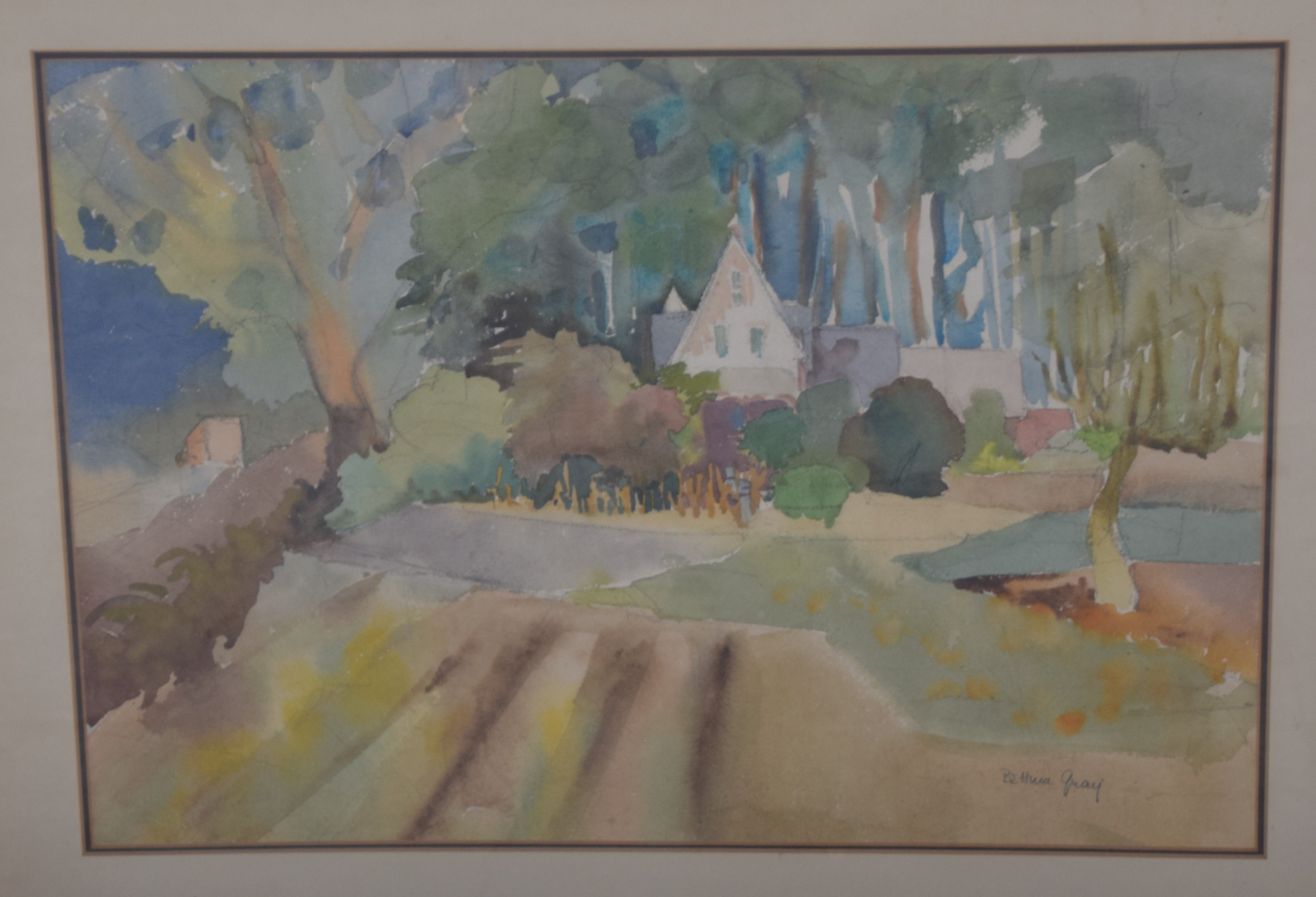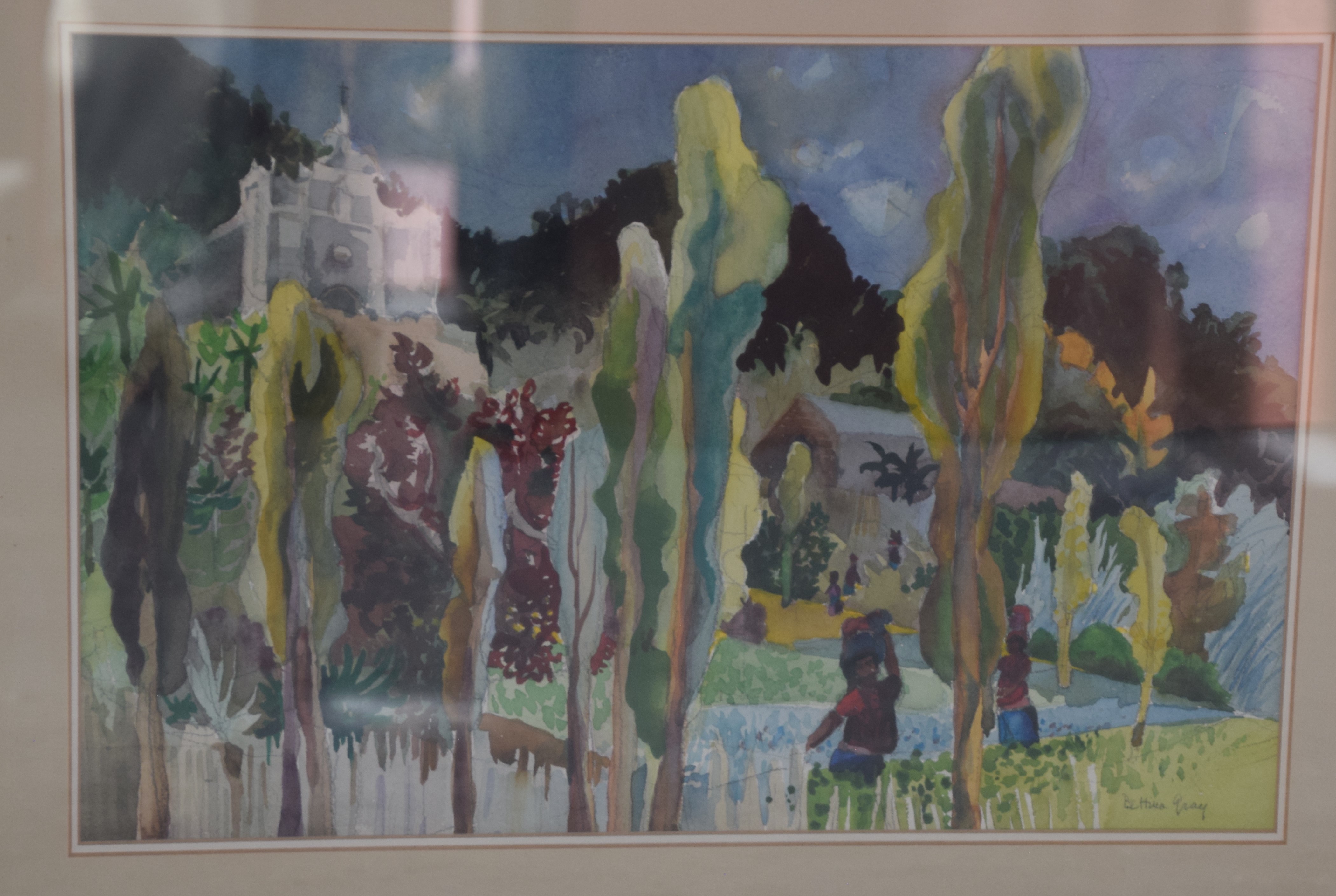 Three framed landscape watercolors with buildings, signed Bettwa Gray. Dimensions: 14.5″ x 20″, 13″ x 19″, 12″ x 19″ Image sizes