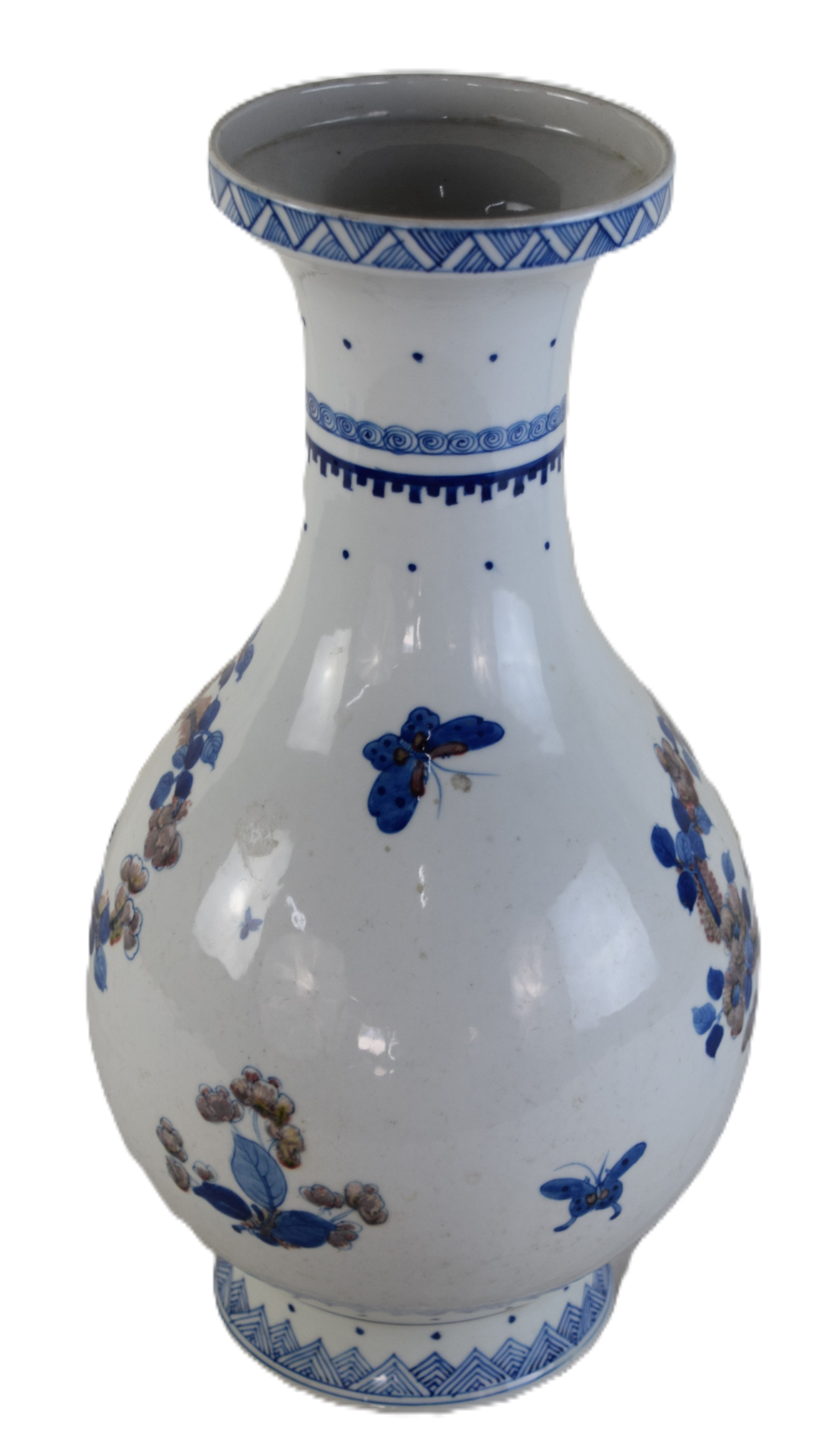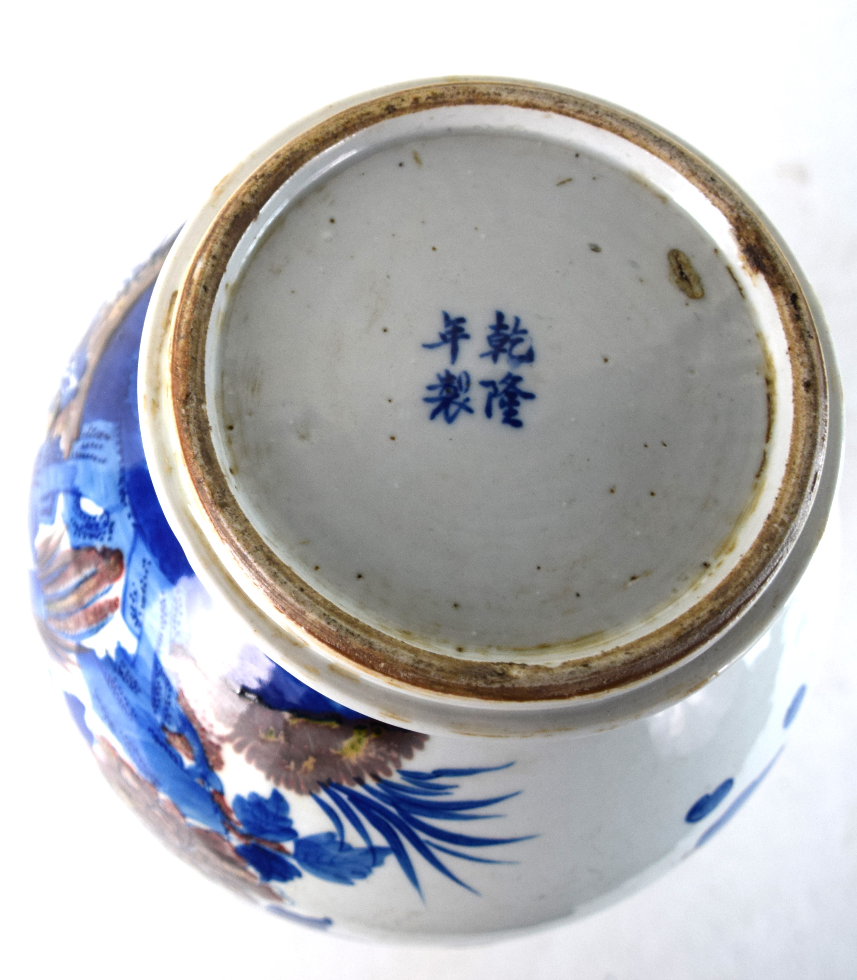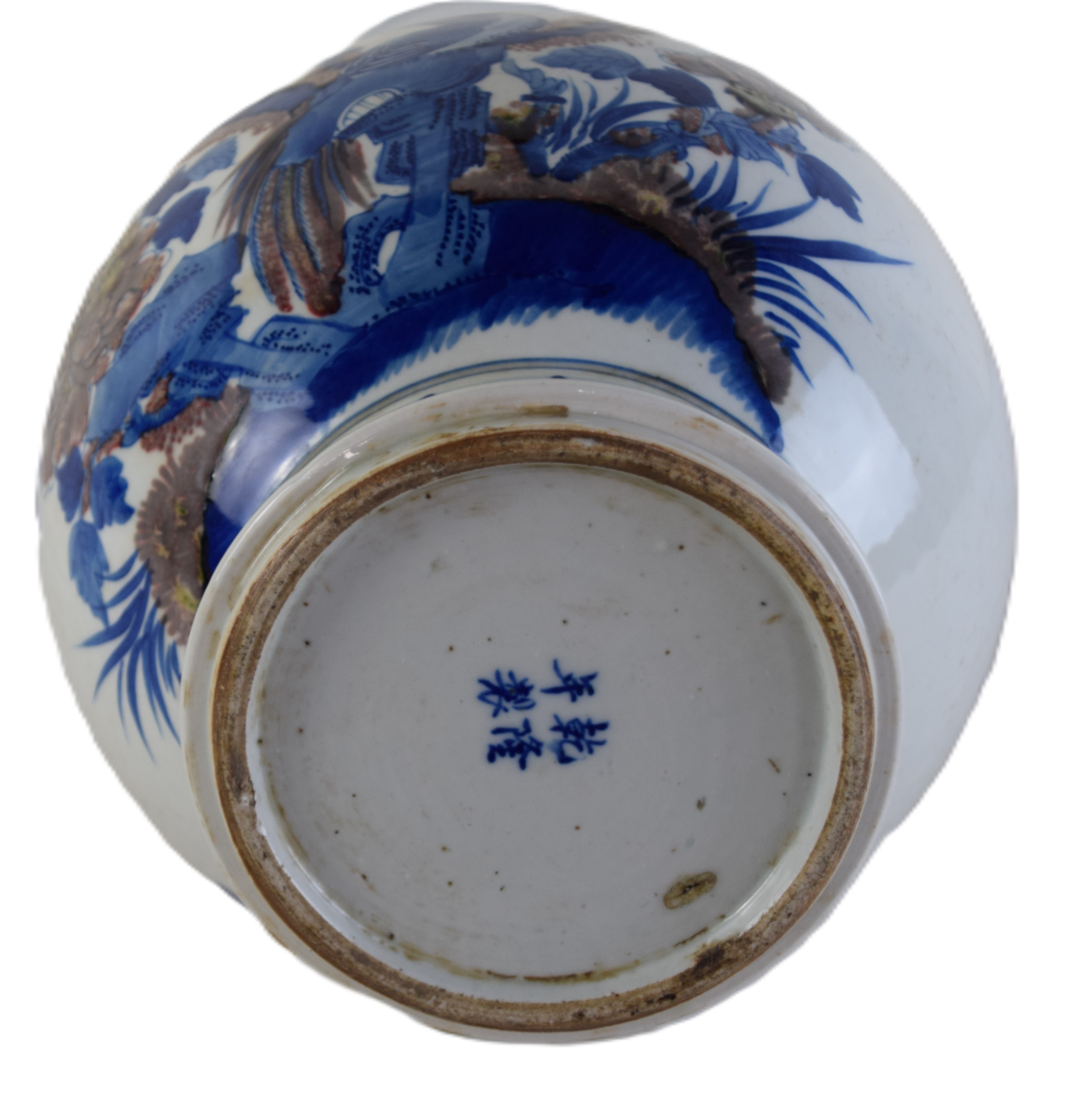 Chinese blue and white bird vase, Qing Dynasty, blue and white glaze with 4 character reign marks on bottom. Dimensions: 17″ H