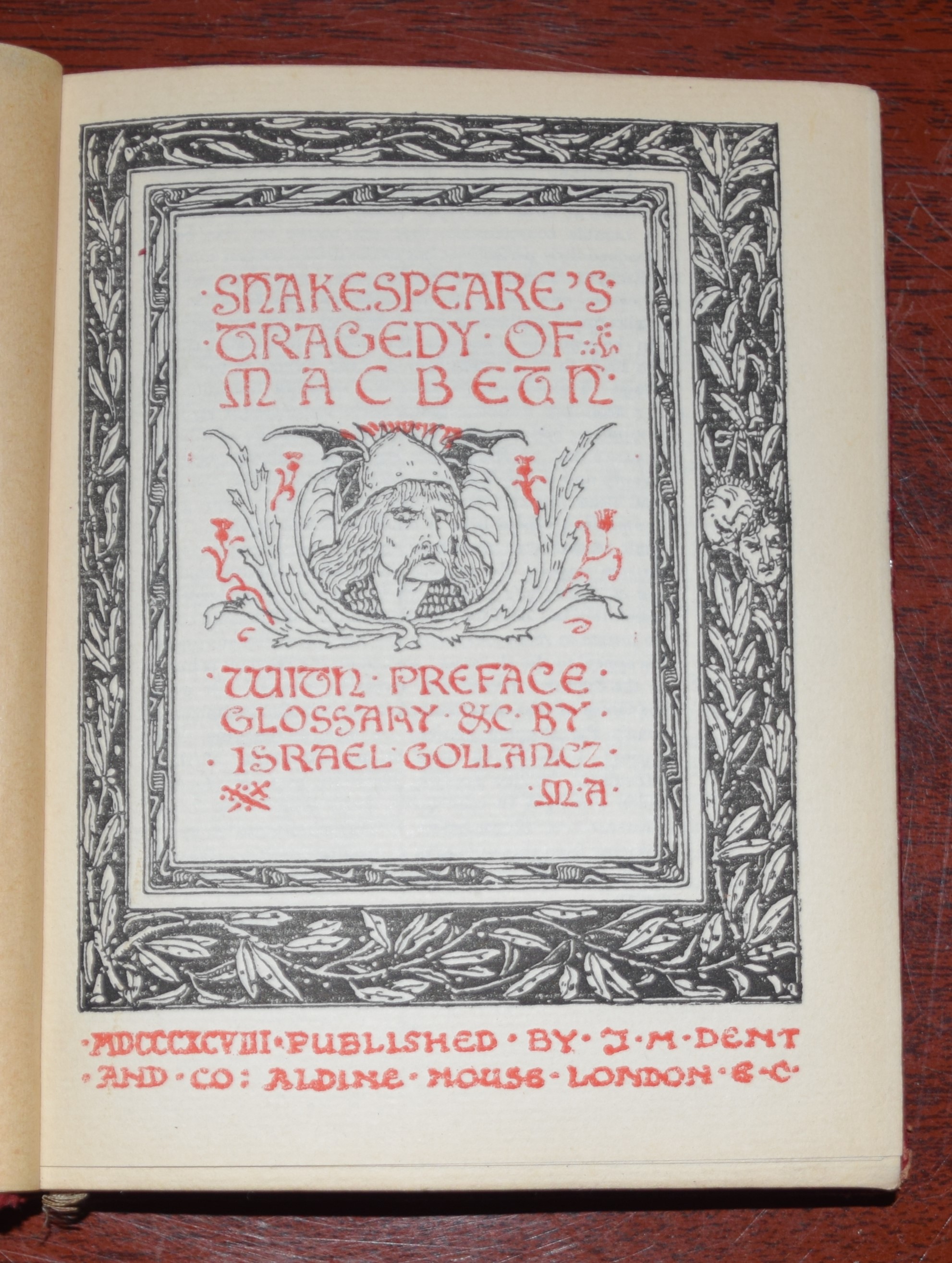 William Shakespeare – with Preface and Glossary by Israel Gollancz – 24 volumes : King Henry V – The Tempest – King Richard III – Midsummer Night’s Dream – King Lear – Othello – Macbeth – Comedy of Twelfth Night – As you like it – Merchant of Venice – First part of King Henry IV – Secon d part of King Henry IV – Romeo & Juliet – Hamlet. All in maroon leather with gilt imprint. Published 1899-1904.