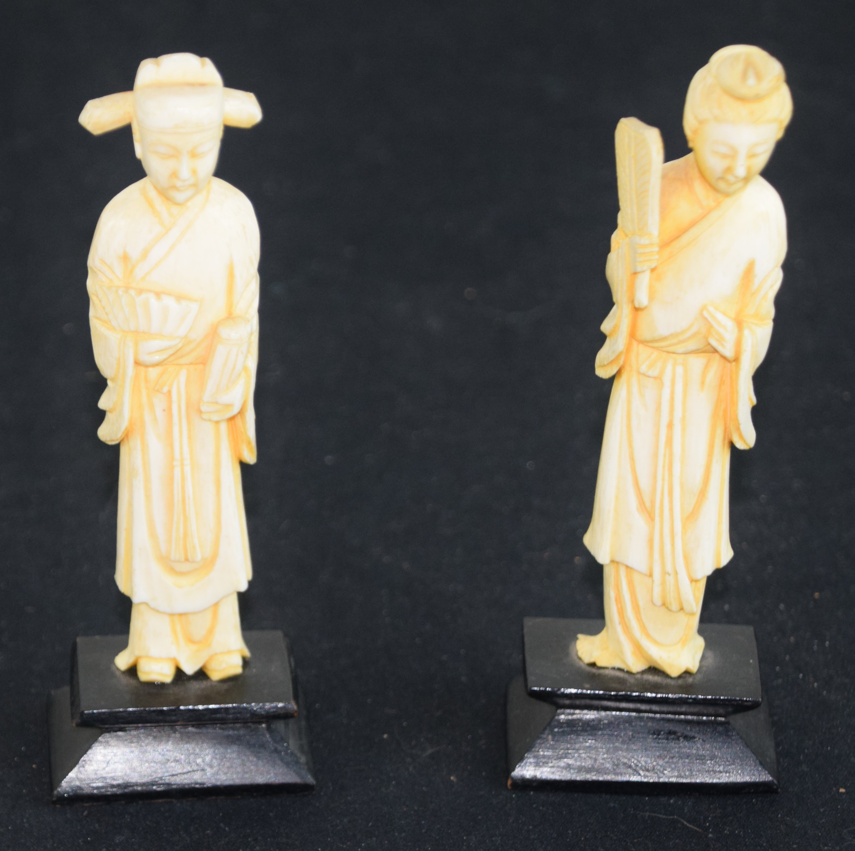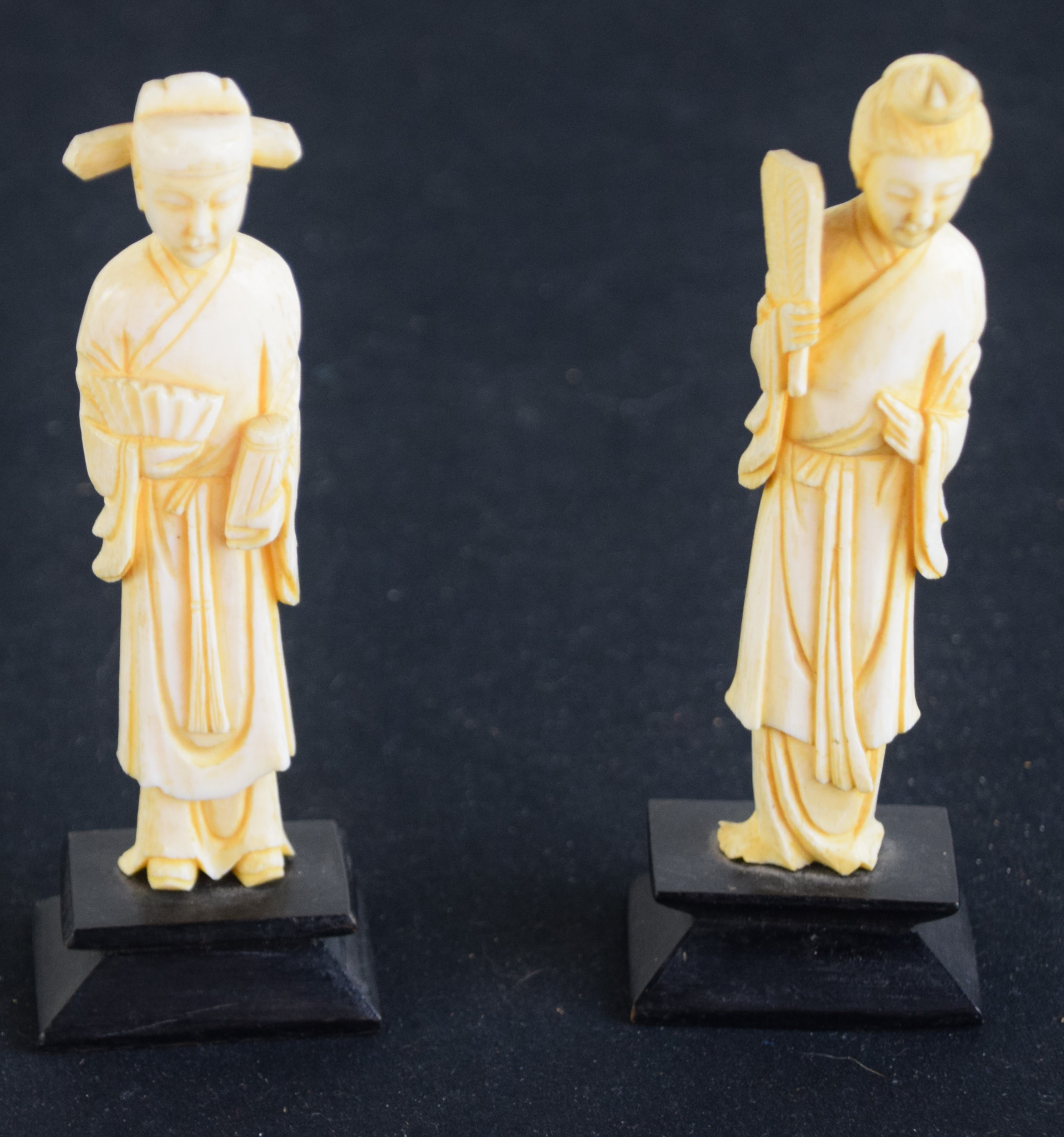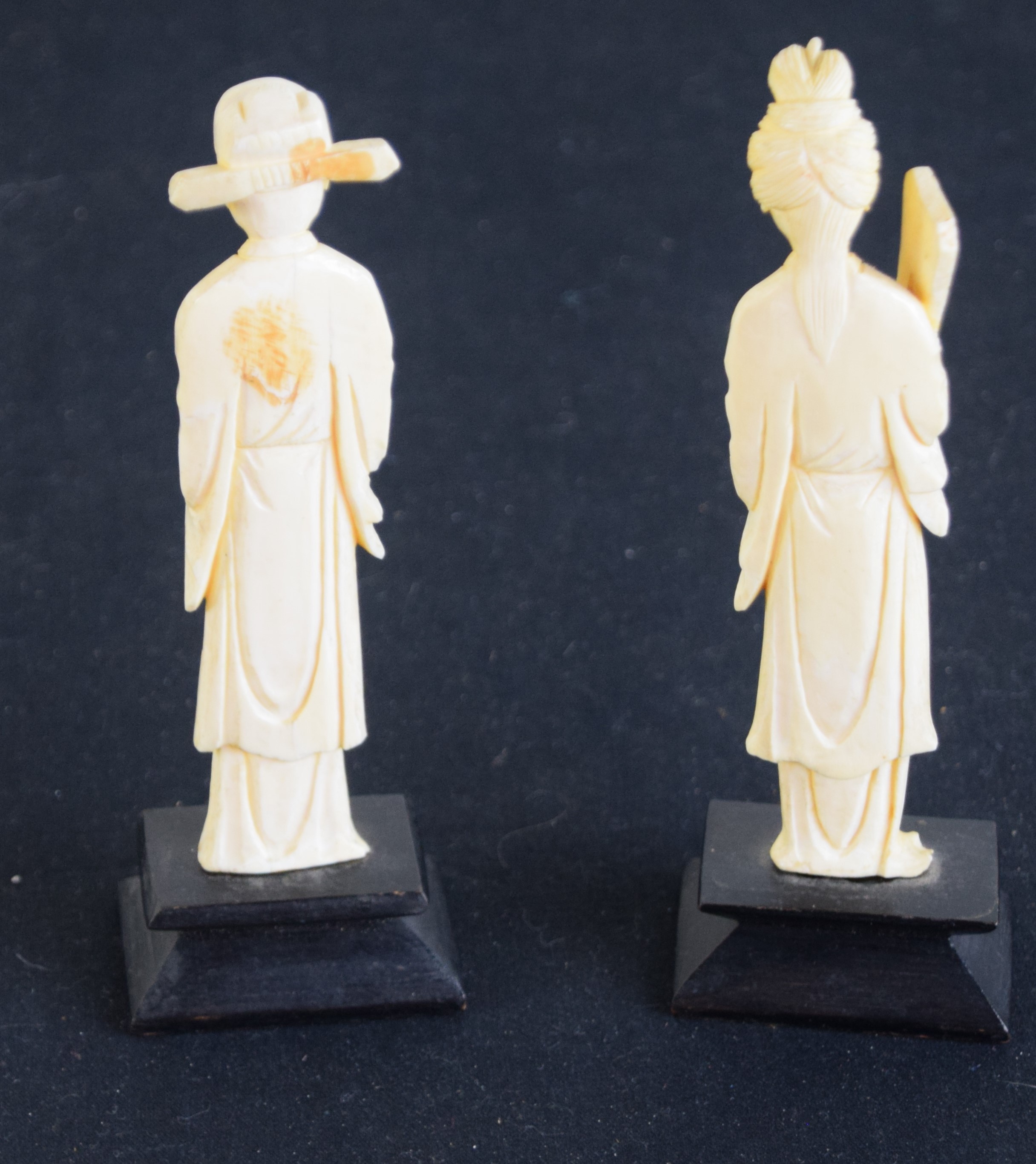 Pair of carved bone oriental figures on stands Dimensions: 5.5″ H