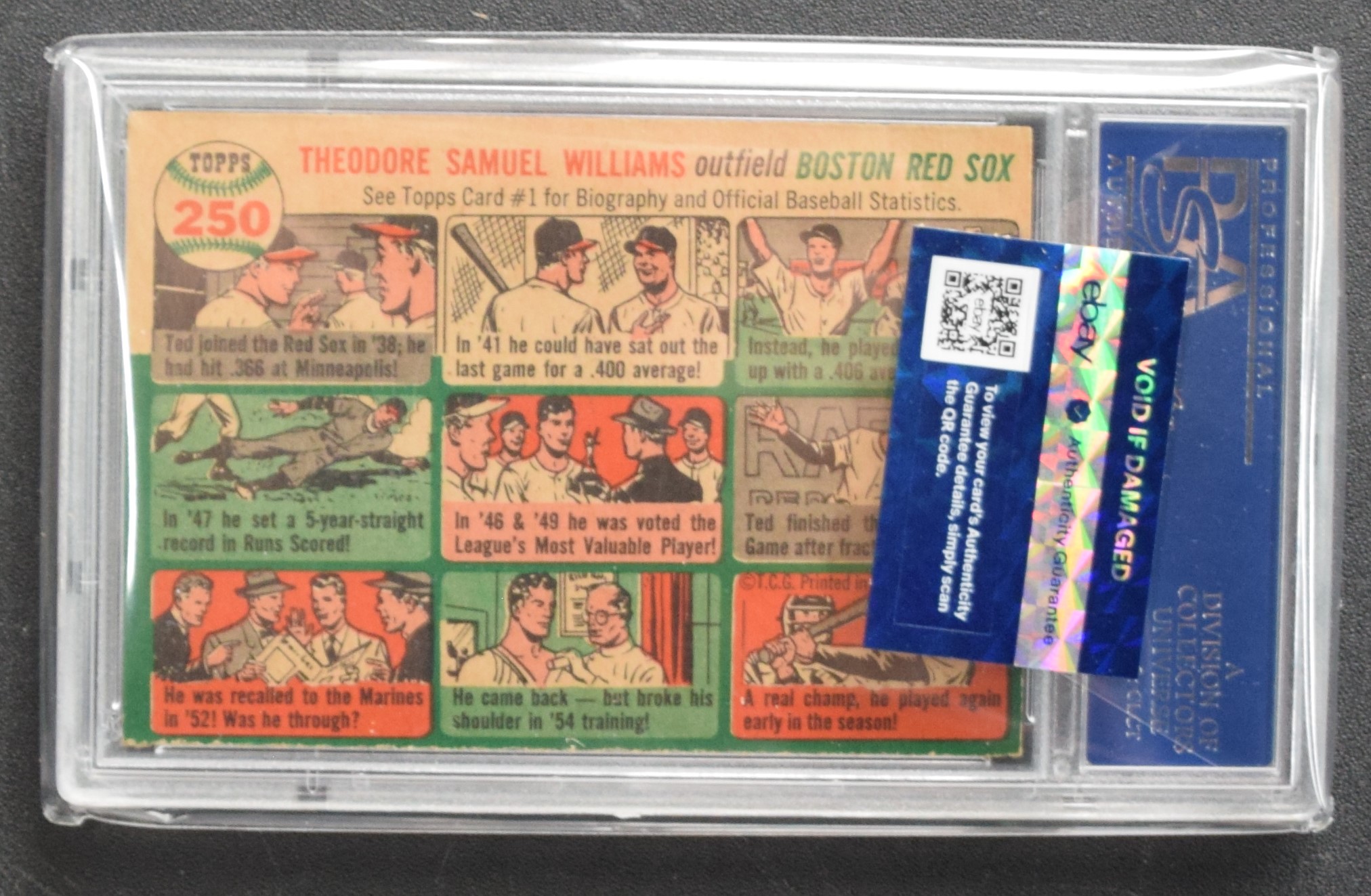 1954 Topps baseball card of Ted Williams, Boston Red Sox, #250, PSA graded 6