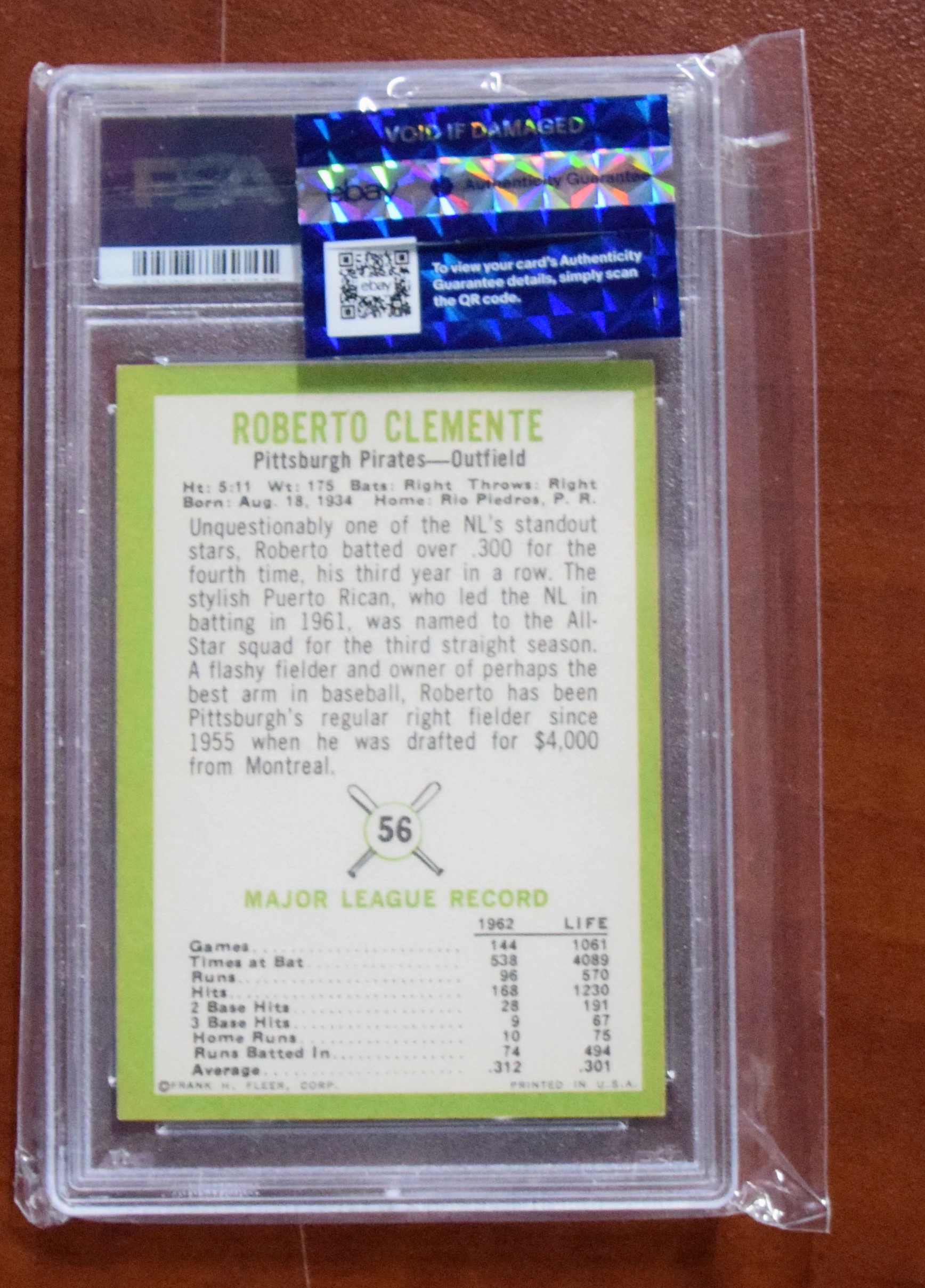 1963 Fleer Roberto Clemente of Pittsburg Pirates, Card # 56, PSA graded 7