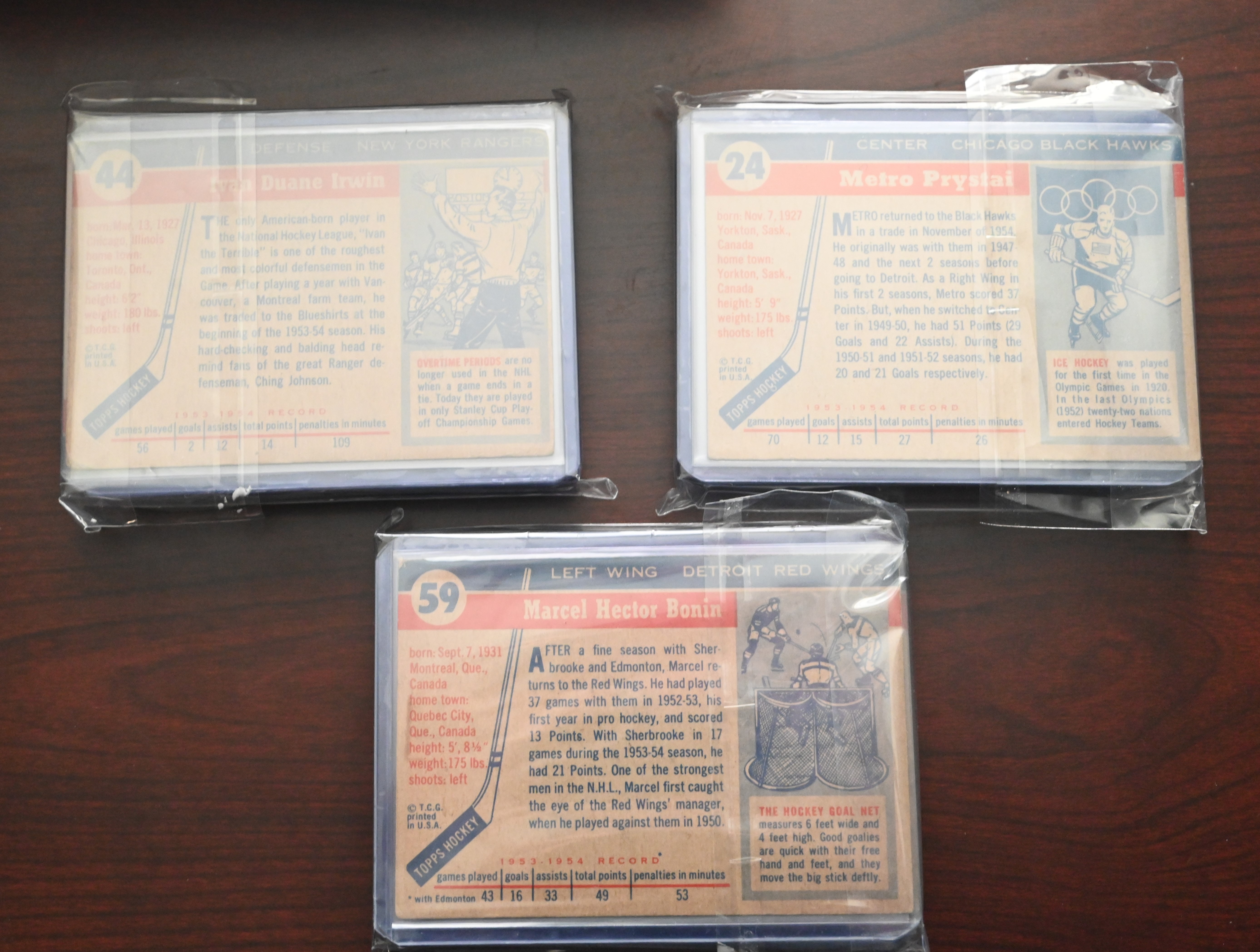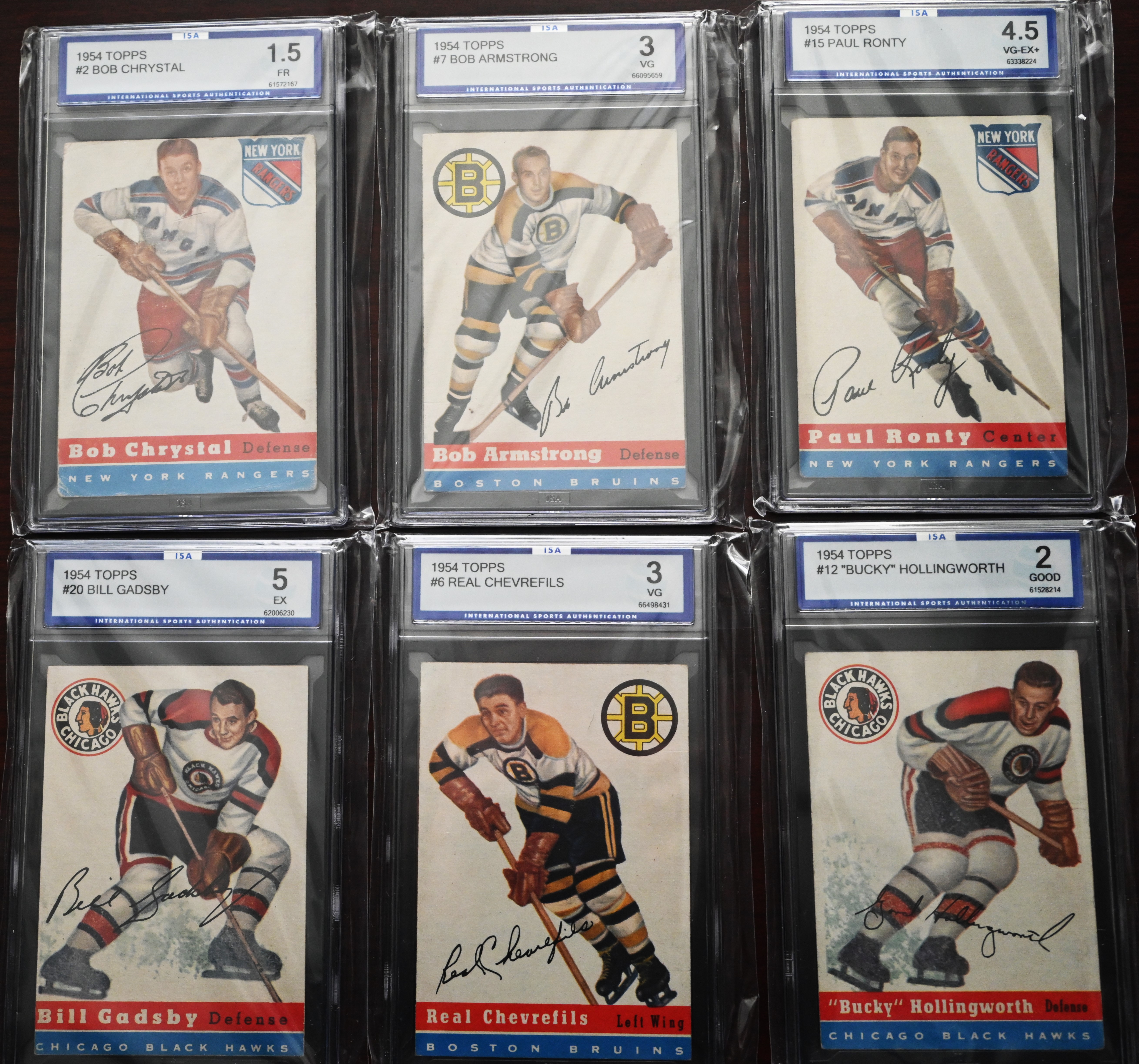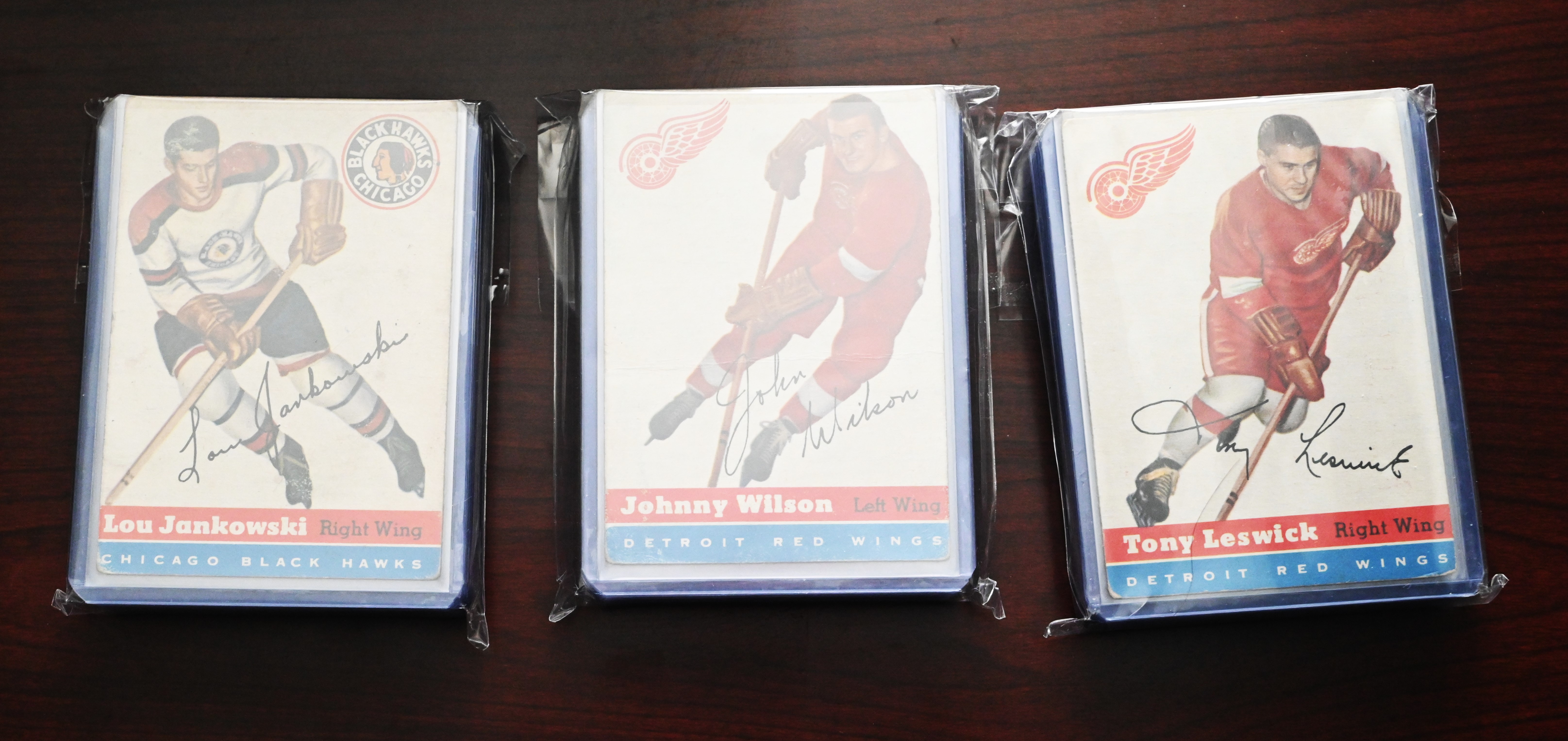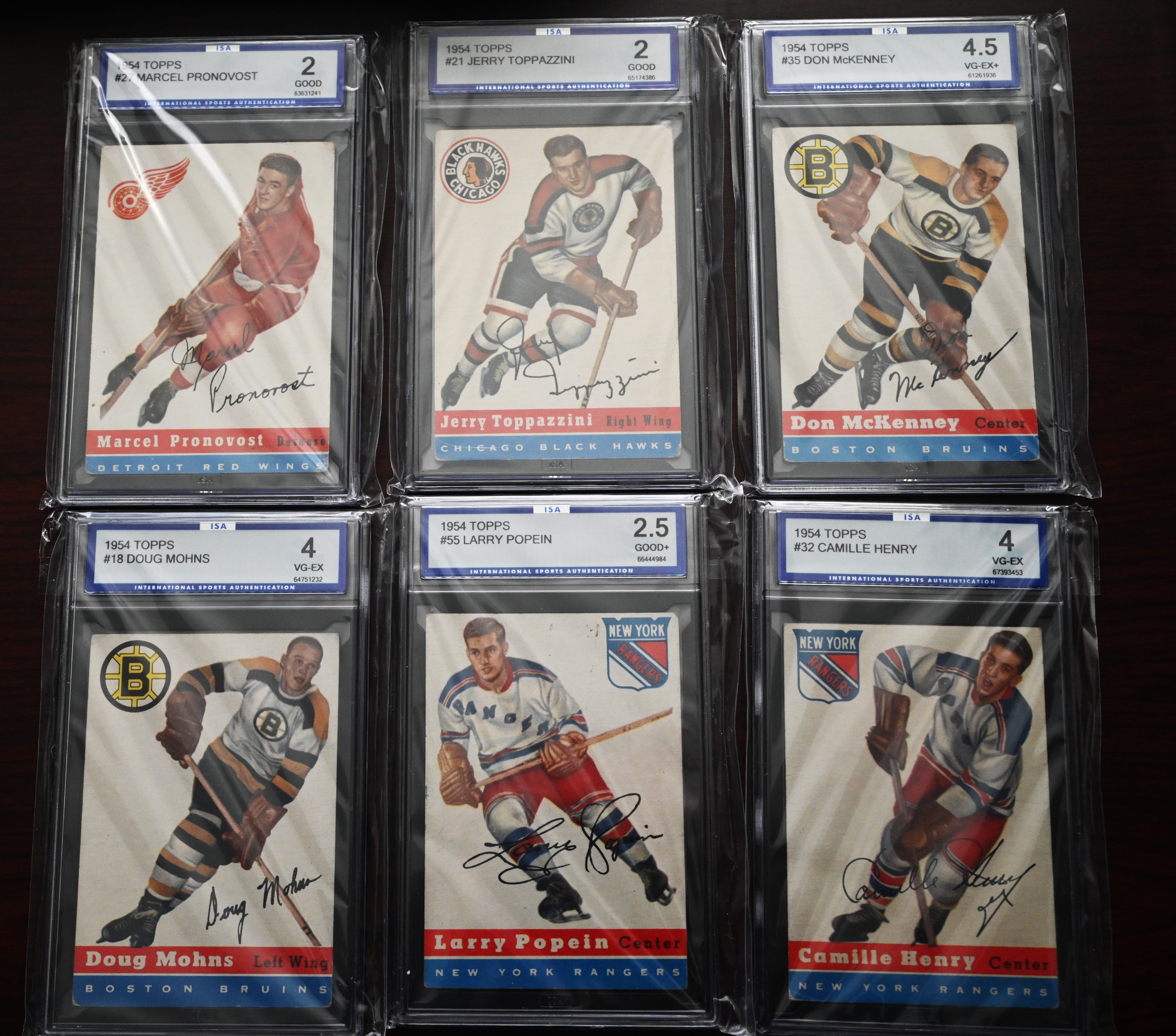 Rare complete set of 1954 Topps Hockey cards to include several Hall Of Famers including Gordie Howe, Terry Sawchuck, Alex Delvecchio, Red Kelly, Harry Howell, Gump Worsley, Ted Lindsey, Milt Schmidt and Dick Gamble. Half the cards are ISA graded and half are in unopen packages which may be in excellent condition.