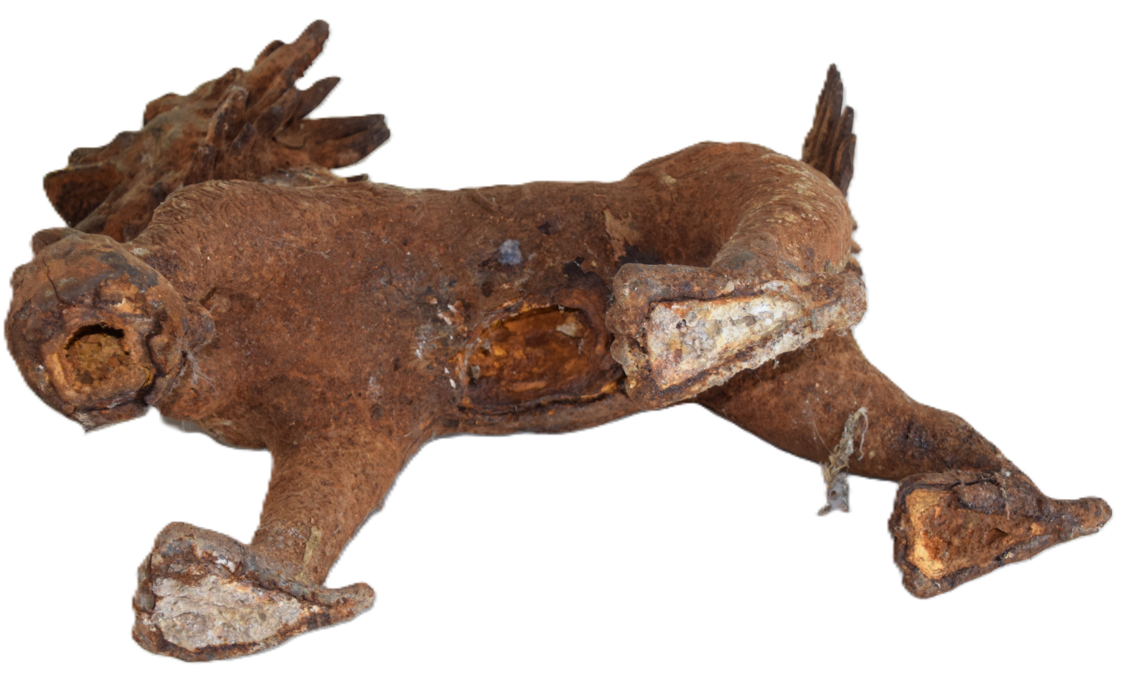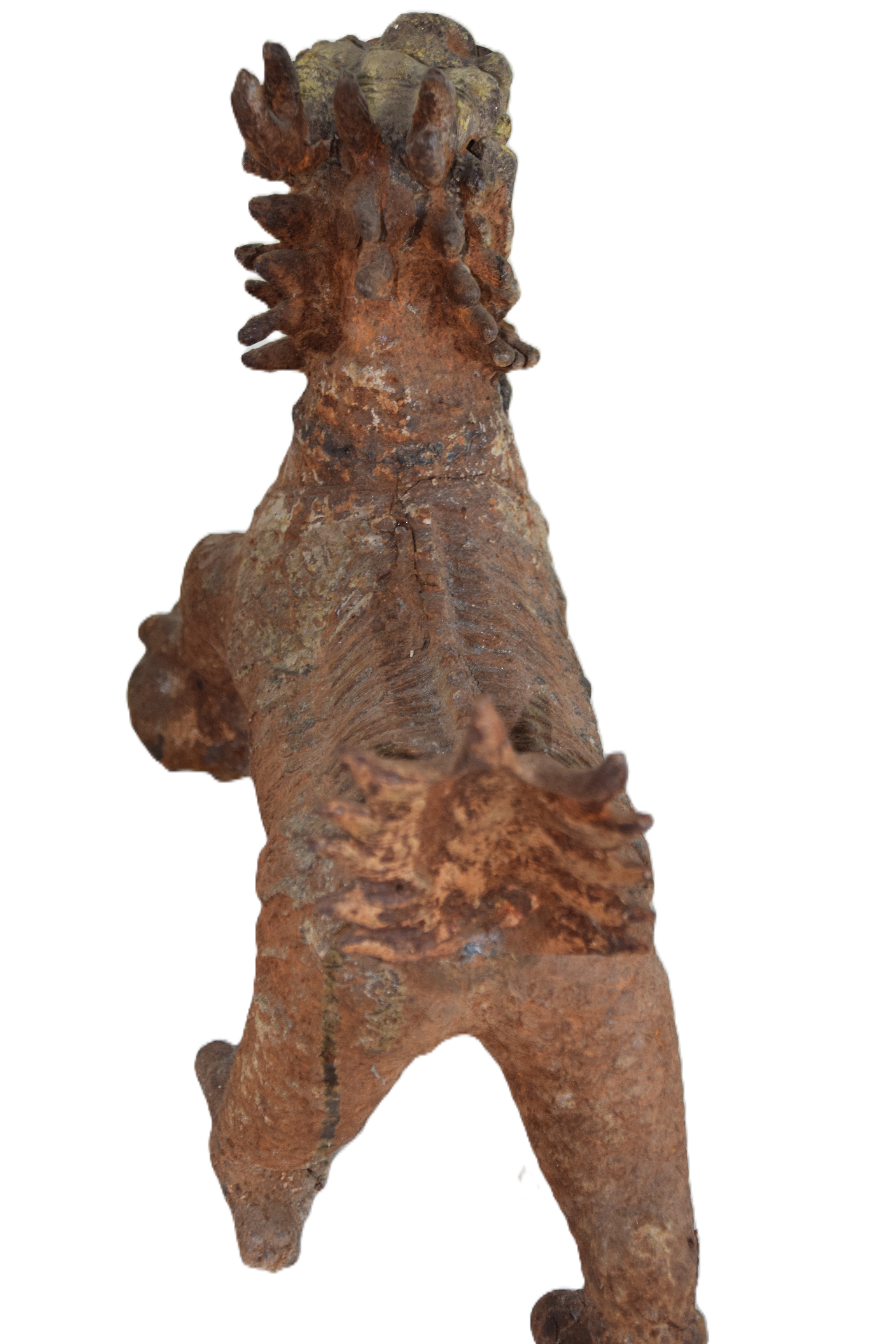 Pair of 18th-19th century Chinese/Tibetan temple guardian lions, cast iron. Dimensions: 17″ L