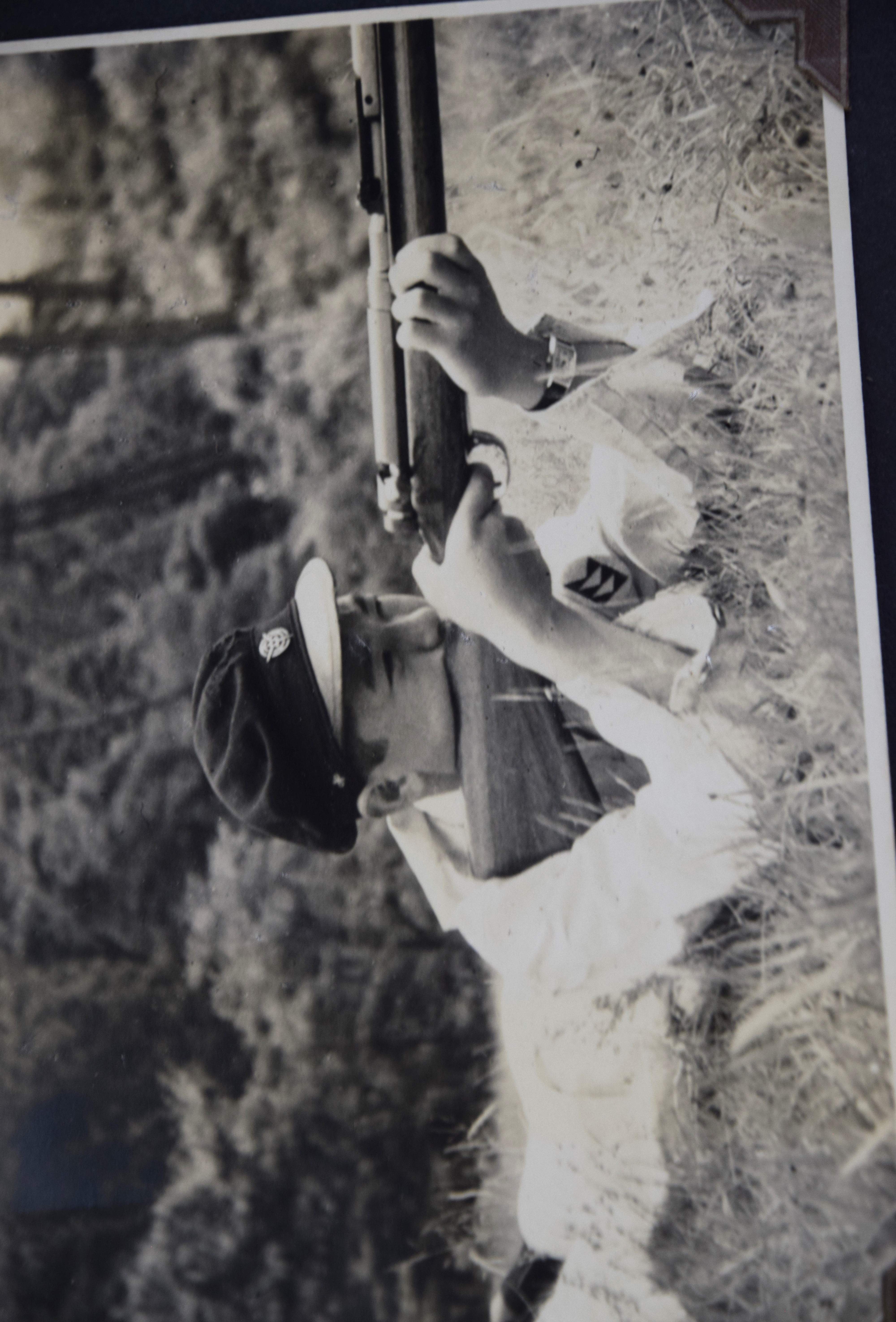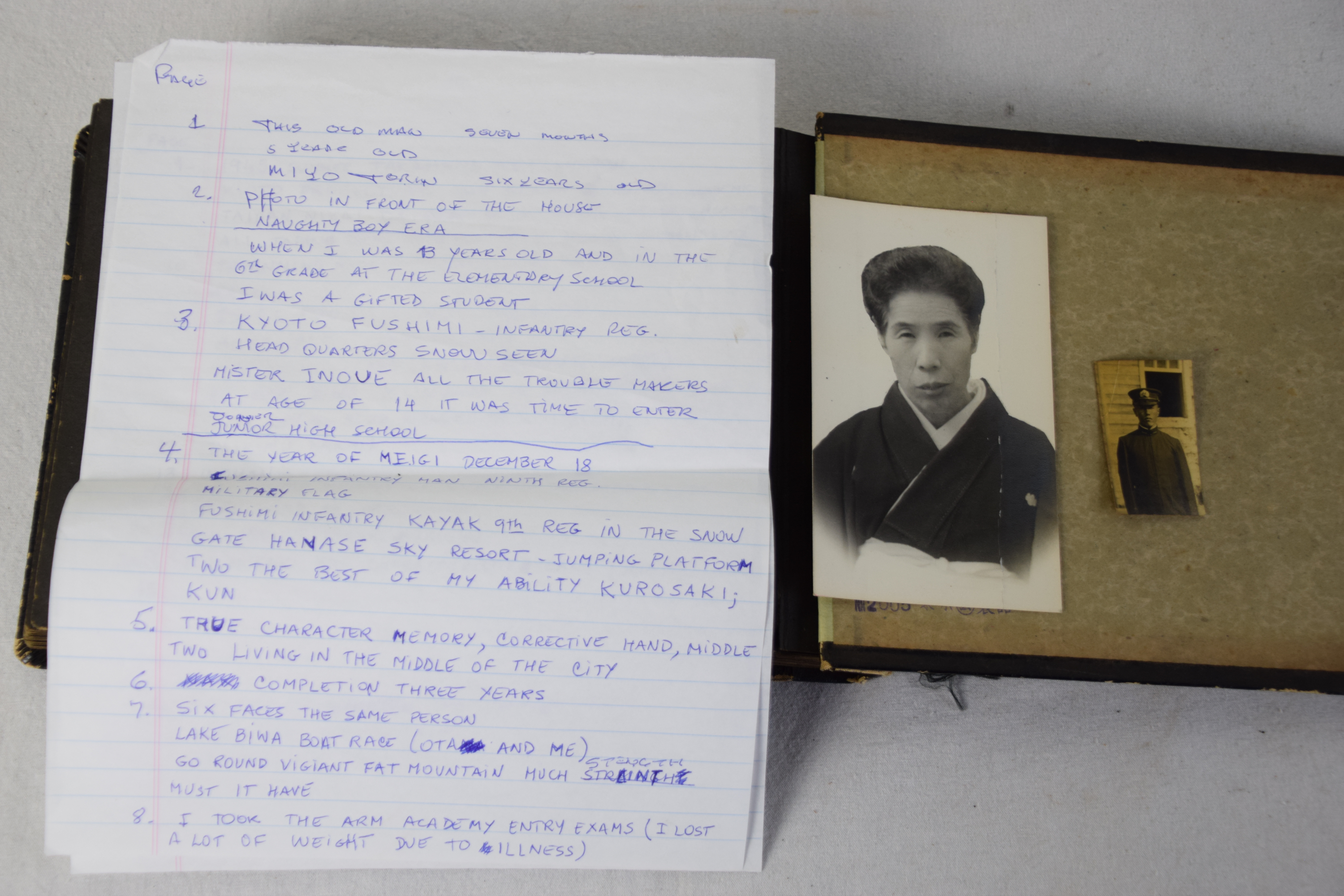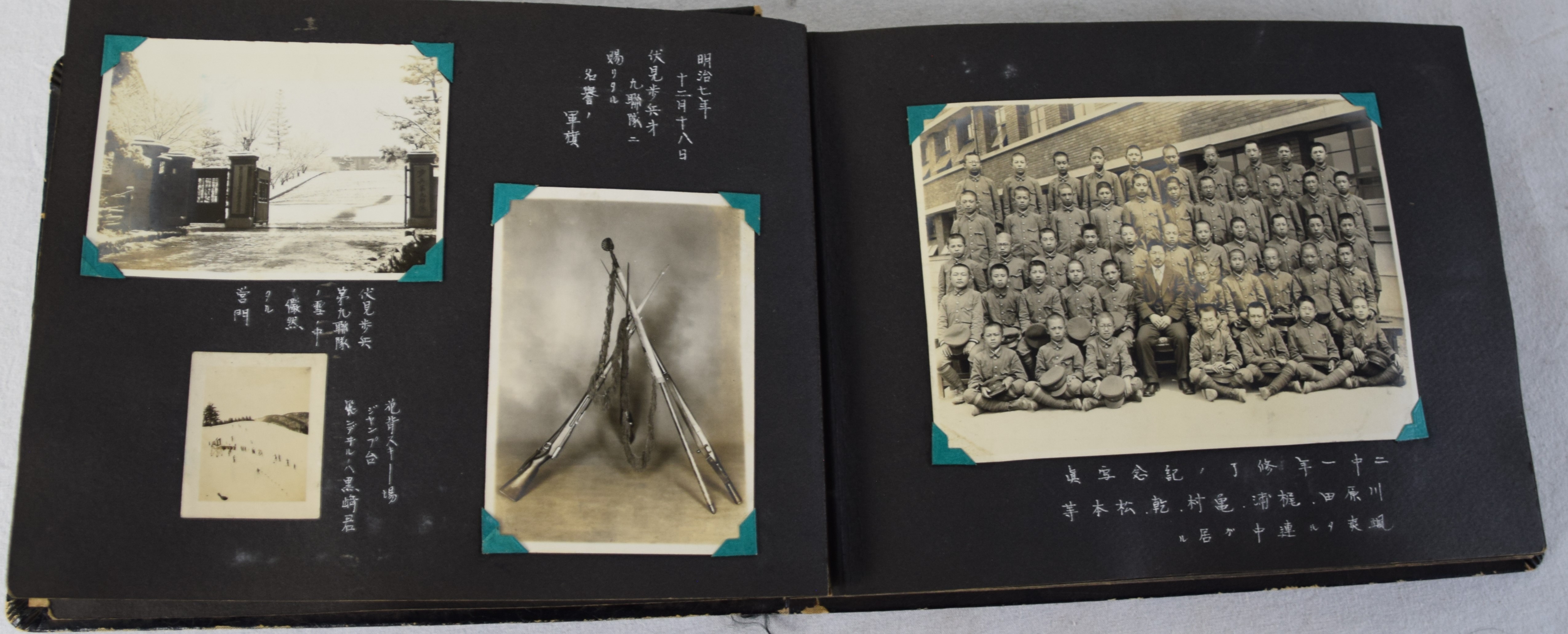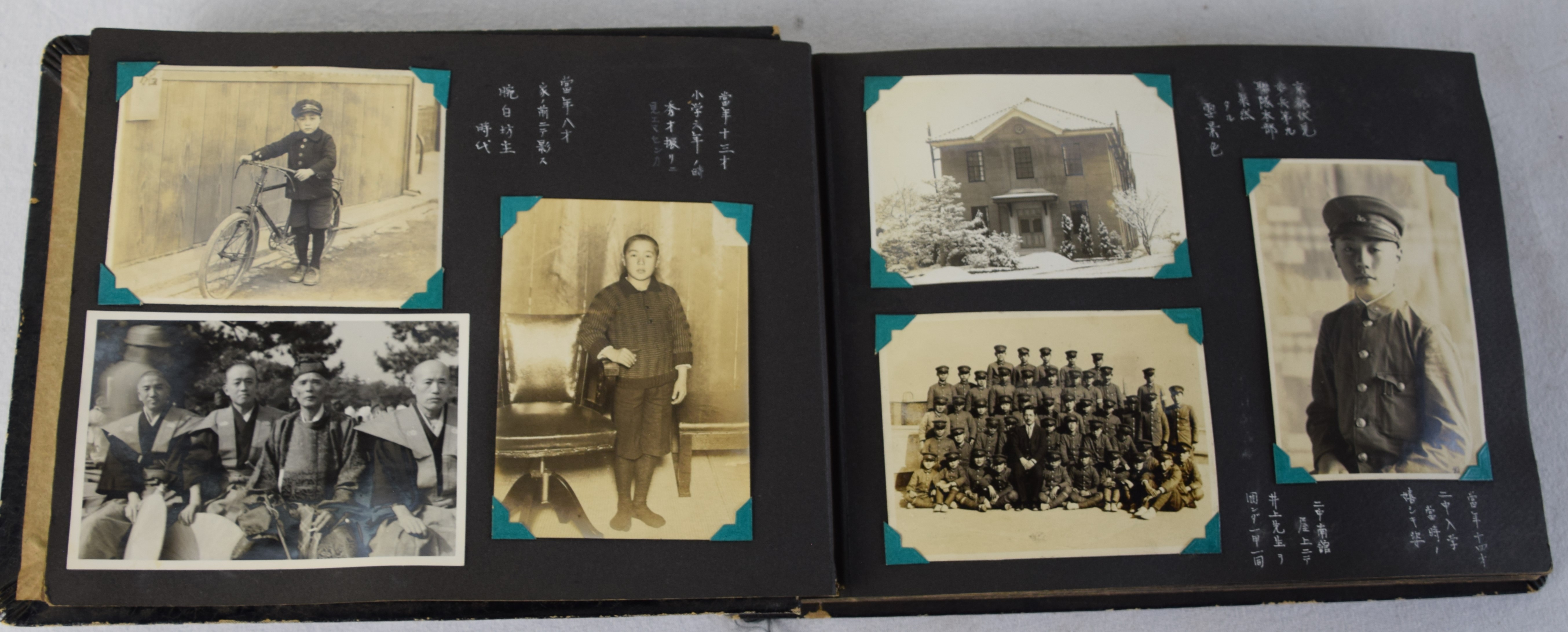 Photo album of 40 pages showing the life of a Kamikaze pilot from youth to military school to pilot training. Also included is a tanto sword with leather and wood scabbard, a highly regarded as one of the most respected samurai weapons used in history owned by the Kamikaze pilot. Dimensions: 10″ Blade, 17″ Overall