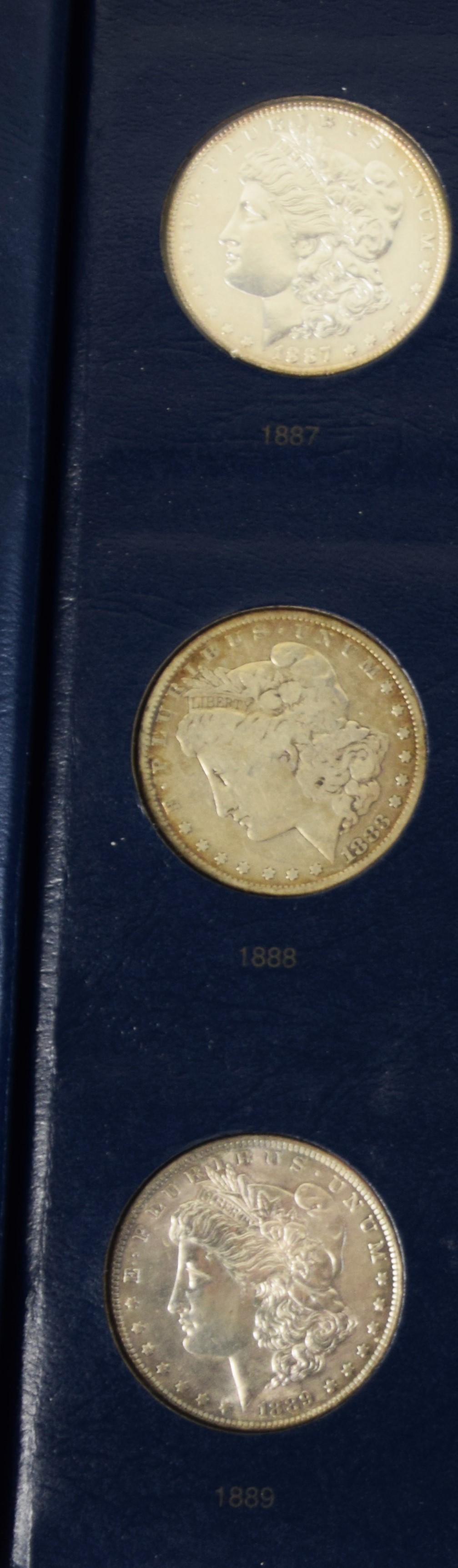 A collection of 16 Morgan Silver Dollars to include- 1879,1880,1882,1884,1886 (2), 1887,1888,1889,1890CC, 1899, 1900,1901D, 1921, 1921D