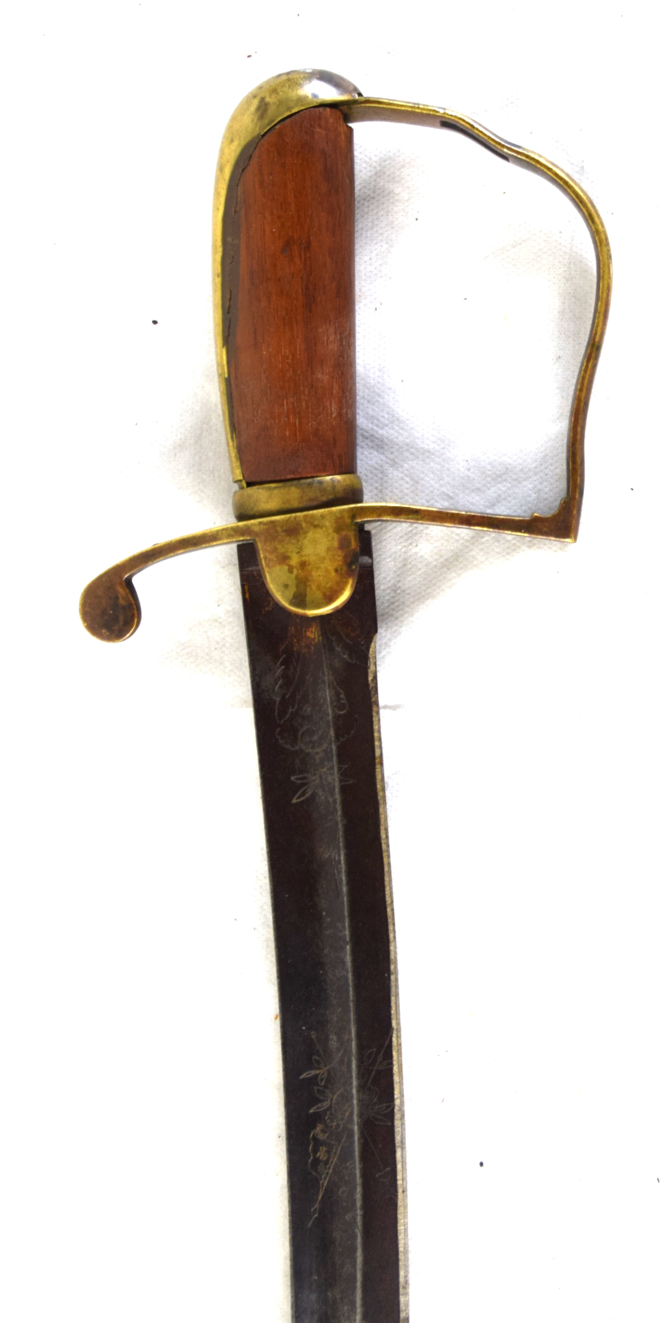 Mounted infantry officer American saber with wooden grip, bird’s head pommel with floral designs on blade