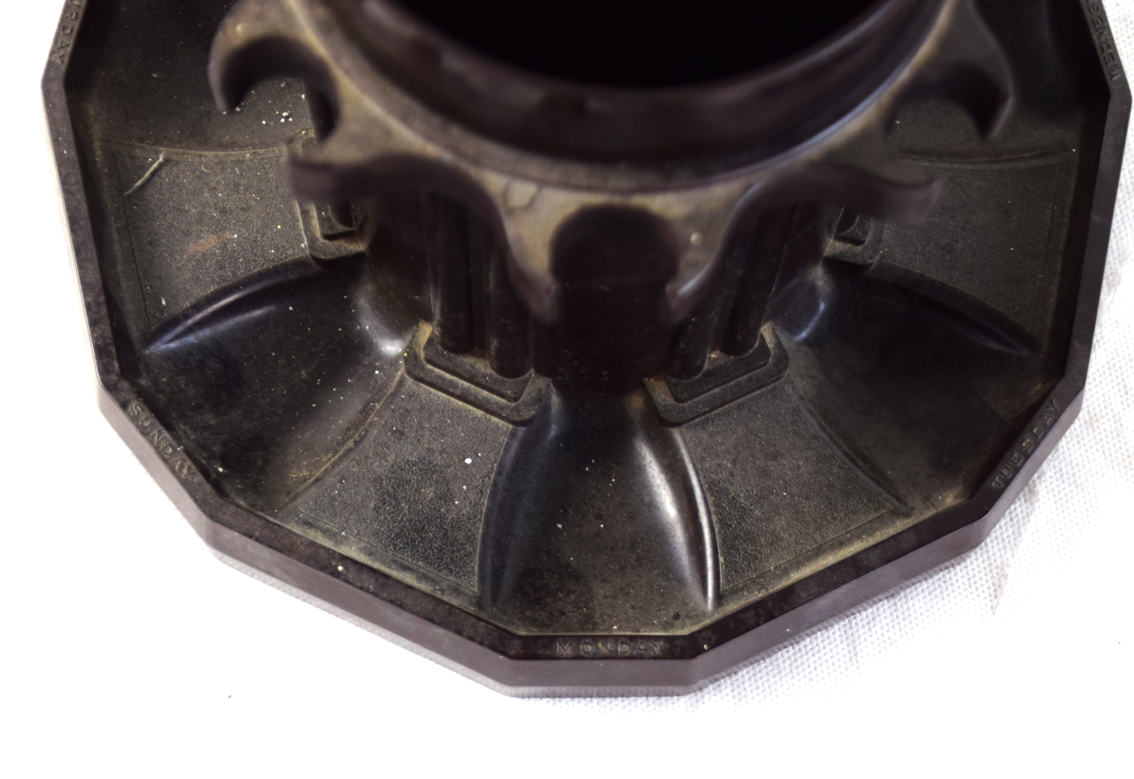 Rare Colt humidor/pipe rack, using “Genuine Colt Rock” or Bakelite, holding seven pipes, labeled “The Pipe Ador” with a pipe for every day of the week (days marked on base).