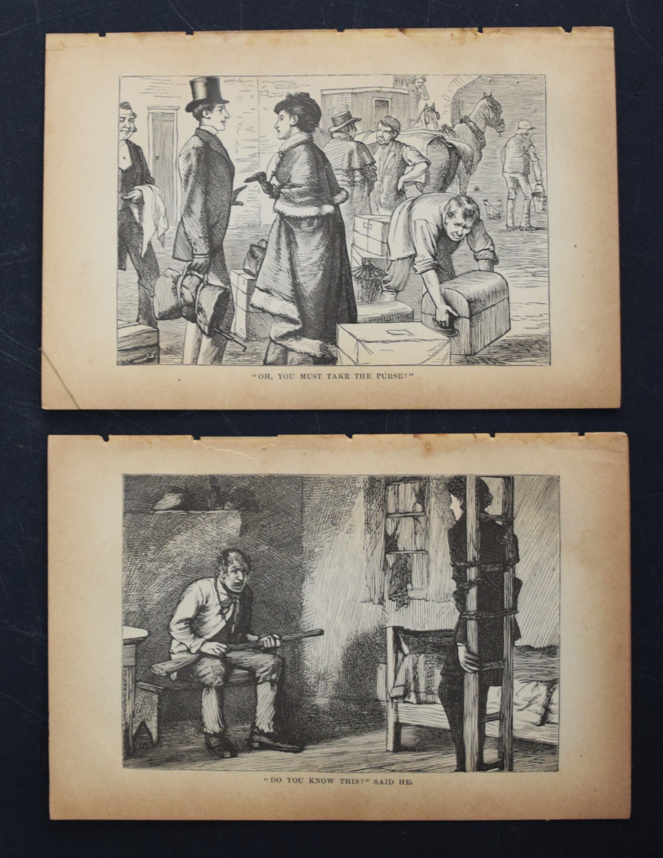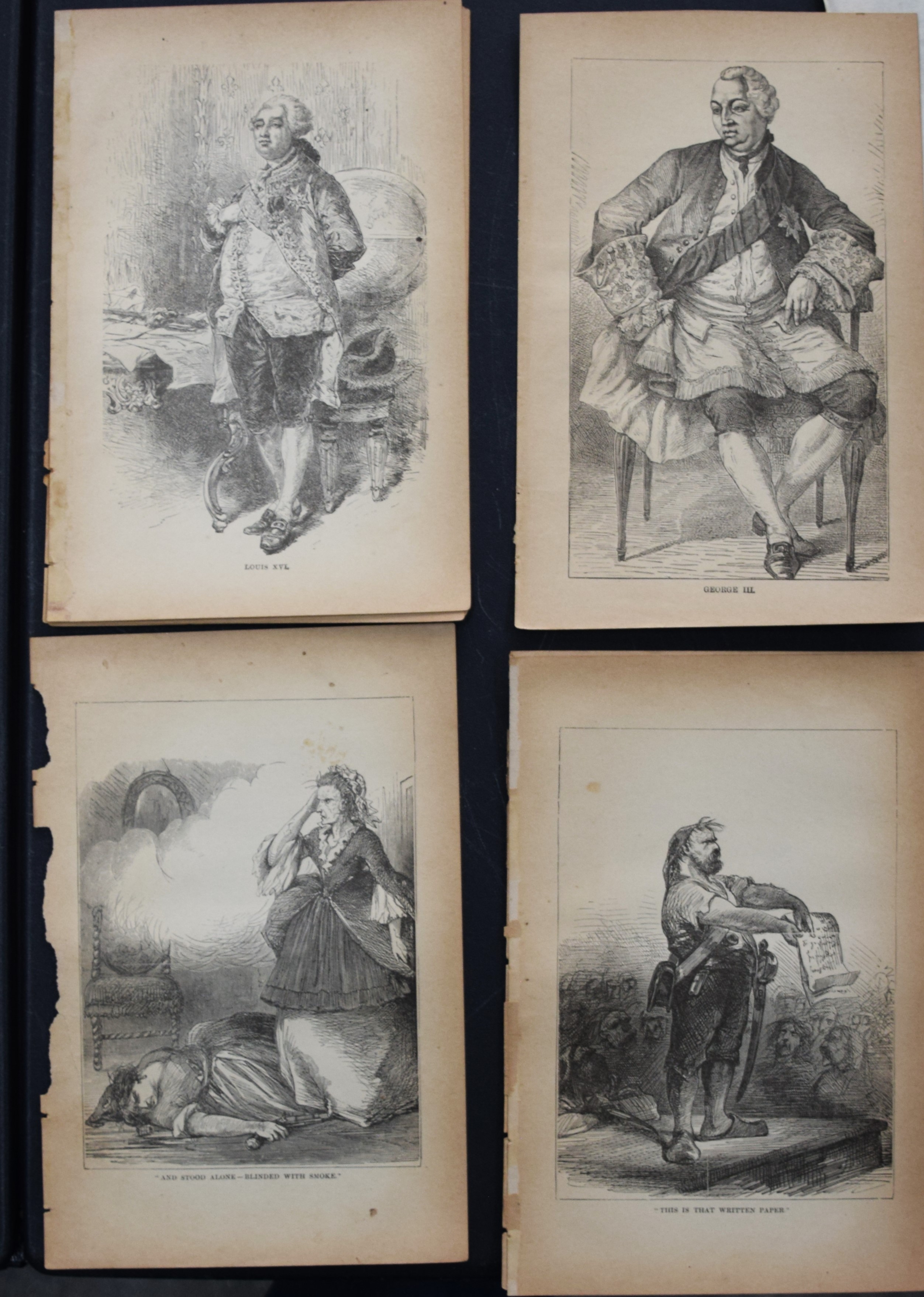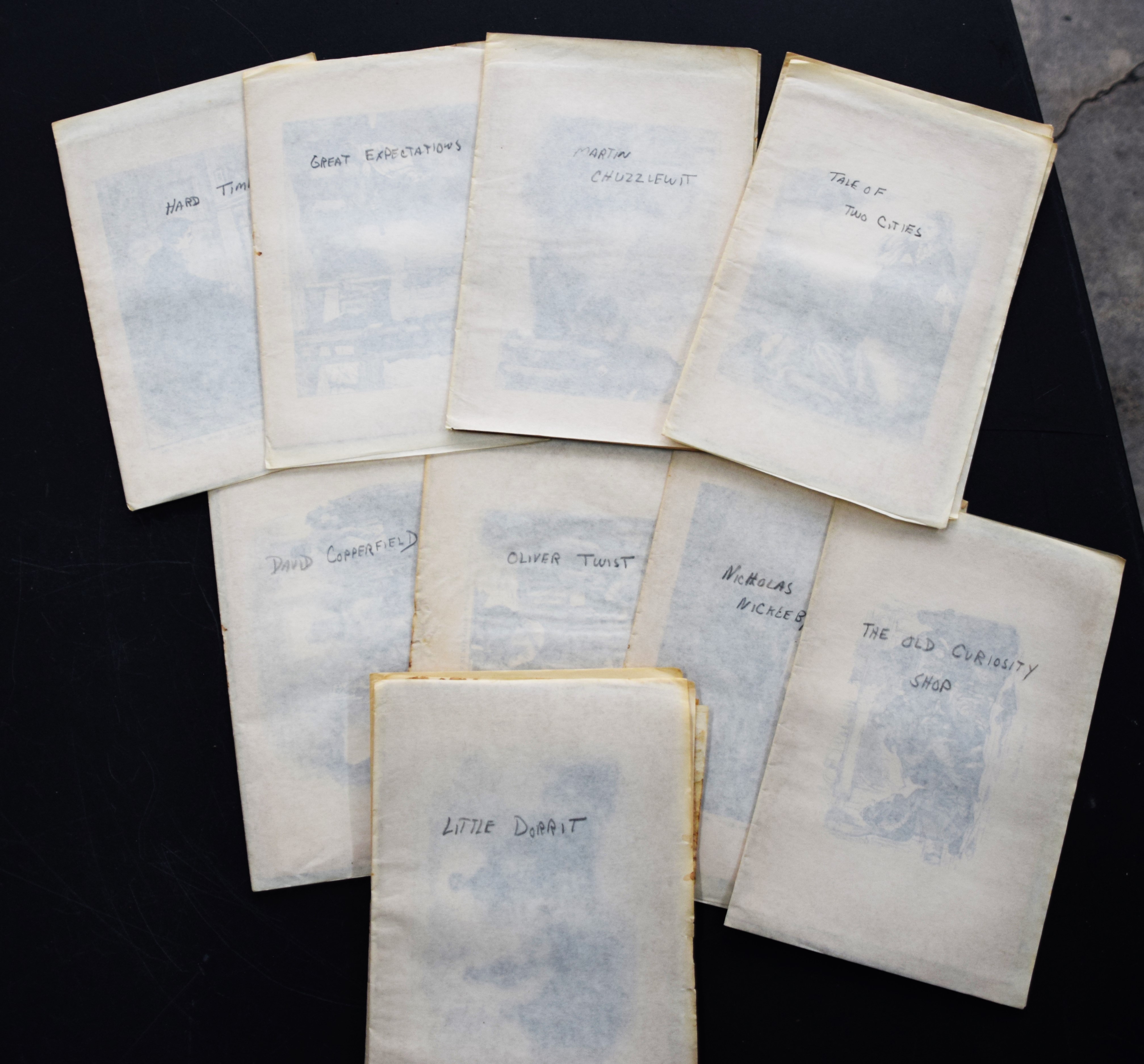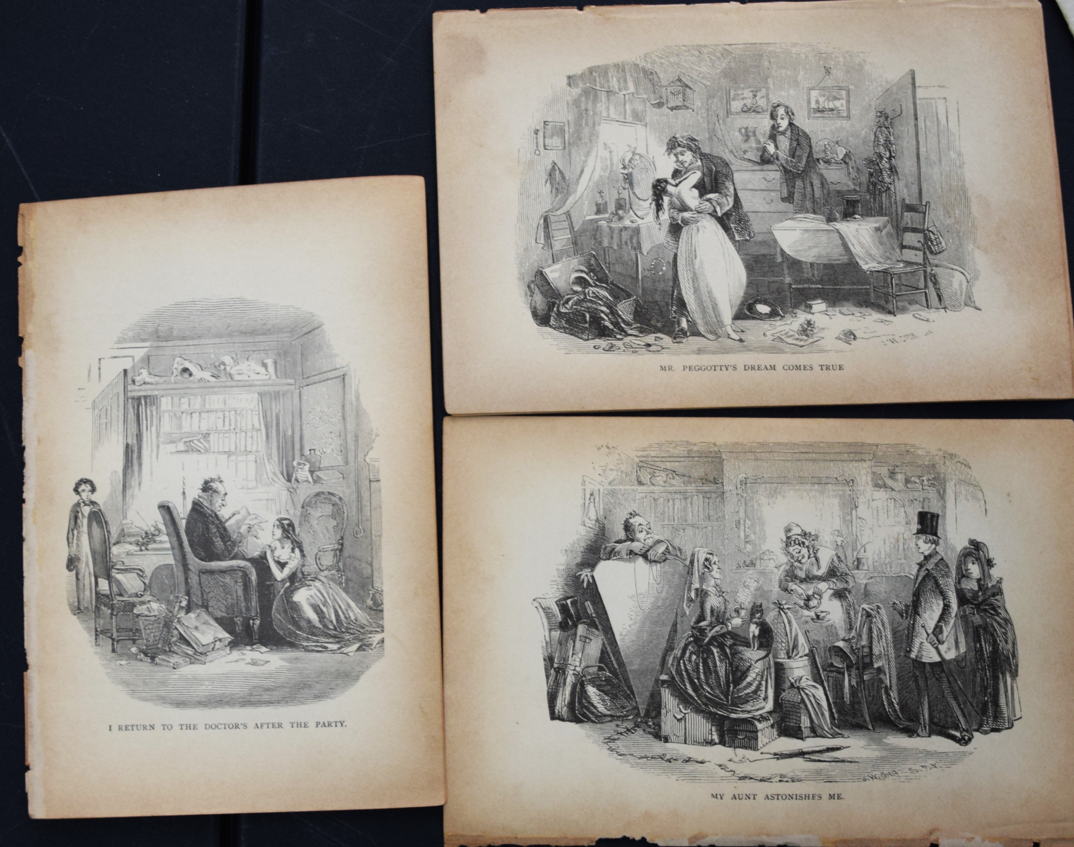 Approximately 100 engravings from Dickens works to include David Copperfield, Oliver Twist, Little Dorrit, Tale of Two Cities, Martin Chuzzlewit, Great Expectations and 8 more. Dimensions: 4.5″ x 7″