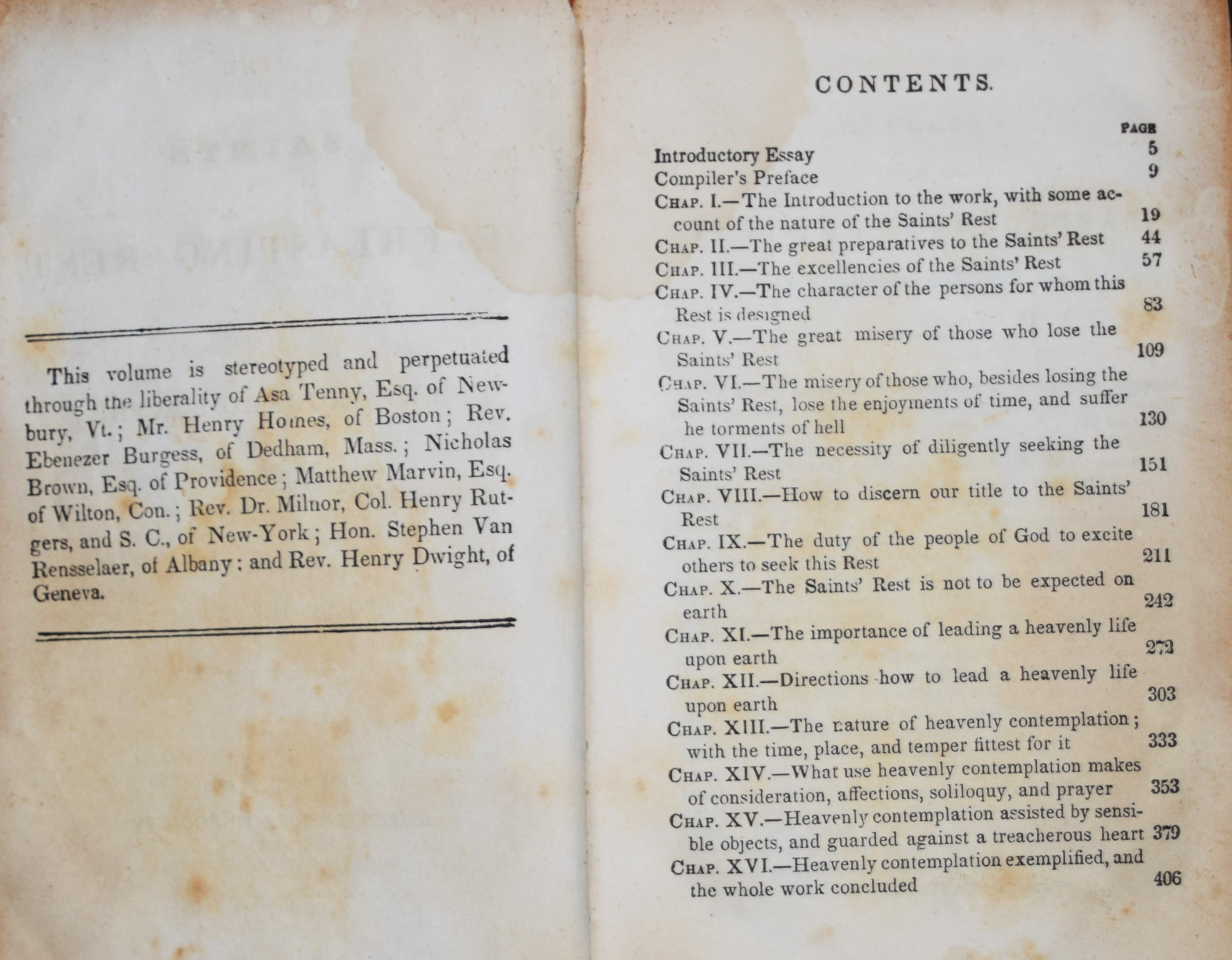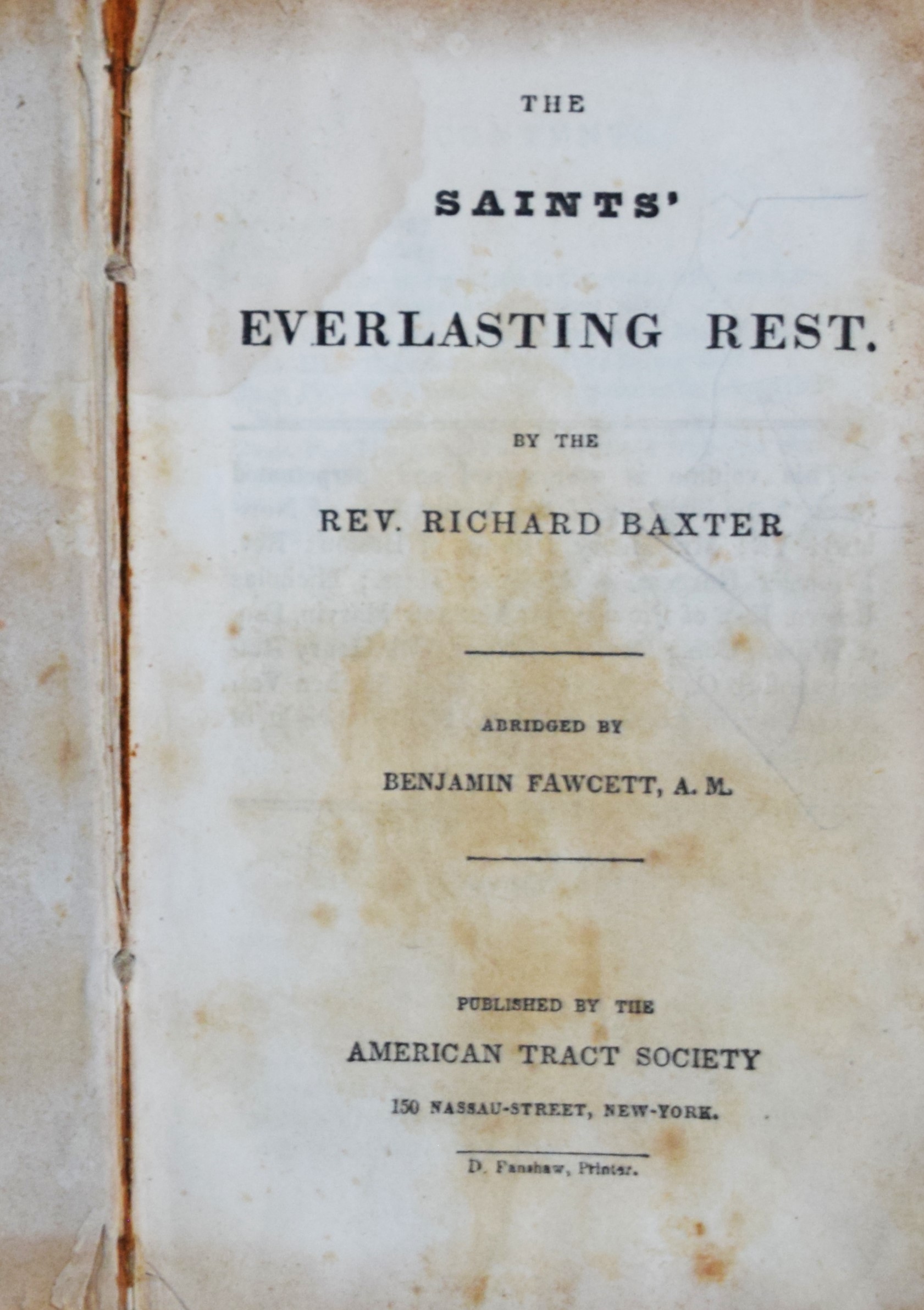 The Saint’s Everlasting Rest by the Rev. Richard Baxter (1615-1691), abridged by Benjamin Fawcett. Published by the American Tract Society, early edition circa 1824. 445 pages, leather bound