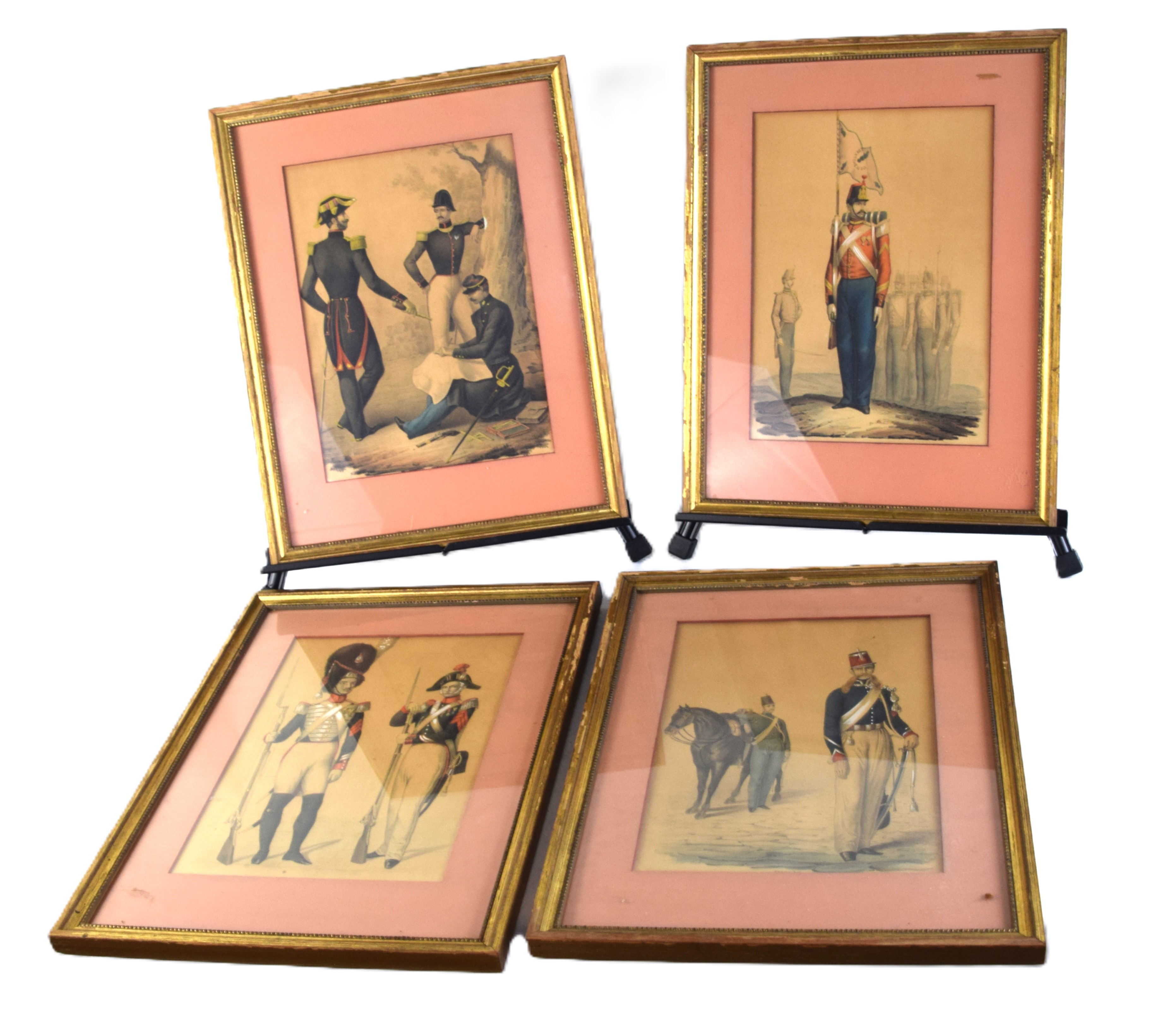 Nicely framed four military prints of European soldiers of the Napoleonic period. Dimensions: 11′ x 8″