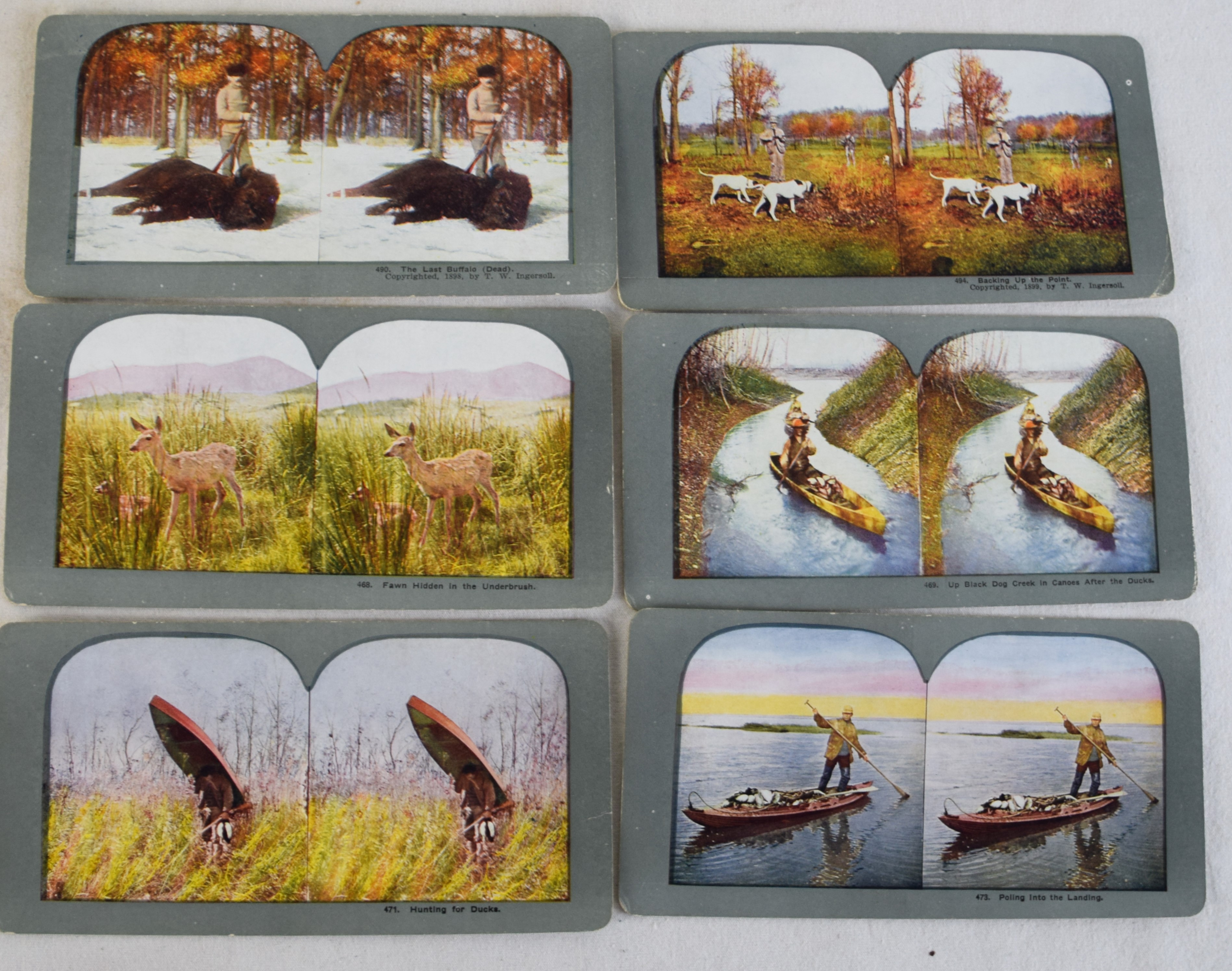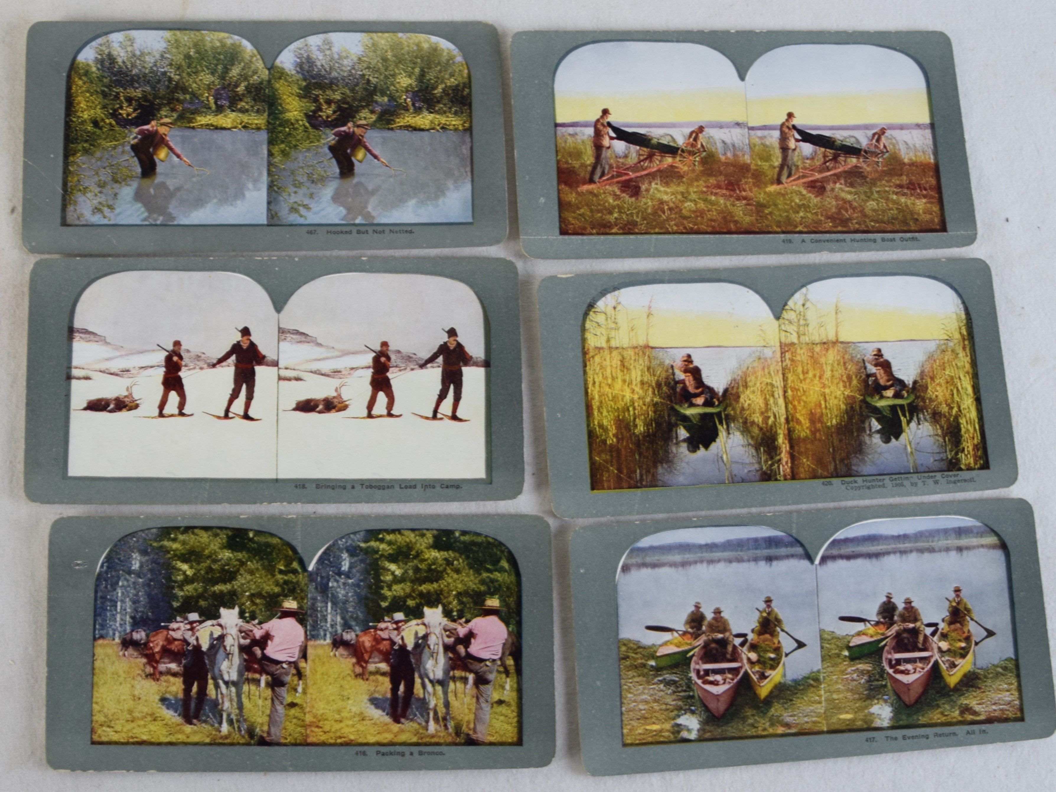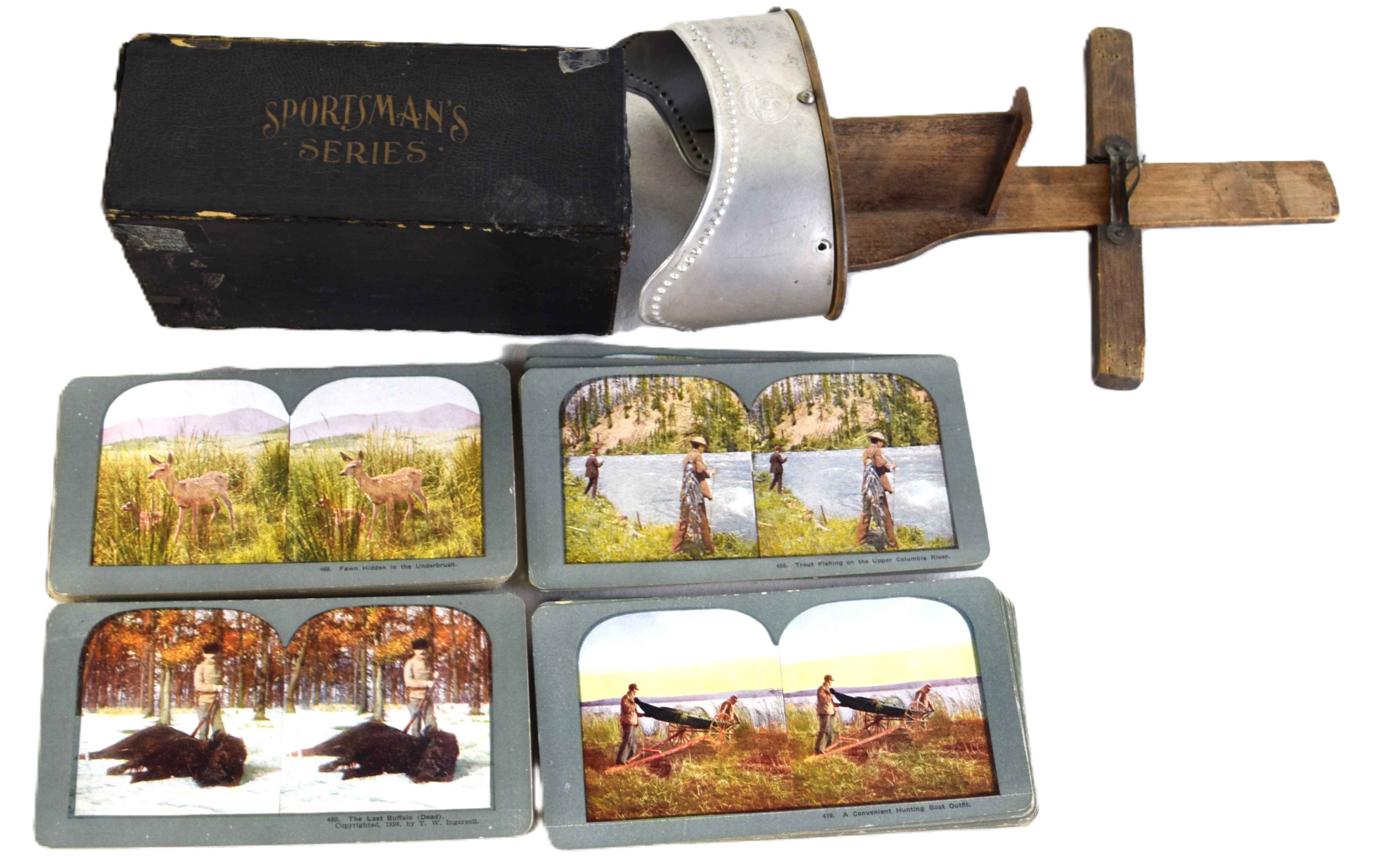 Approximately 80 Sportsmen steroviews of colored hunting and fishing scenes with original box.