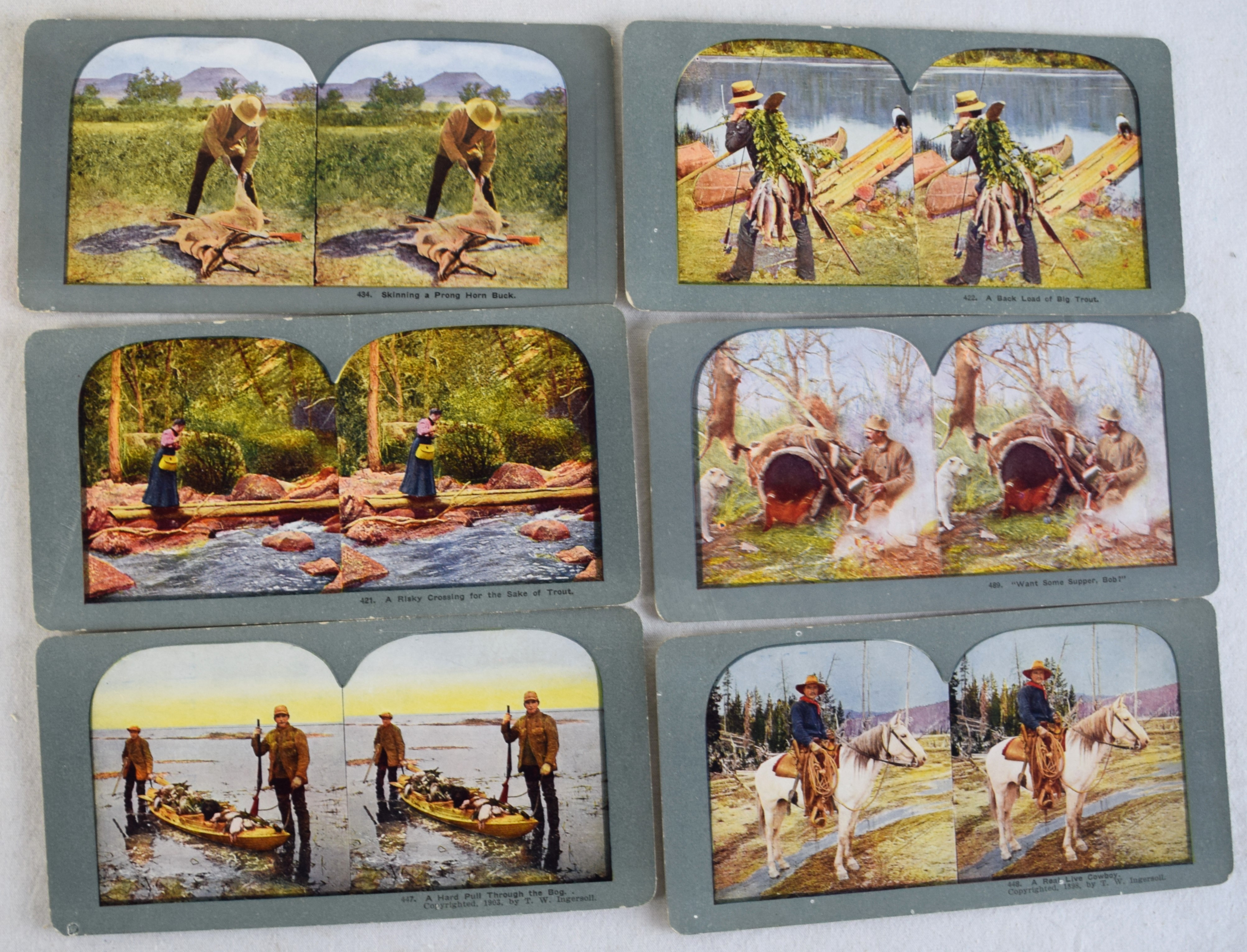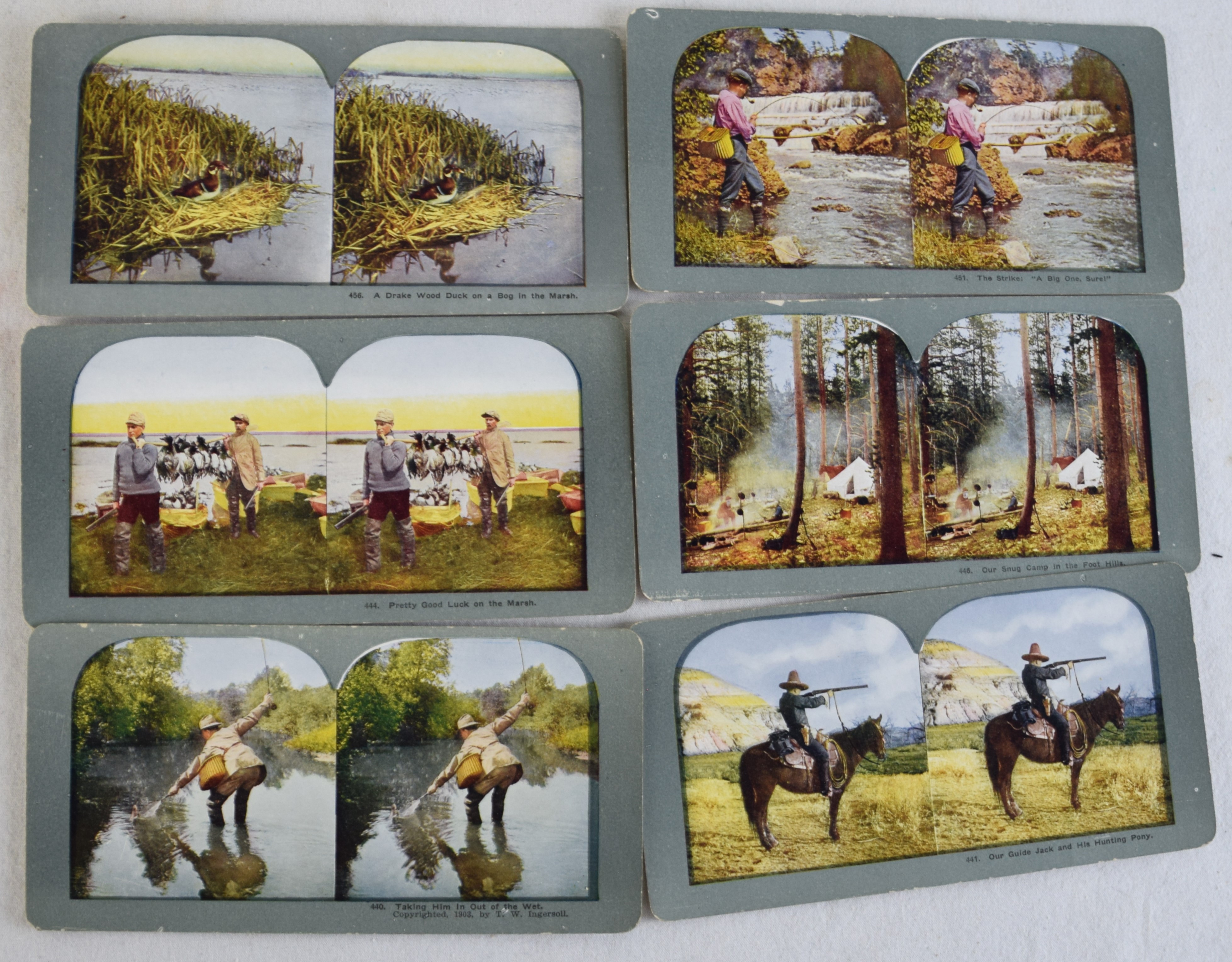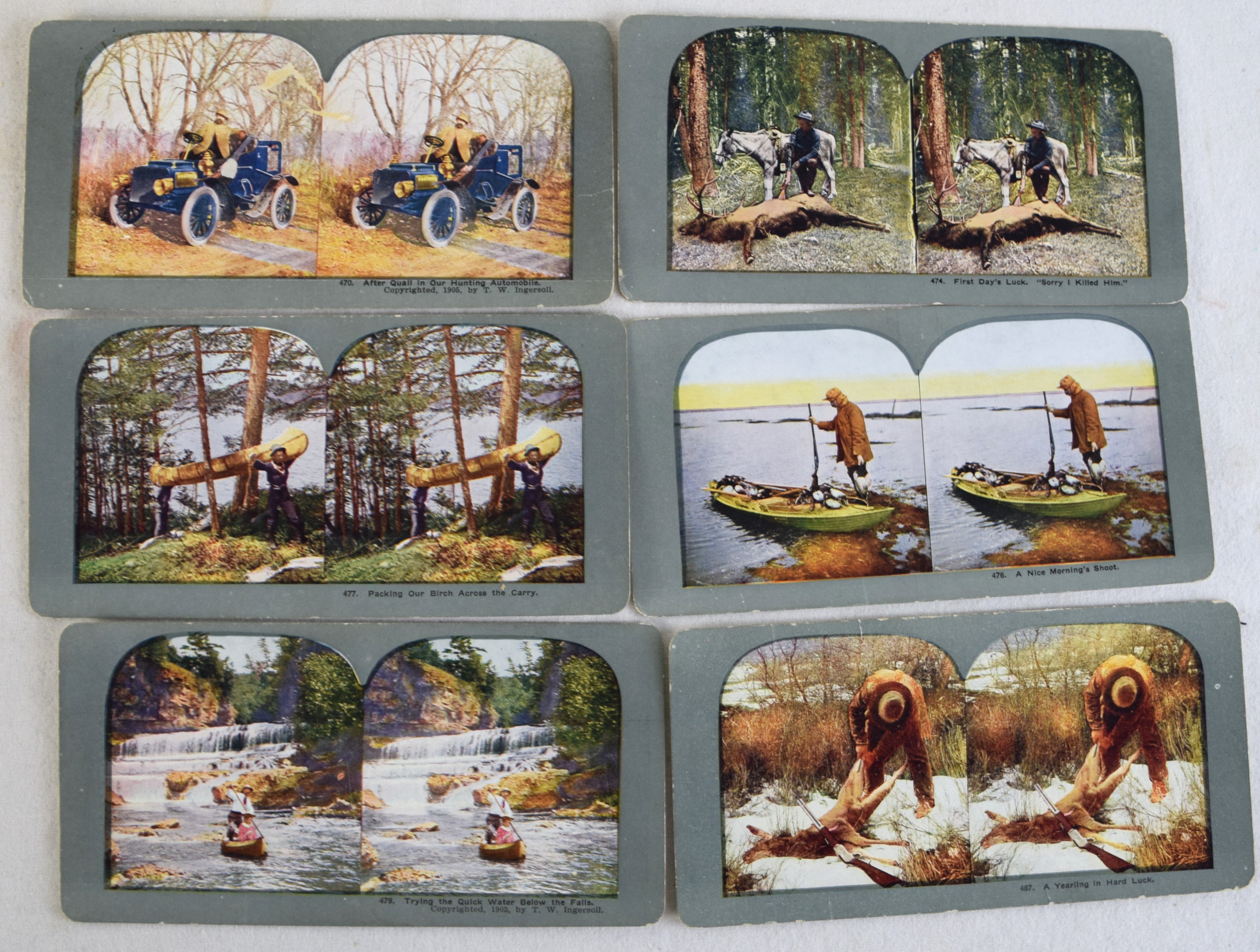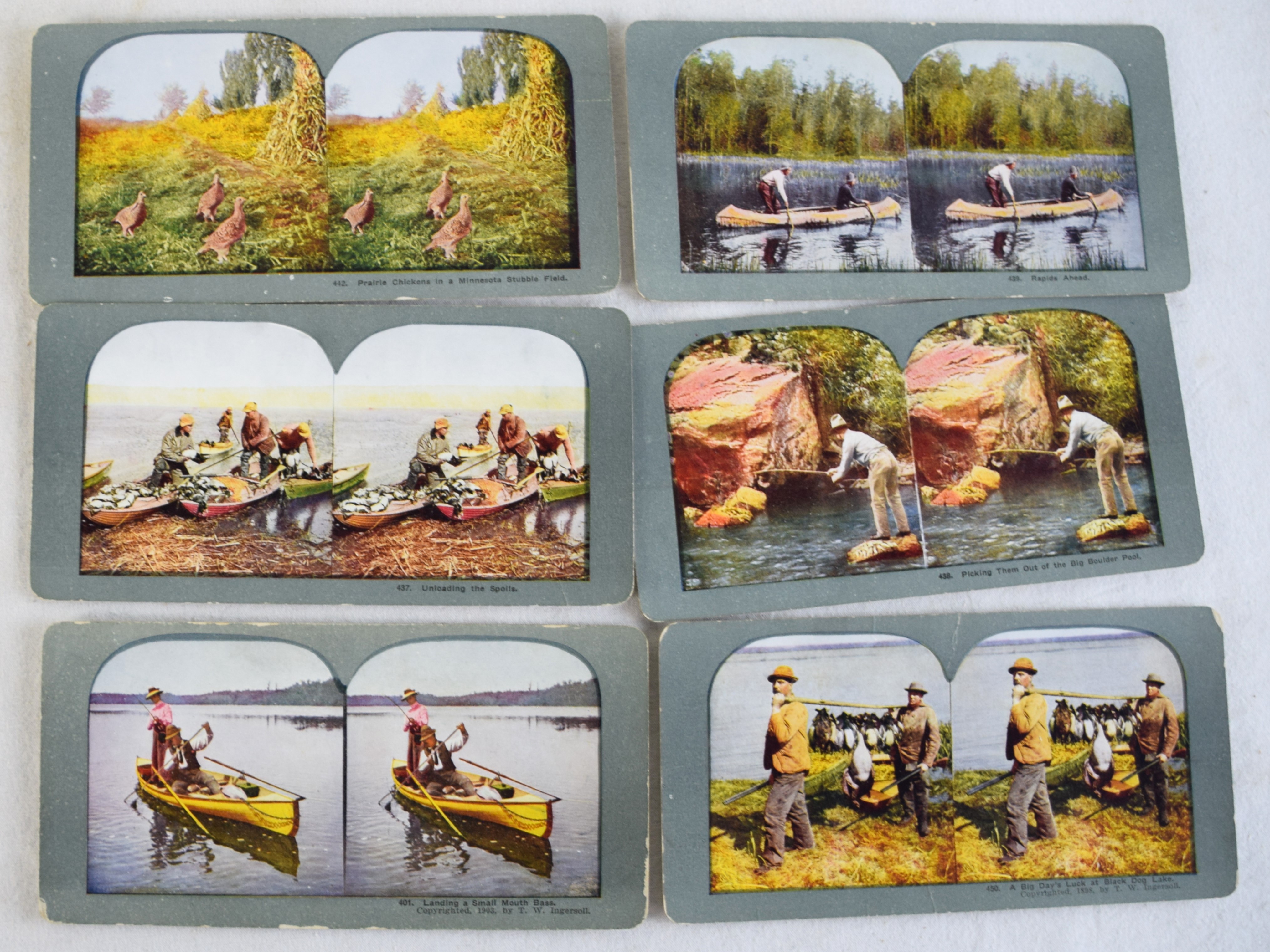 Approximately 80 Sportsmen steroviews of colored hunting and fishing scenes with original box.