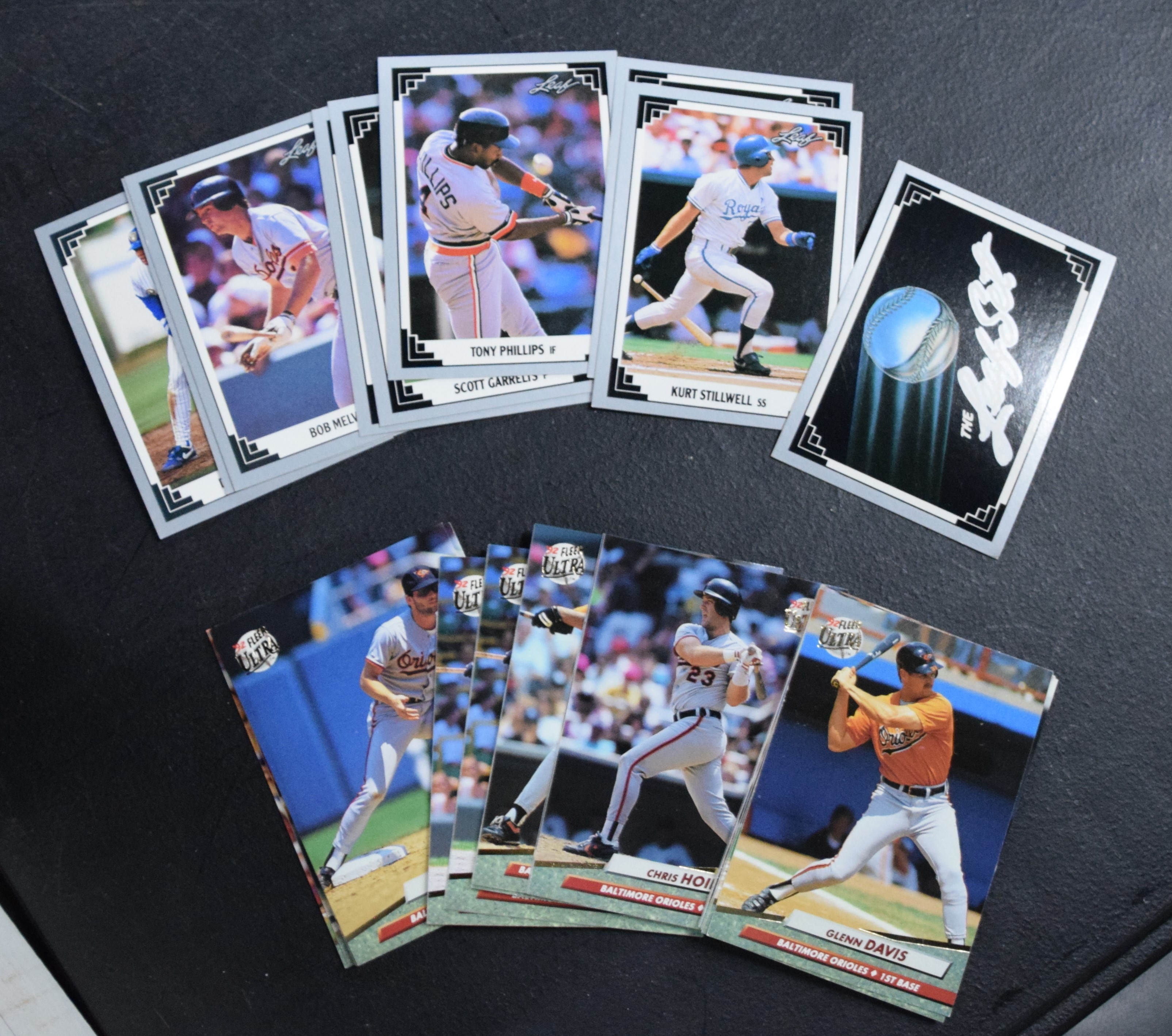 Four boxes of baseball cards to include 1991 Leaf card set, 1991 Leaf Studio card set, 1992 Fleer Ultra card set