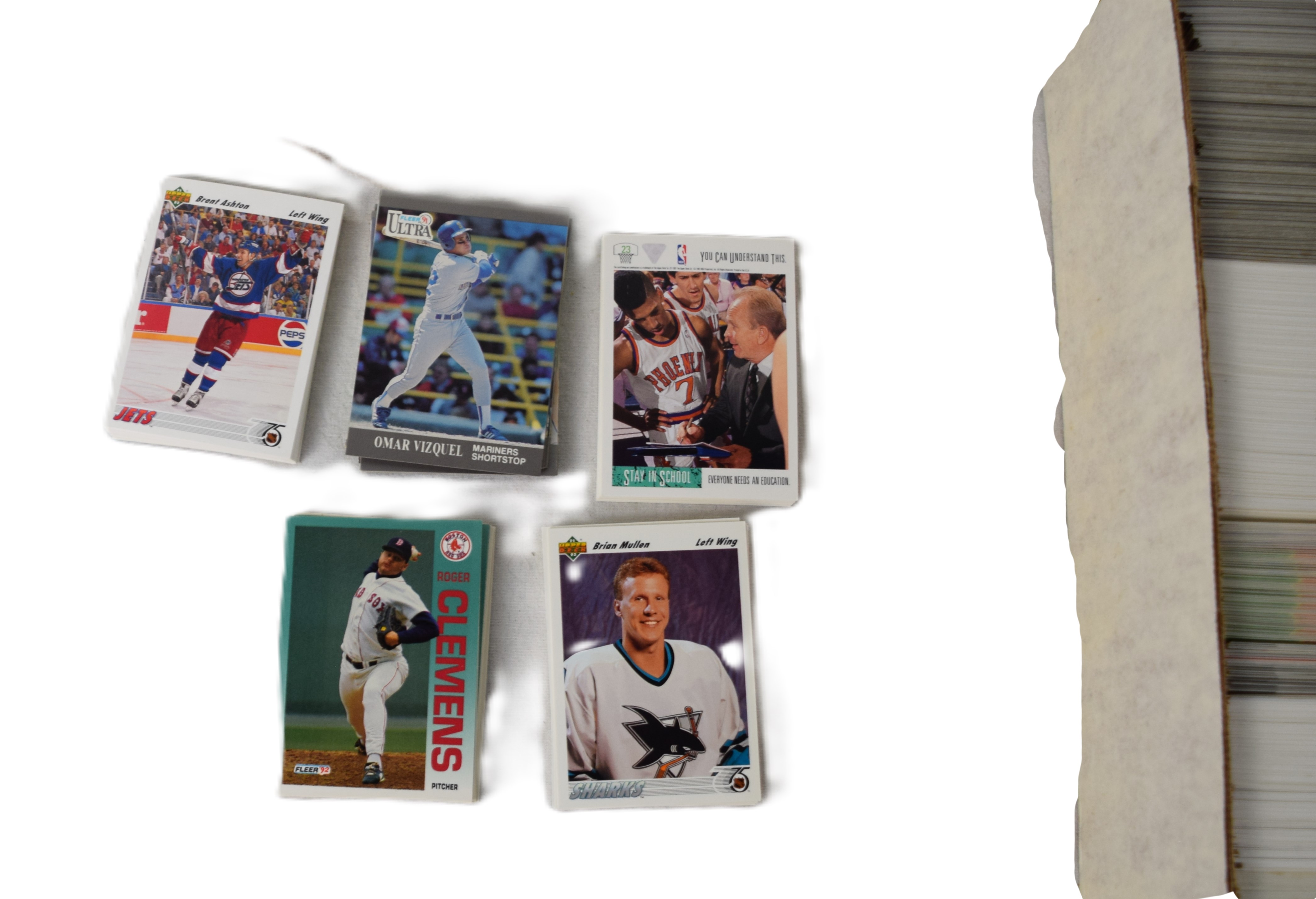 Perhaps a thousand multi-sport cards in sets-football, baseball, basketball