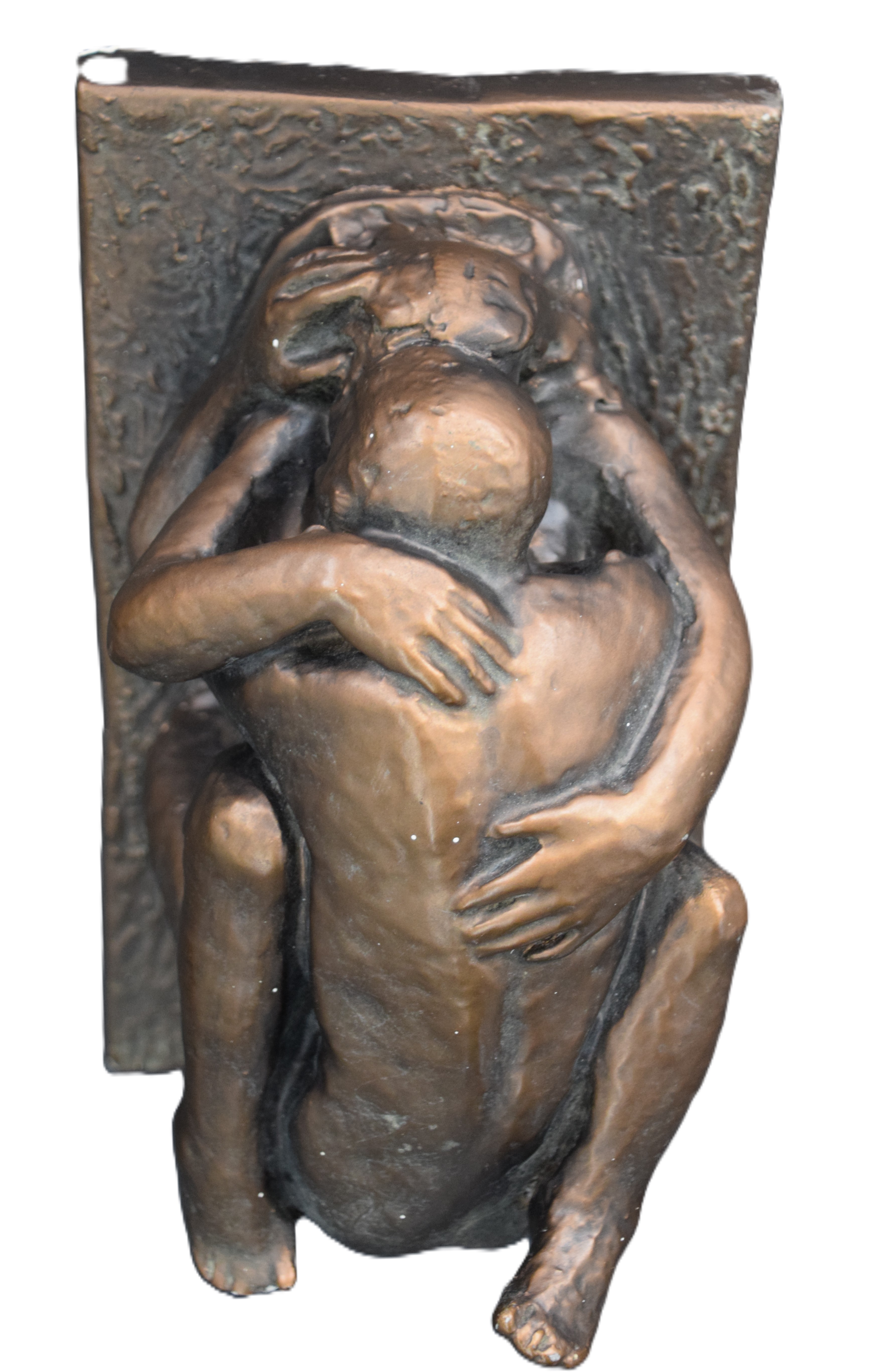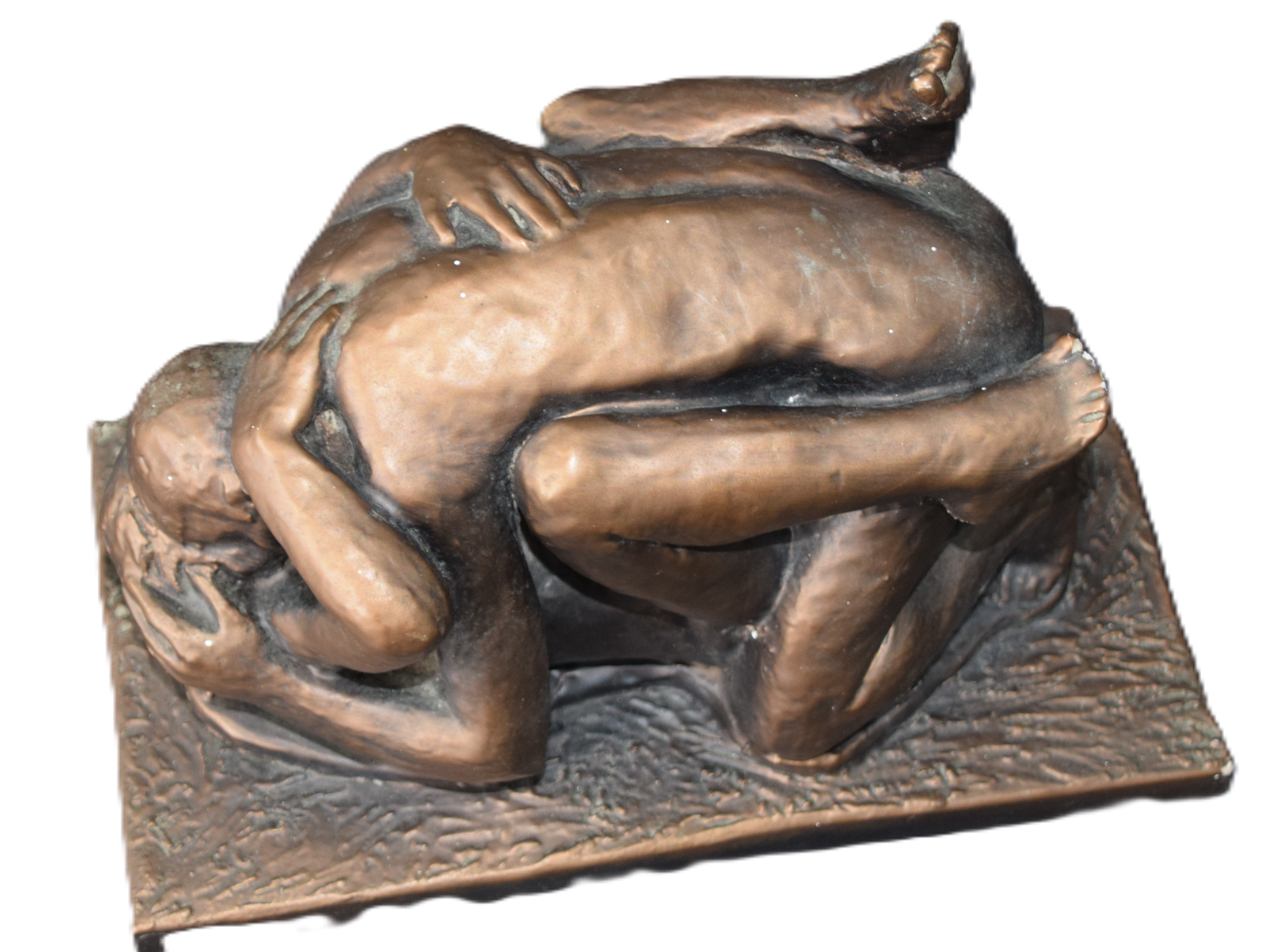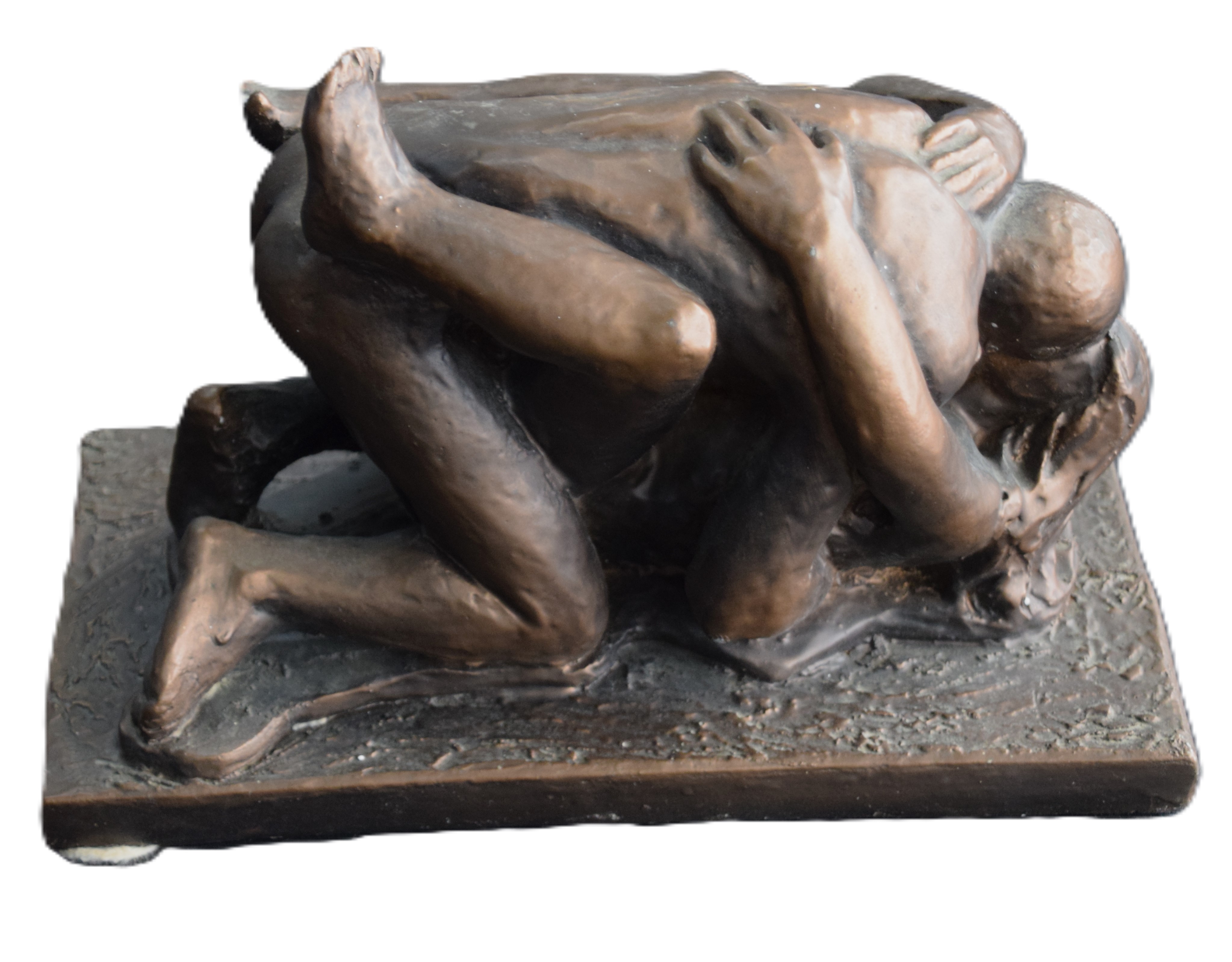 Art Nouveau erotic bronze coated sculpture of two lovers. Dimensions: 8″ H x 10″ L x 6″ D